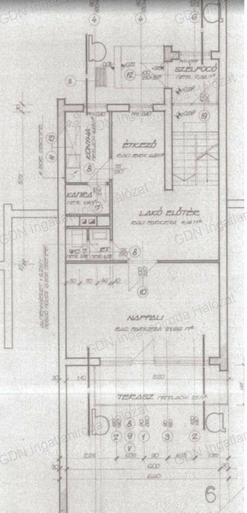 • Első emelet: amerikai nappali-konyha-étkező, WC, háztartási helyiség, utcafronti erkély