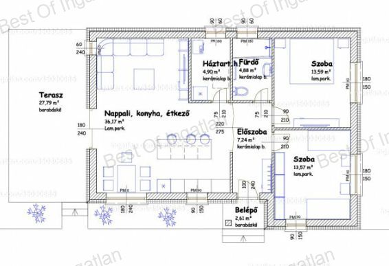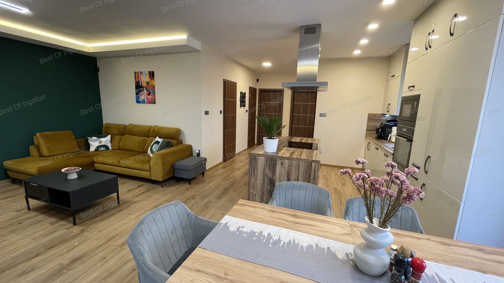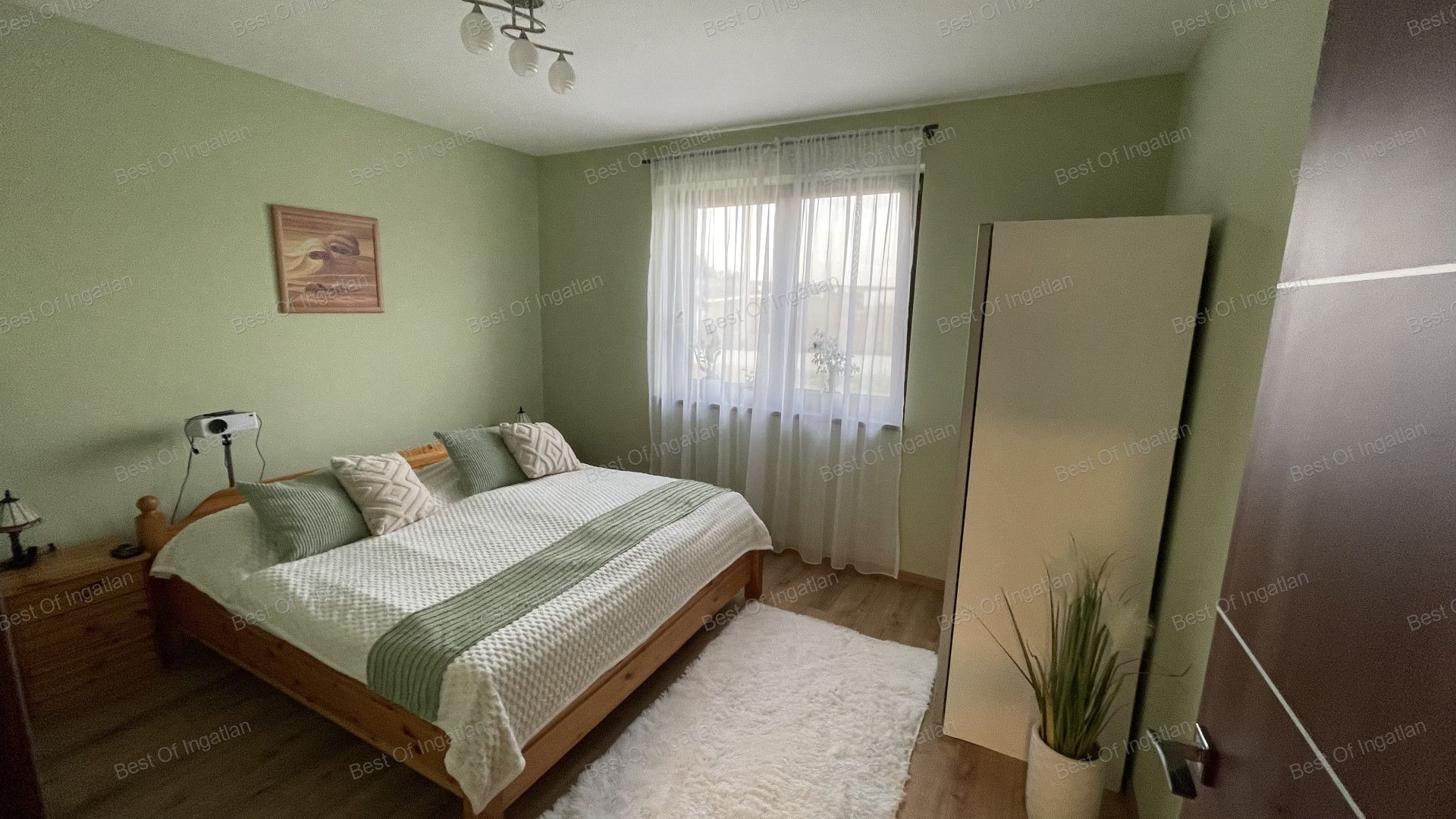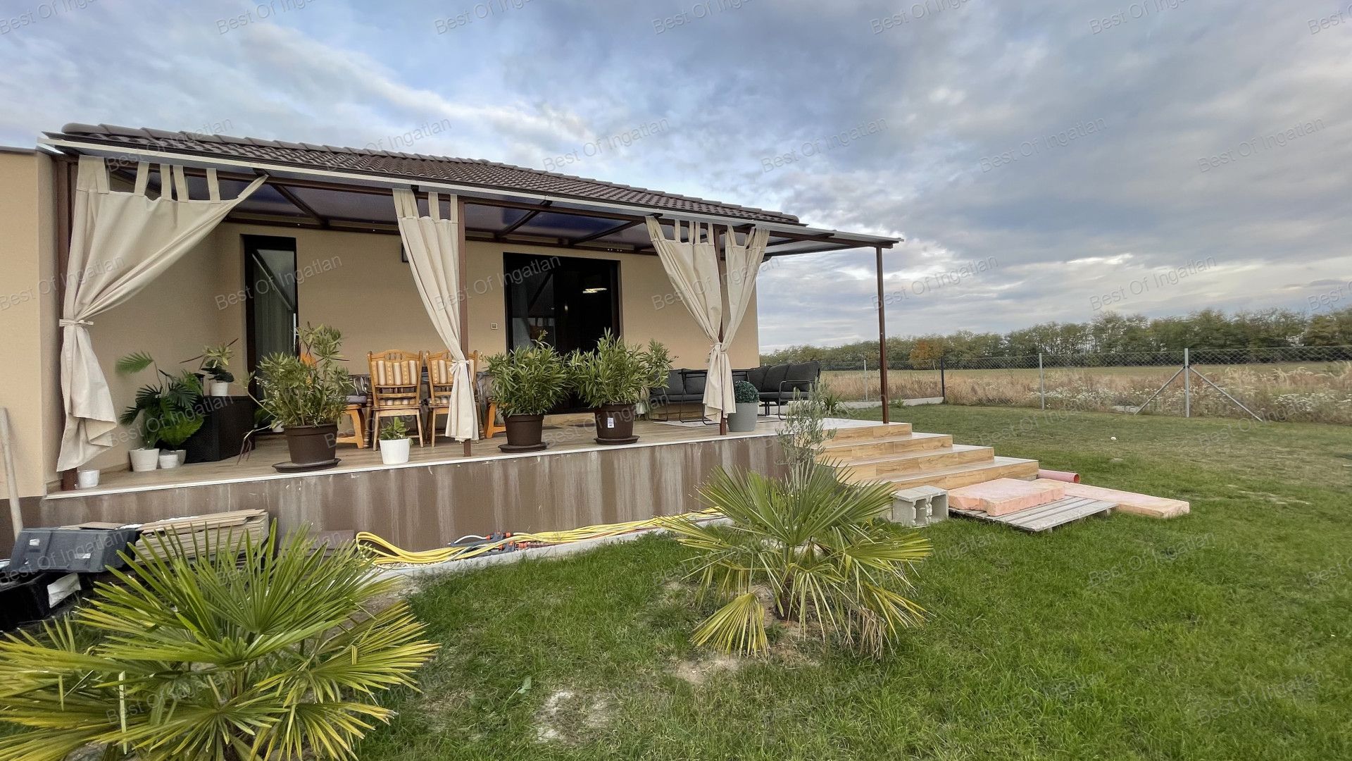A Best of Ingatlan Győr- Ingatlaniroda eladásra kínálja Győrtől pár percre fekvő Győrságon, 2024-ben épült, 80 m2-es, nappali + 2 szobás, 27 m2-es fedett teraszkapcsolatos, téglaépítésű, részben bútorozott családi házat, 713 m2-es, füvesített, körbekerített telken.