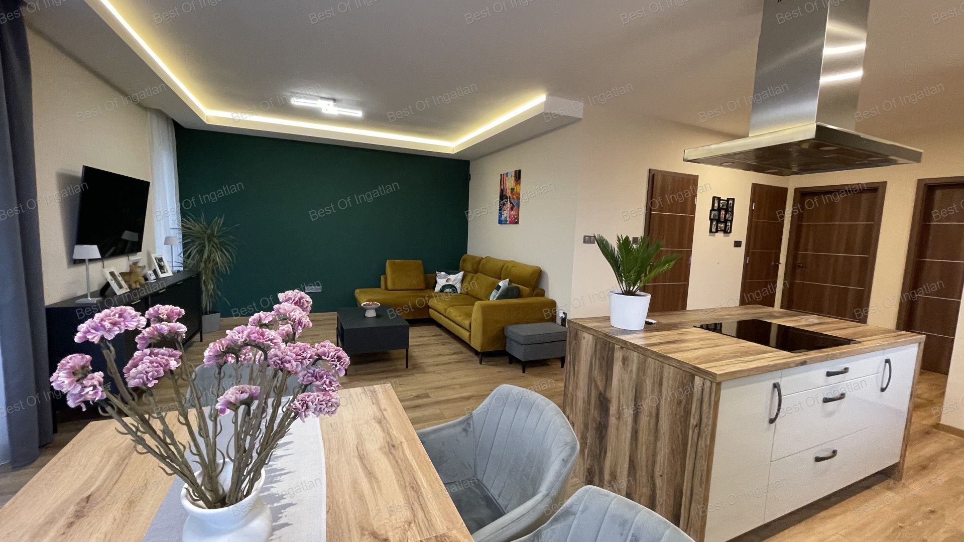 A gépesített, modern, minőségi konyha beépített gépei még garanciálisak.