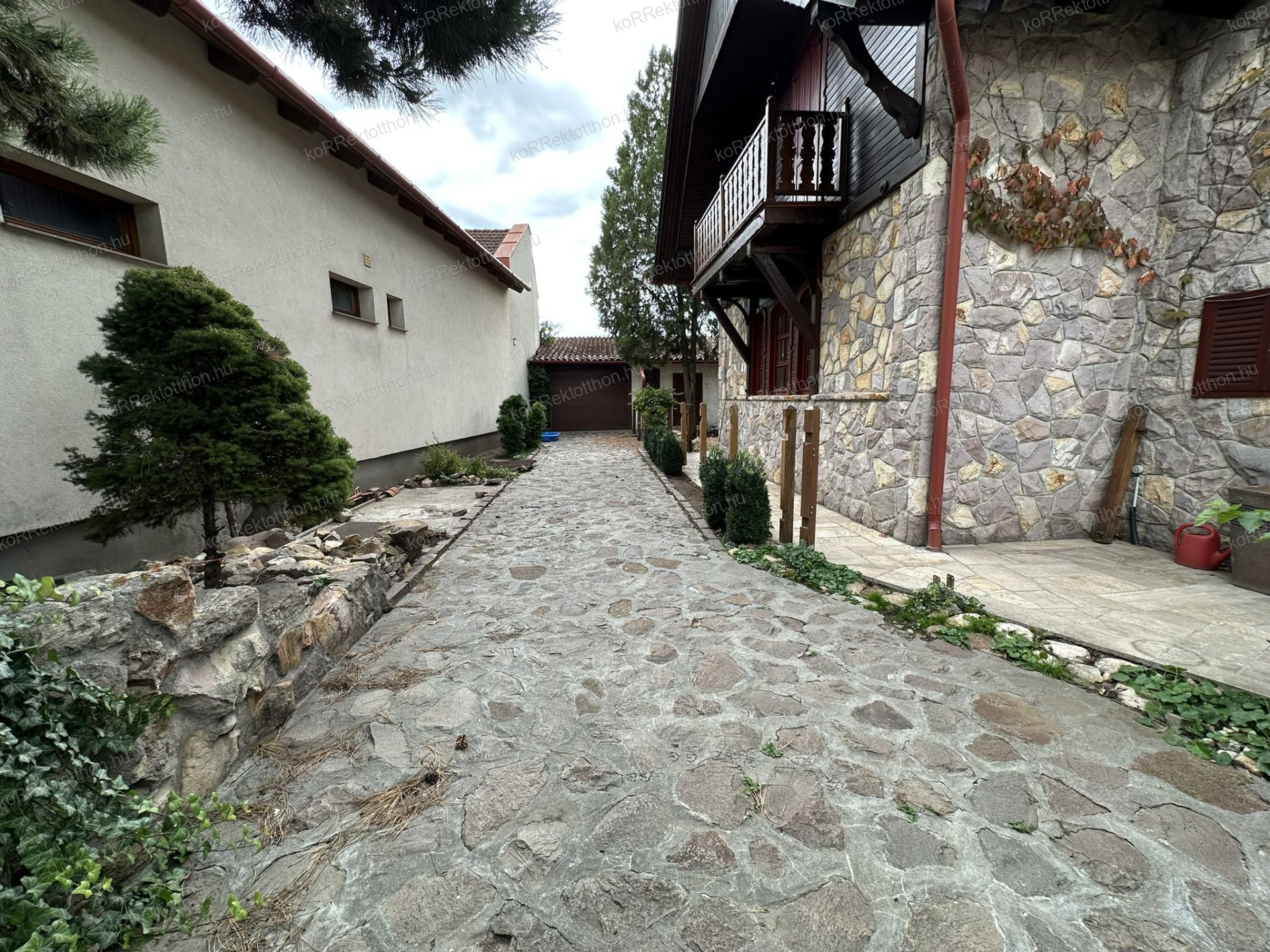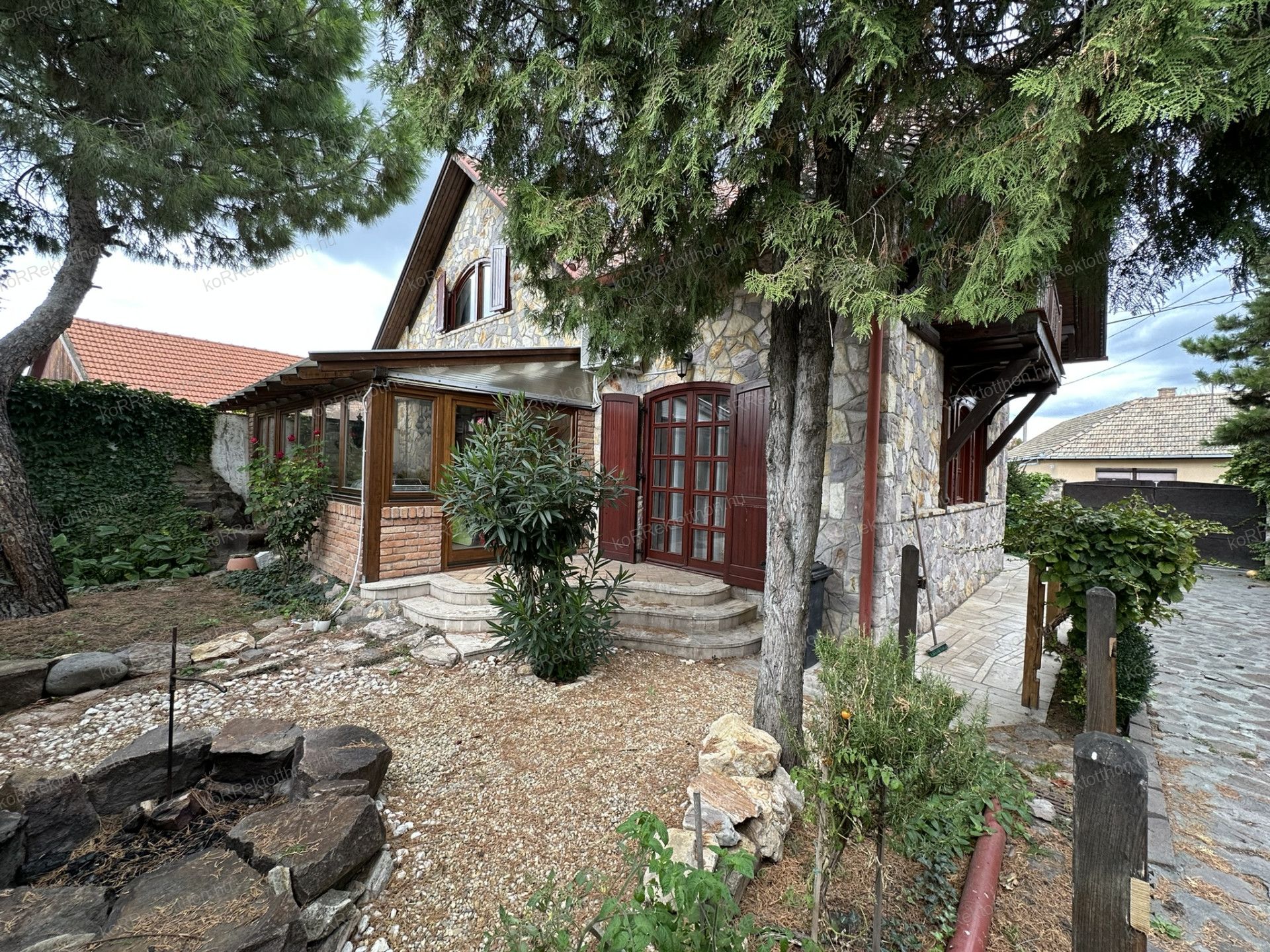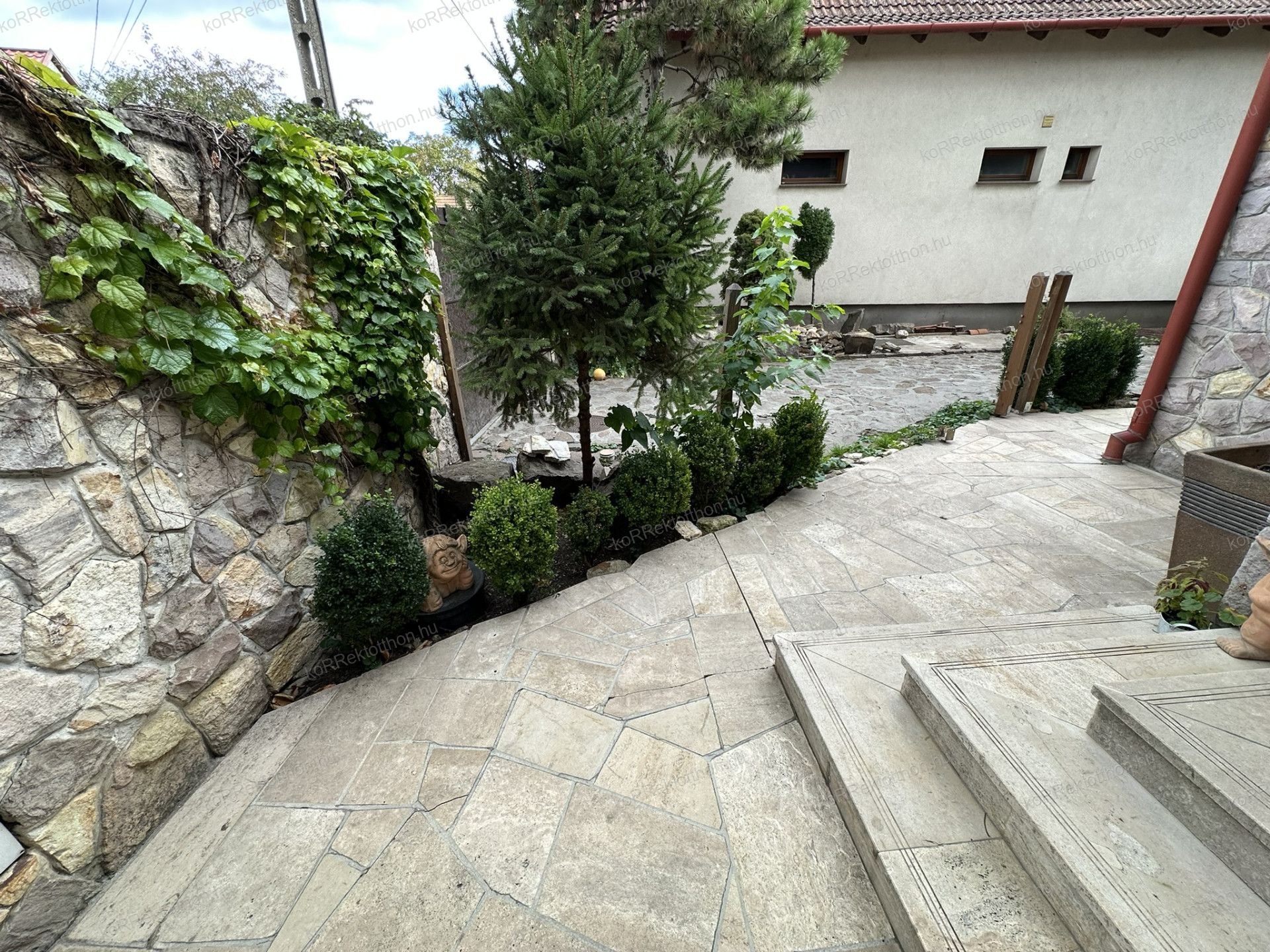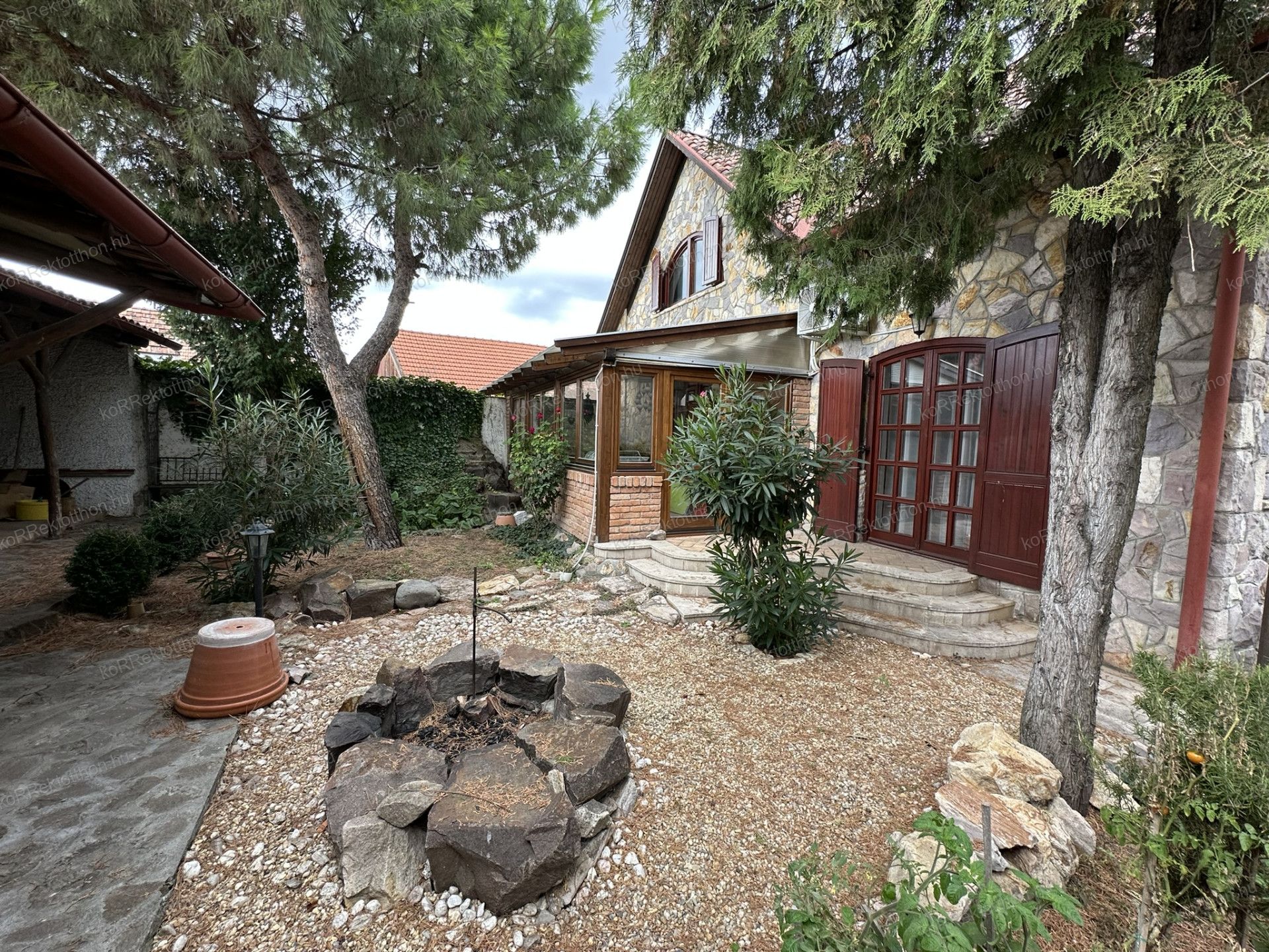 A 163 m²-es, kétszintes lakóházat 2000-ben építették, különleges gyöngyössolymosi terméskő borítással, prémium anyaghasználattal és időtálló szerkezeti megoldásokkal. Az alsószinten tágas nappali, dolgozószoba, konyha, fürdőszoba és egy hangulatos fatüzelésű kandalló kapott helyet, míg az emeleten három hálószoba, két fürdőszoba és erkély szolgálja a kényelmet. Az udvar felől egy télikert is kapcsolódik az épülethez, amely egész évben kellemes kikapcsolódást biztosít.