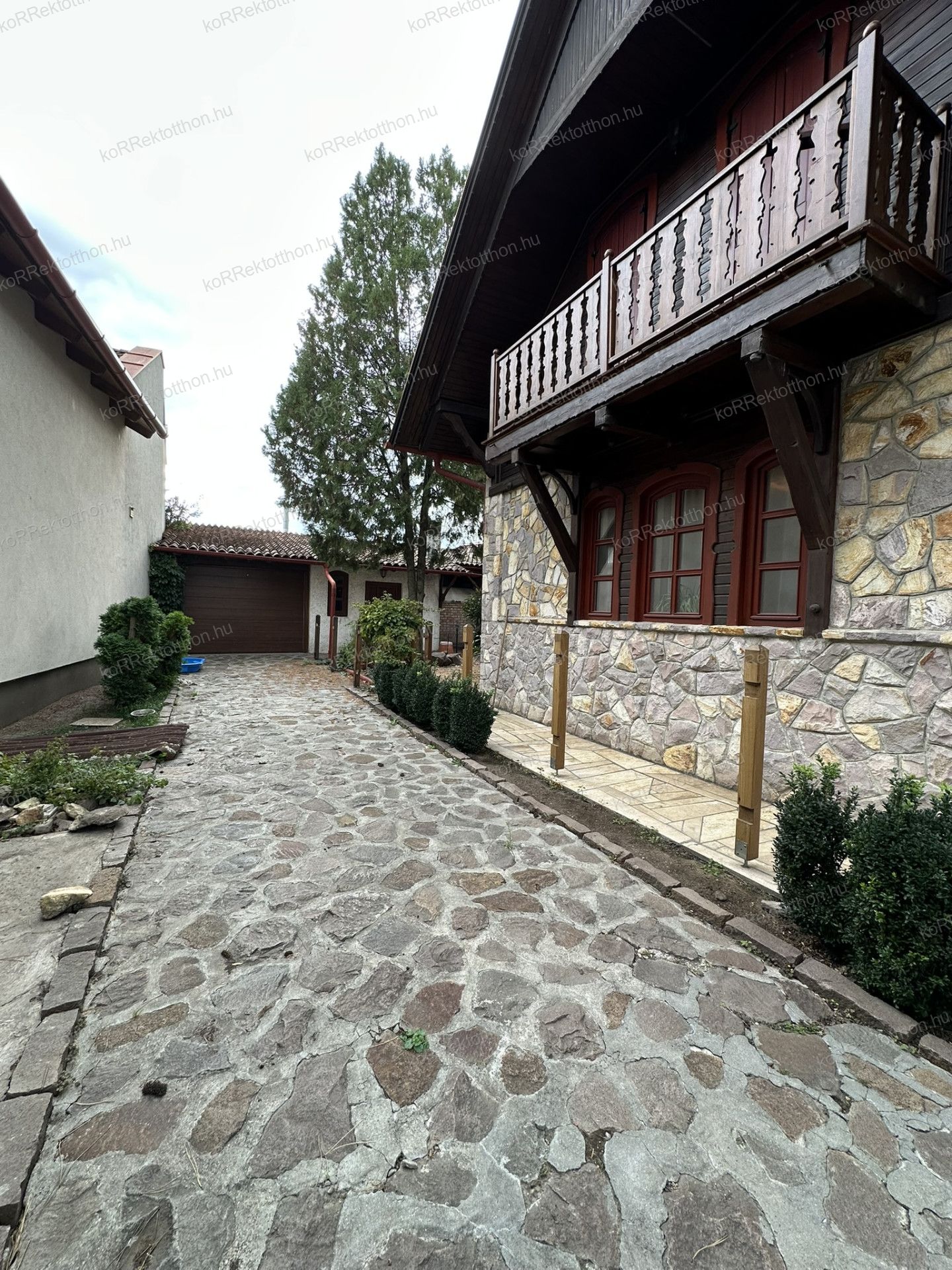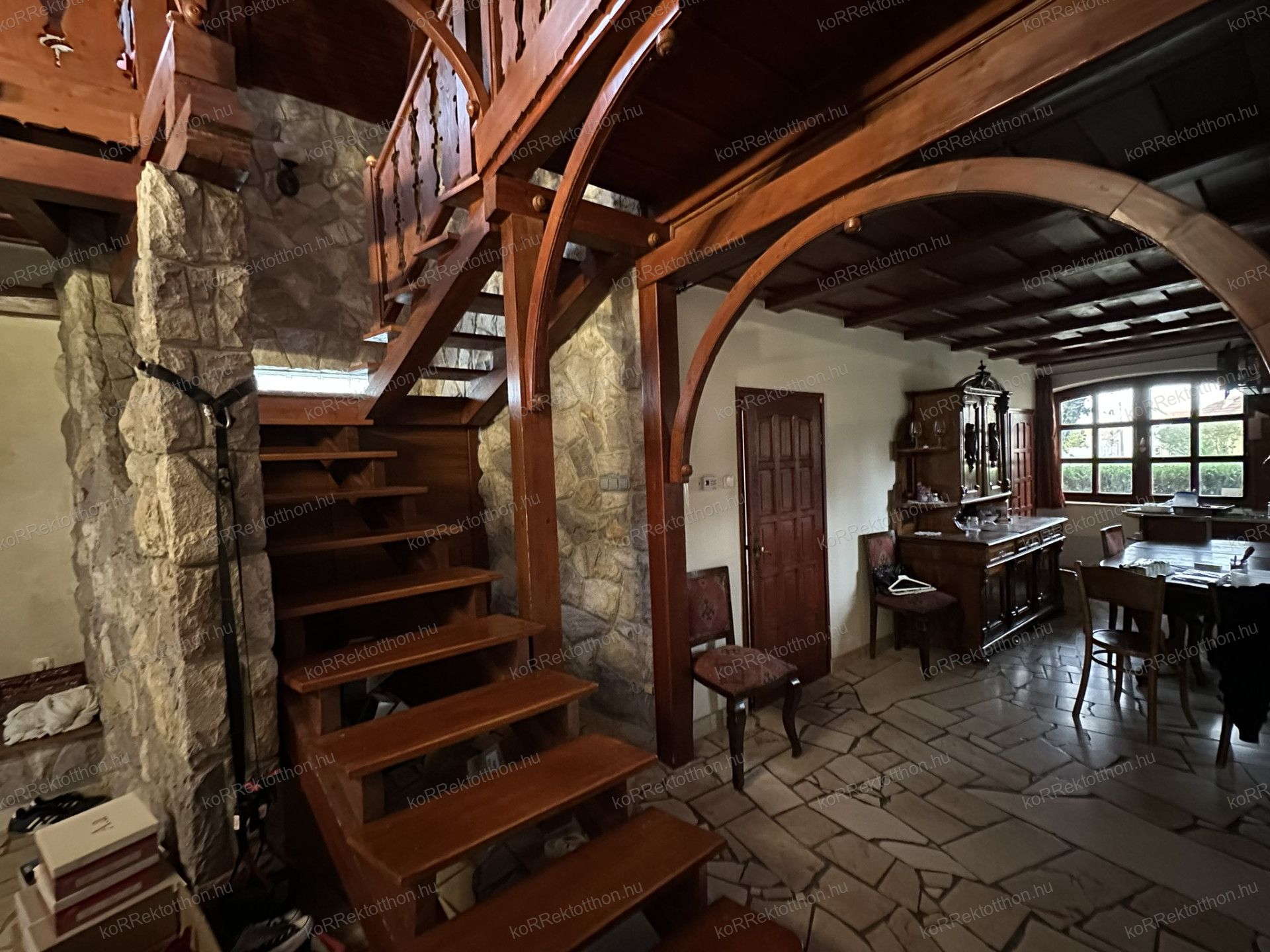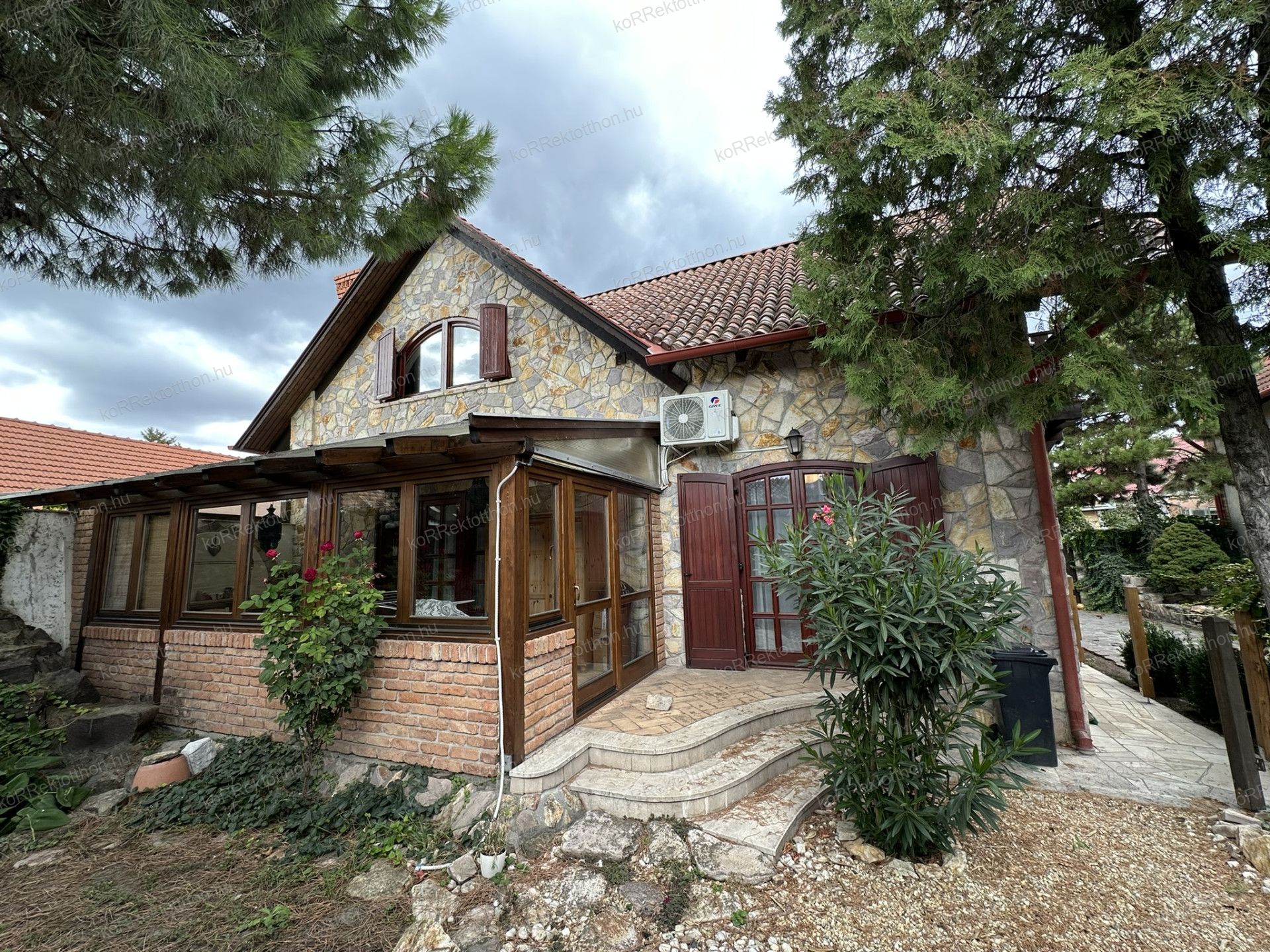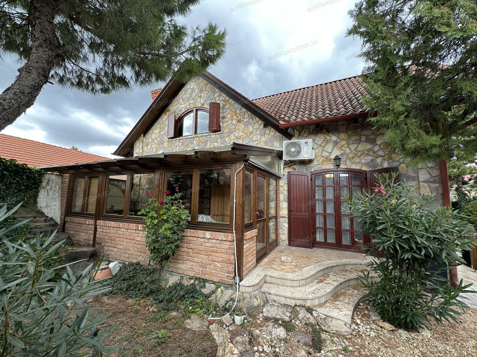 A 163 m²-es, kétszintes lakóházat 2000-ben építették, különleges gyöngyössolymosi terméskő borítással, prémium anyaghasználattal és időtálló szerkezeti megoldásokkal. Az alsószinten tágas nappali, dolgozószoba, konyha, fürdőszoba és egy hangulatos fatüzelésű kandalló kapott helyet, míg az emeleten három hálószoba, két fürdőszoba és erkély szolgálja a kényelmet. Az udvar felől egy télikert is kapcsolódik az épülethez, amely egész évben kellemes kikapcsolódást biztosít.