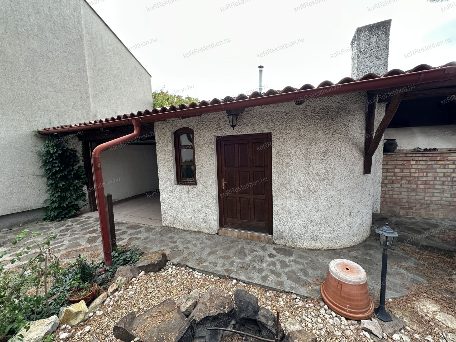 A melléképületben garázs, zárt és nyitott tároló, valamint egy hagyományos téglakemence található, amely tovább erősíti az ingatlan vidéki kúria jellegét.