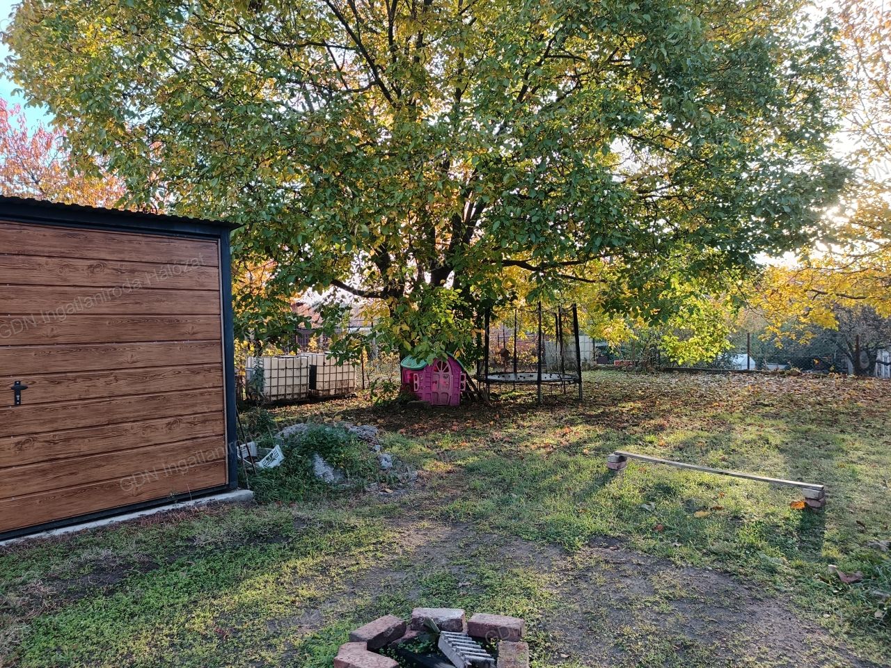 A kertben helyt kapott egy betonalappal rendelkező 3 állásos lemezgarázs is, ahonnan a pince megközelíthető 810 nm nagyságú).
