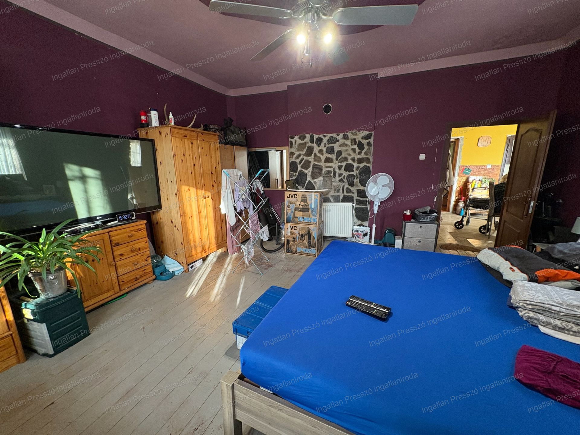 - fűtése központi fatüzelésű kazánról megoldott