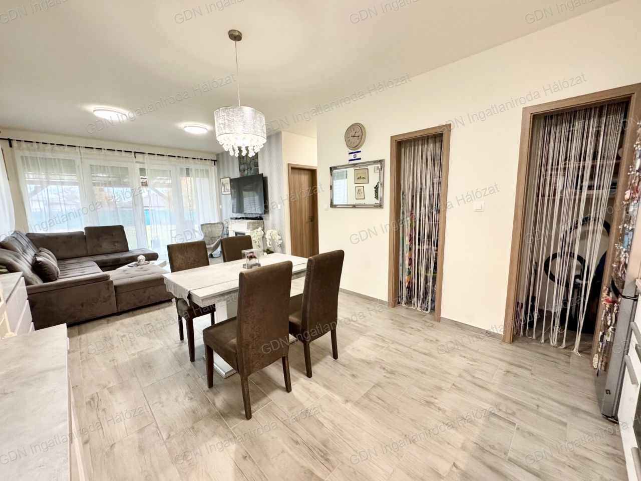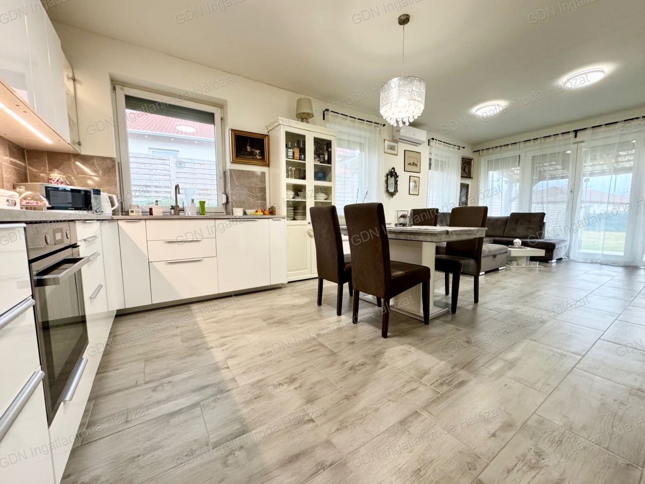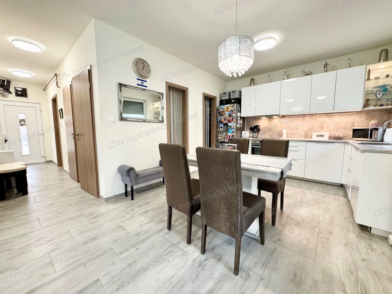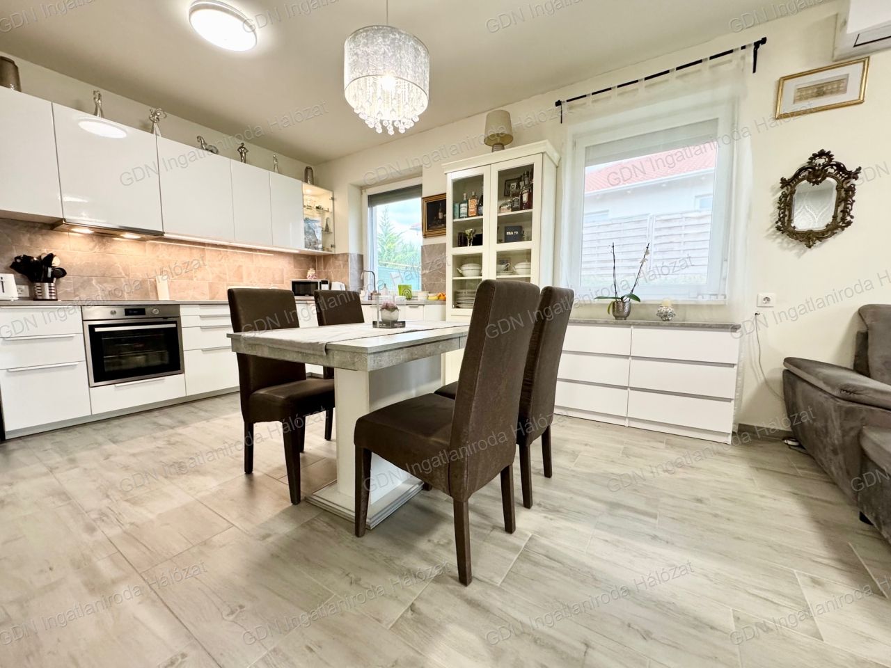Budapest és Esztergom között a pilisi hegyek ölelésében található hangulatos településen, Pilisjászfalun újonnan, a Somlyó völgyi lakóparkban, csendes jelenleg még murvával borított összközműves mellékutcában, 800 nm-es saját kerttel rendelkező, 2020-ban épült, szigetelt, egyszintes, 71 nm-es lakóterületű, nappali + 3 háló szobás,  amerikai konyhás, kamrás, közvetlen kert-teraszkapcsolatos, kiváló elosztású, külön nyíló szobás, napos-világos D-NY-i fekvésű, alacsony fenntartású, modern, kondenzációs gázkazán fűtésű, újszerű állapotú, klimatizált, riasztórendszerrel felszerelt ikerház fél, beépített, gépesített konyhával, 2 gépkocsi számára alkalmas felszíni gépkocsi beállóval, 8 nm-es kerti tárolóval, gondozott kerttel, eladó.
