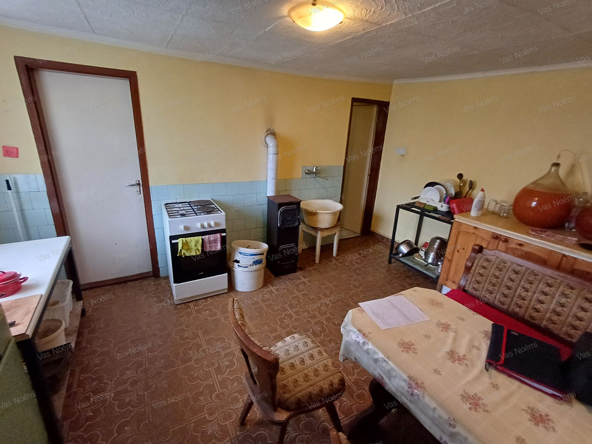 A ház tartalmaz egy konyhát, kényelmes fürdőszobát, három hangulatos szobát, praktikus kamrát és egy barátságos előszobát, valamint egy szélfogót is. Az ingatlanhoz tartozik egy kényelmes fedett terasz, garázs az autóknak, egy ásott kút a kert gondozásához, és még egy disznóól is a gazdálkodó kedvűeknek. Az épület masszív tégla alapon nyugszik, stukatúr födémmel és időtálló cseréptetővel. Az első házrészben pedig már elvégezték az elektromos vezetékek cseréjét, így Önnek nem kell ezen aggódnia.