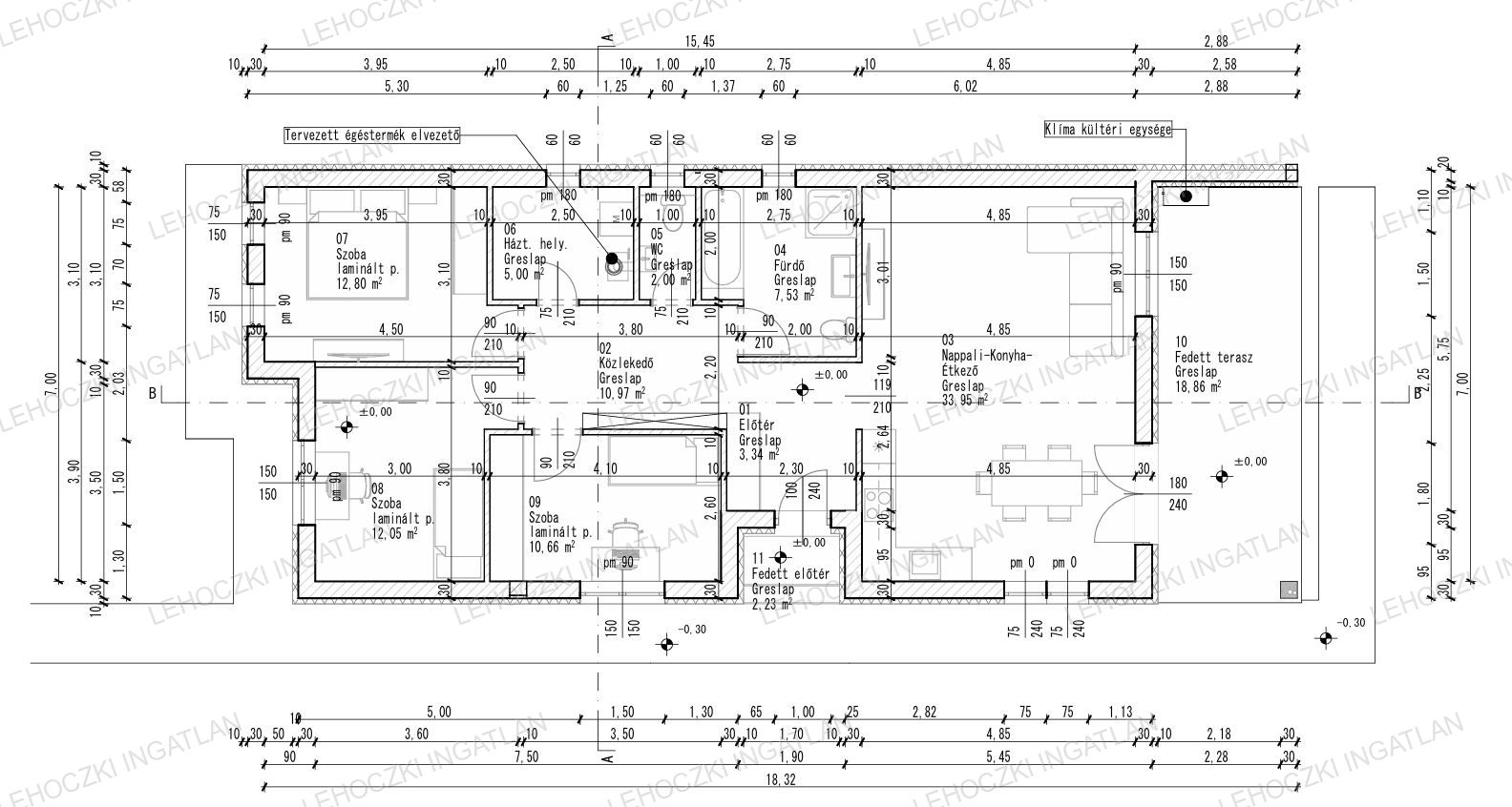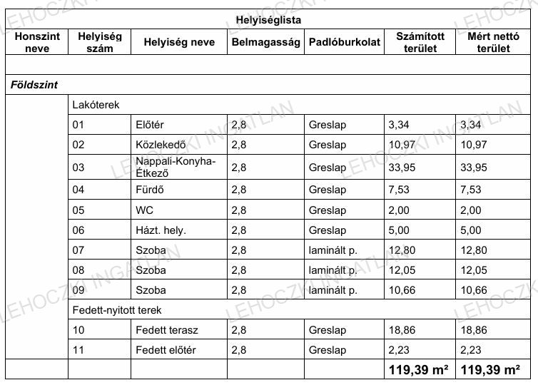 Lakótér 98,30 nm + 30 nm dupla garázs az udvaron + 18,86 nm fedett terasz