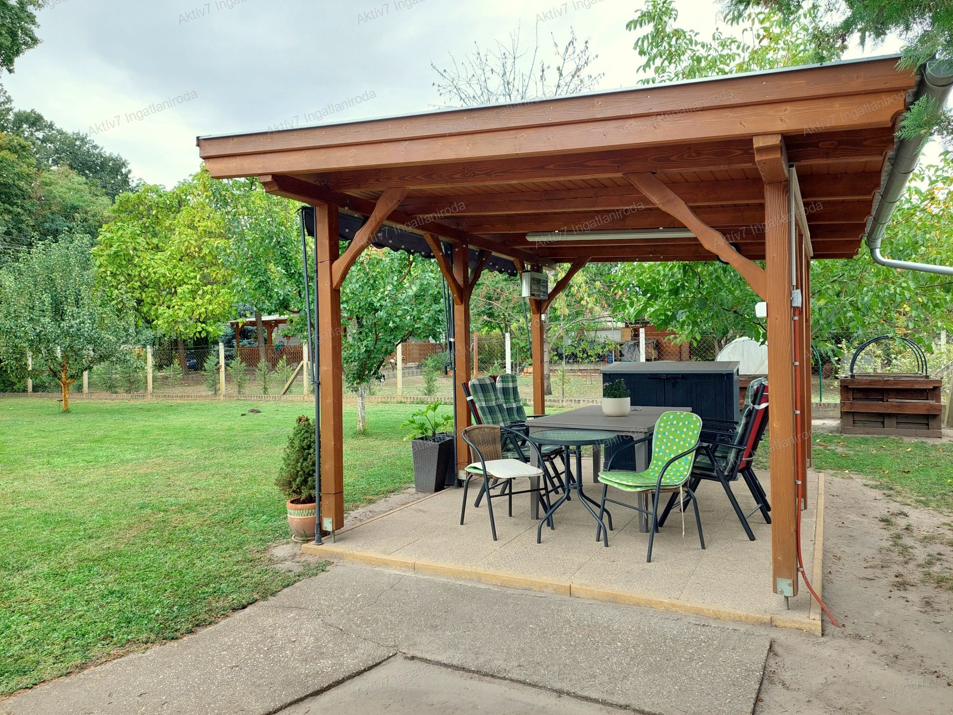 - 851 nm-es, parkosított telek – gyerekeknek és házi kedvenceknek is bőséges mozgástér, a fúrt kút pedig gazdaságos öntözést biztosít a kert ápolásához. A kerti kiülős kellemes helyszíne lehet baráti összejöveteleknek, családi grillezéseknek.