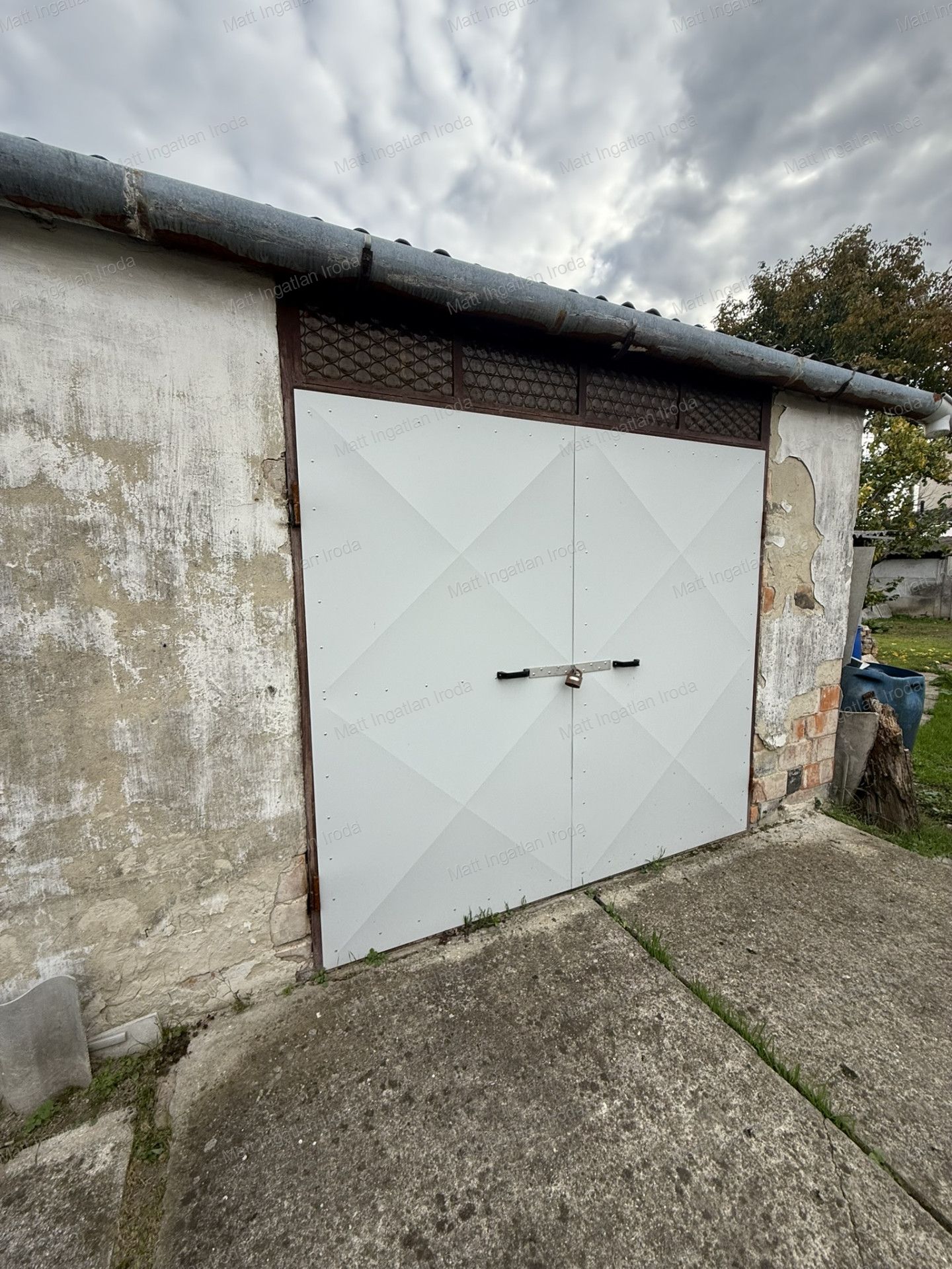 A lakáshoz tartozik egy kb. 500 m²-es saját kert, benne garázzsal és egy felújítandó nyárikonyhával / tárolóval.