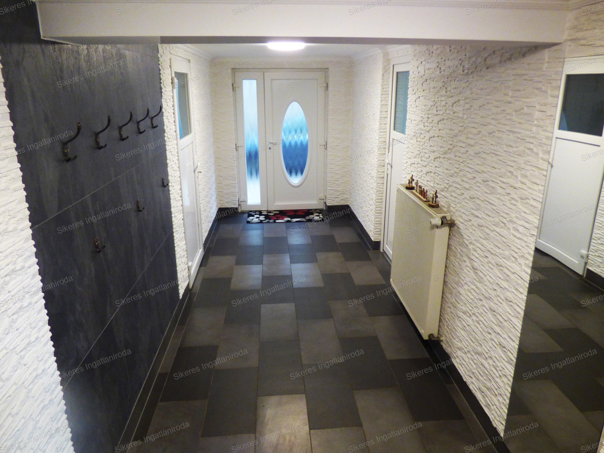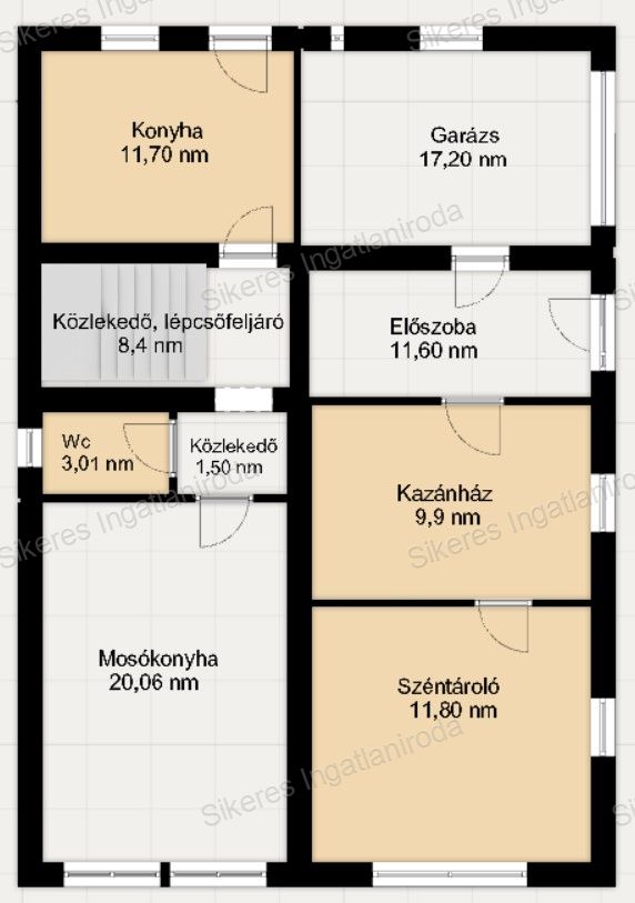A bejárati ajtón belépve a földszinten találunk egy tágas előszobát, innen nyílik a mosókonyha, egy mosdó helyiség, a kazánház, ahol gázkazán és vegyes tüzelésű kazán biztosítja a téli hónapokban a meleget.