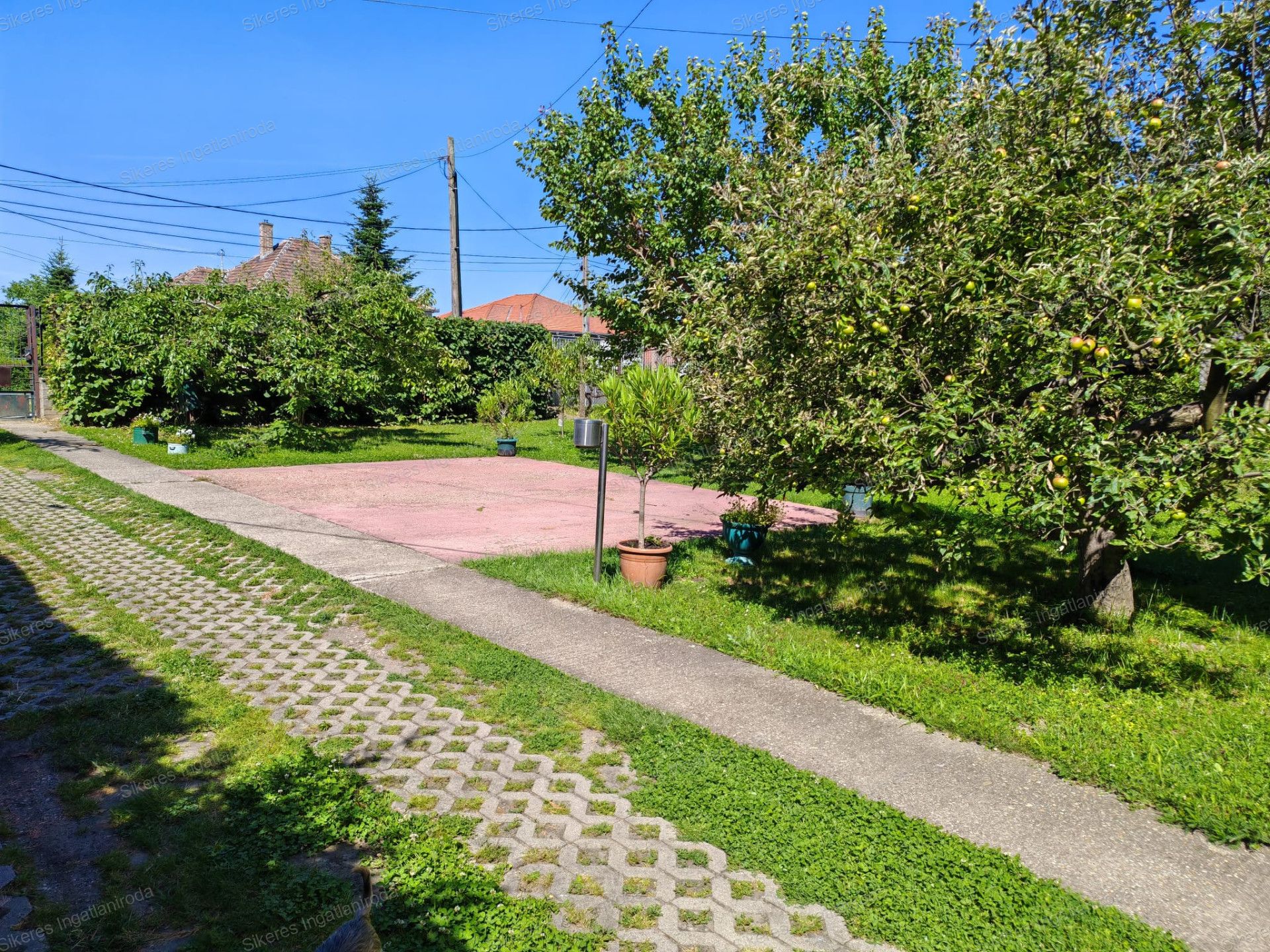 A kertből szép kilátás nyílik a hegyoldalra. Az udvar részben füves, részben térkő borítja. Fenyőfa, gyümölcsfa egyaránt megtalálható.