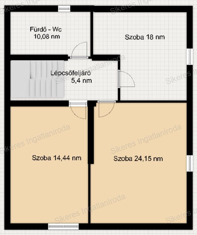 A lépcsőházon keresztül jutunk fel a 3. szintre, a tetőtérbe. Itt 3 külön nyíló szoba található, valamint egy fürdőszoba.