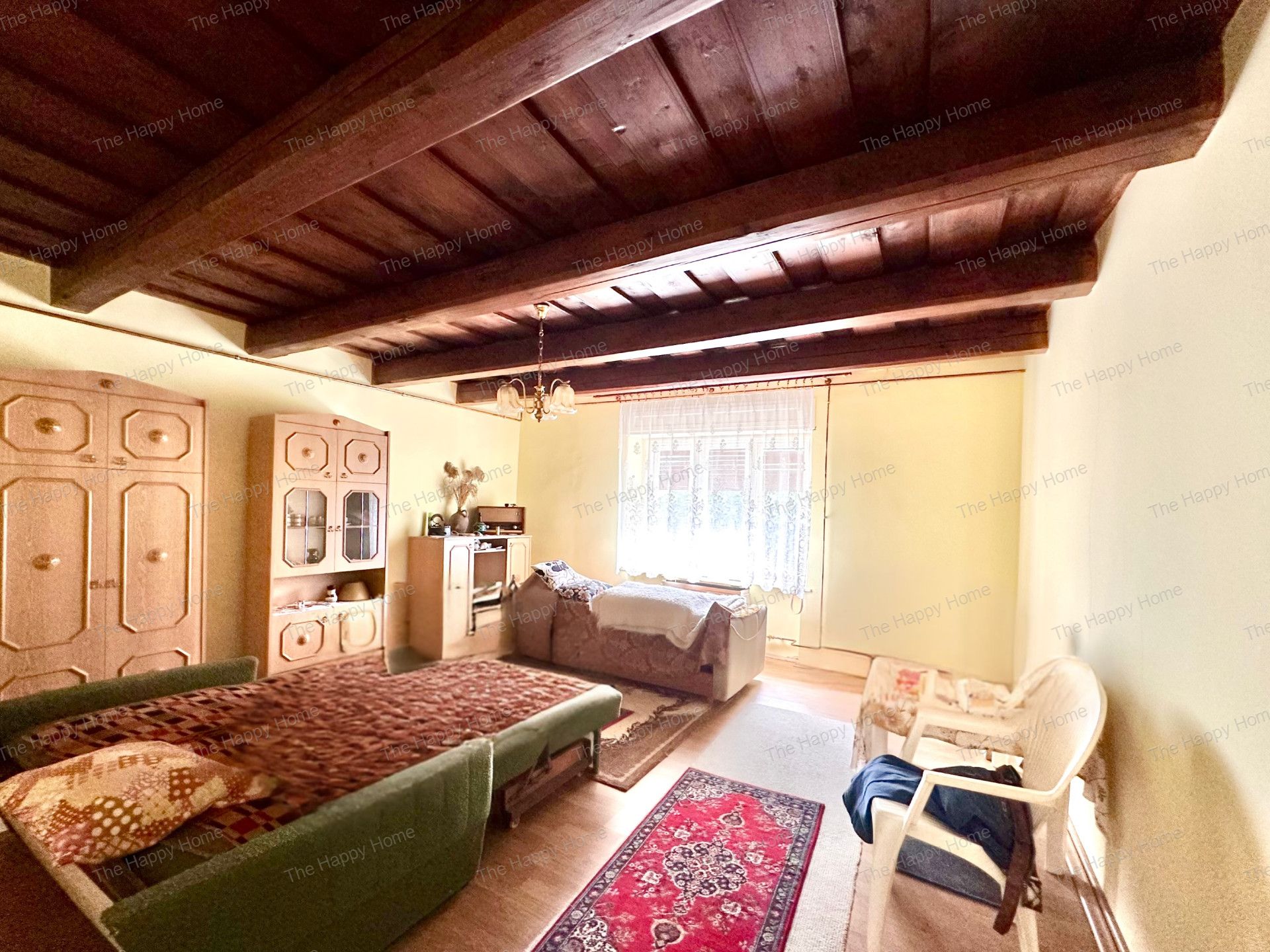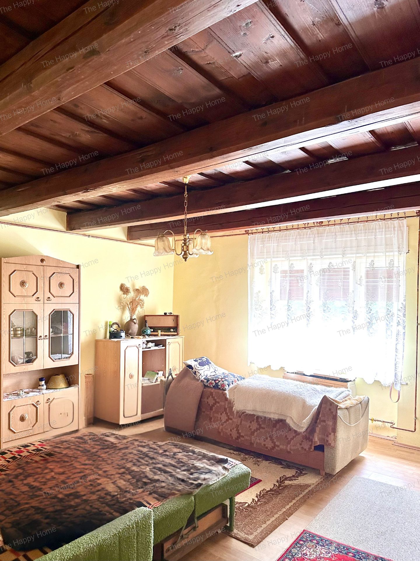 - Új tetőszerkezet, a nappaliban megőrzött gyönyörű fagerendás mennyezettel