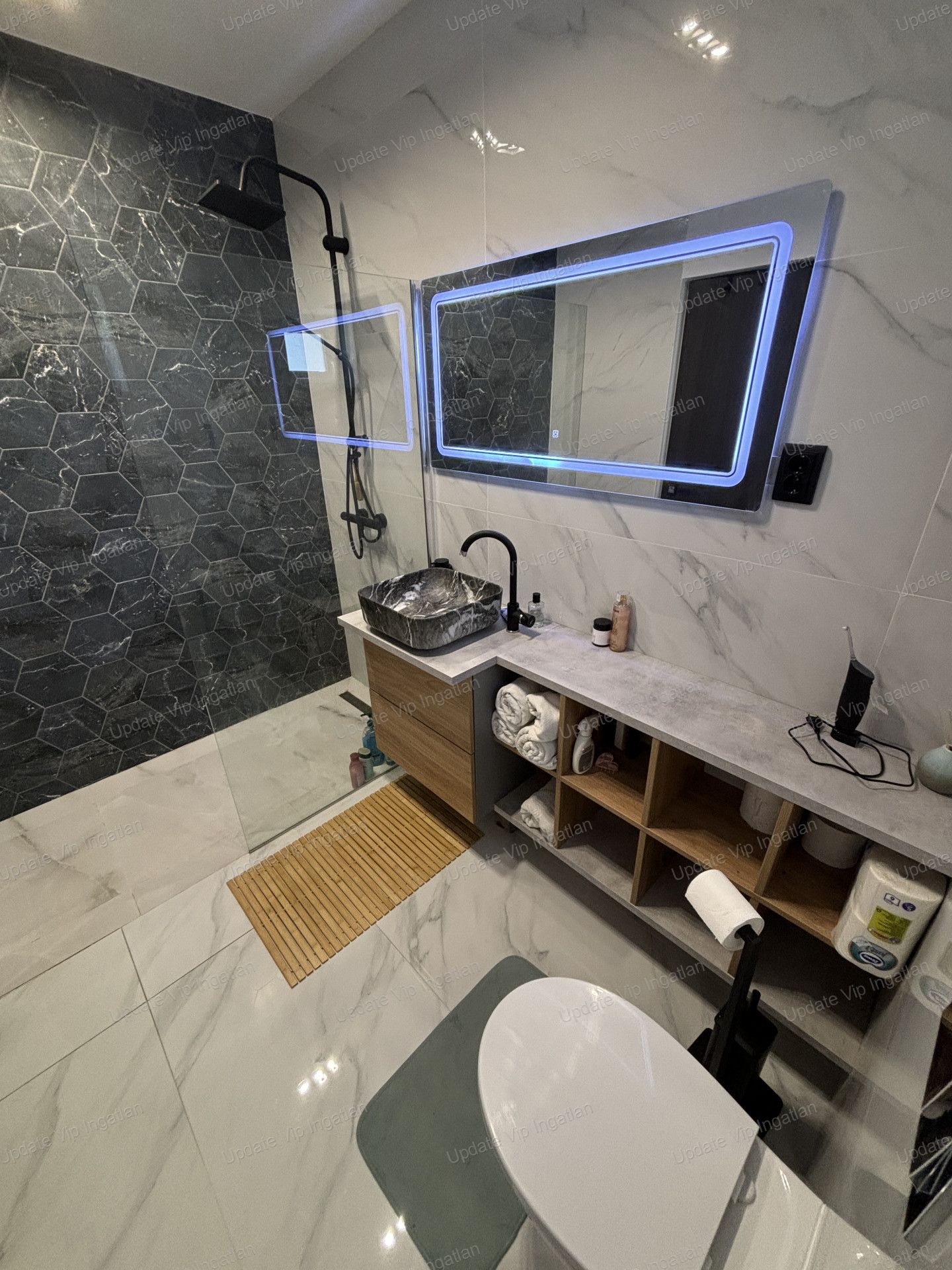 a másik nagy méretű (90x180 cm) „walk-in” zuhanyzós kialakítású.