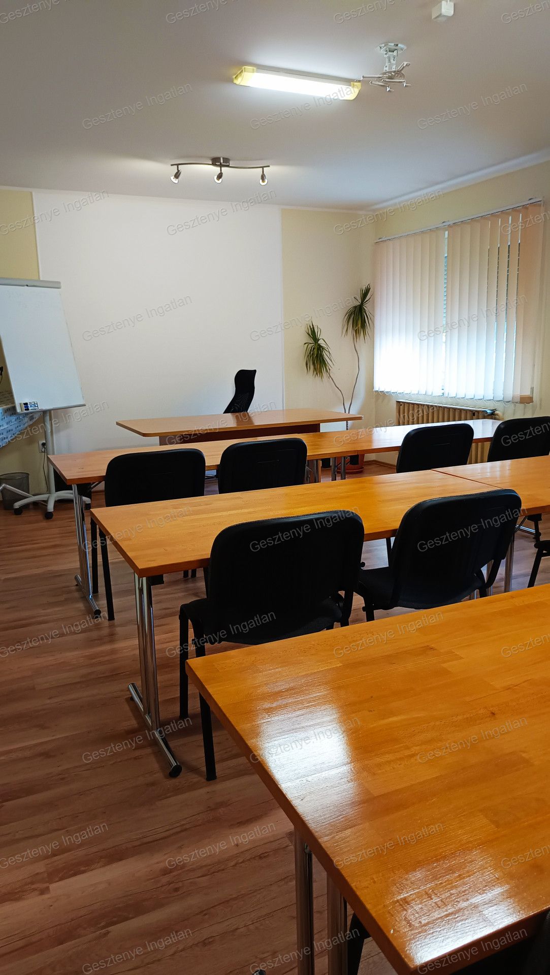 Helyiségei: ügyfélfogadó, konyha, 1 iroda, 1 oktatóterem, 1 nagy tanterem, tágas folyosó, közös előtérrel dupla WC. A szuterénben egy cukrászműhelyként használt rész már felújított.