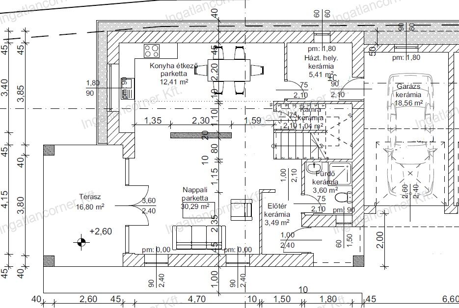 Alapterület össz.: 120,39m2 (mely áll 101m2 lakótérből + 18,56m2 garázsból)