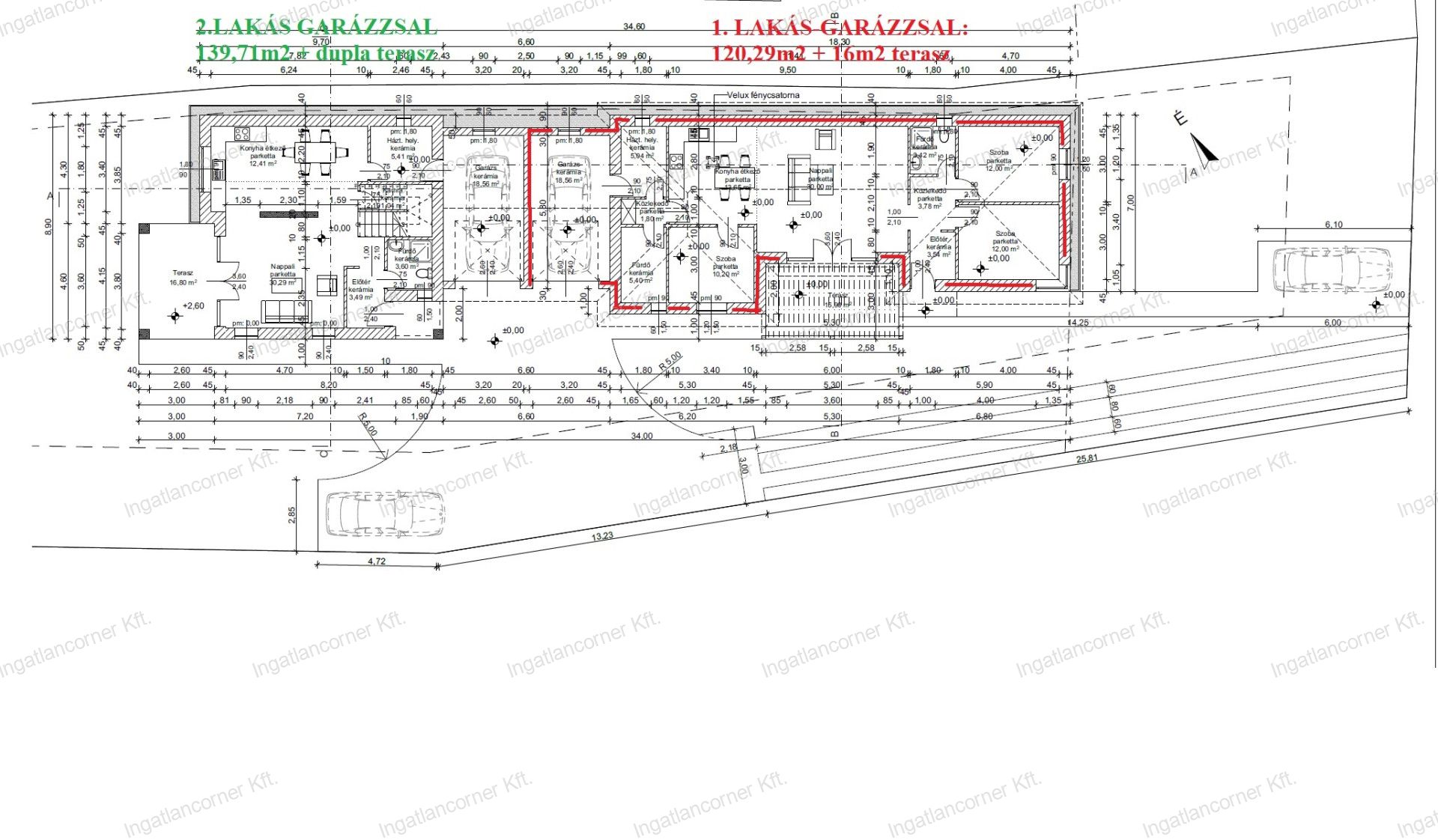 Alapterület össz.: 140m2 (mely áll 122m2 lakótérből + 18,56m2 garázsból)