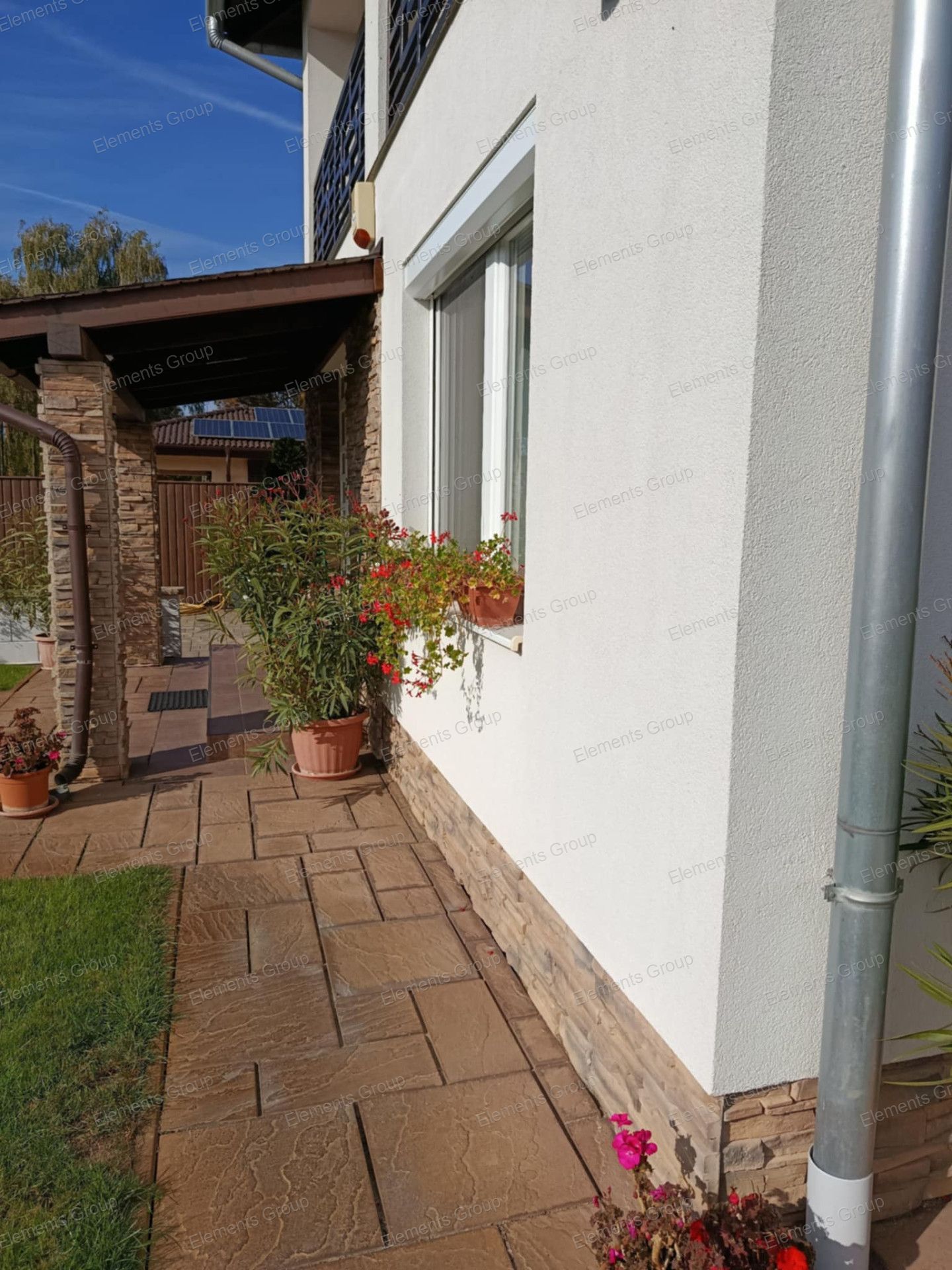 - kőkerítés, elektromos kapu, videós kaputelefon, riasztórendszer
