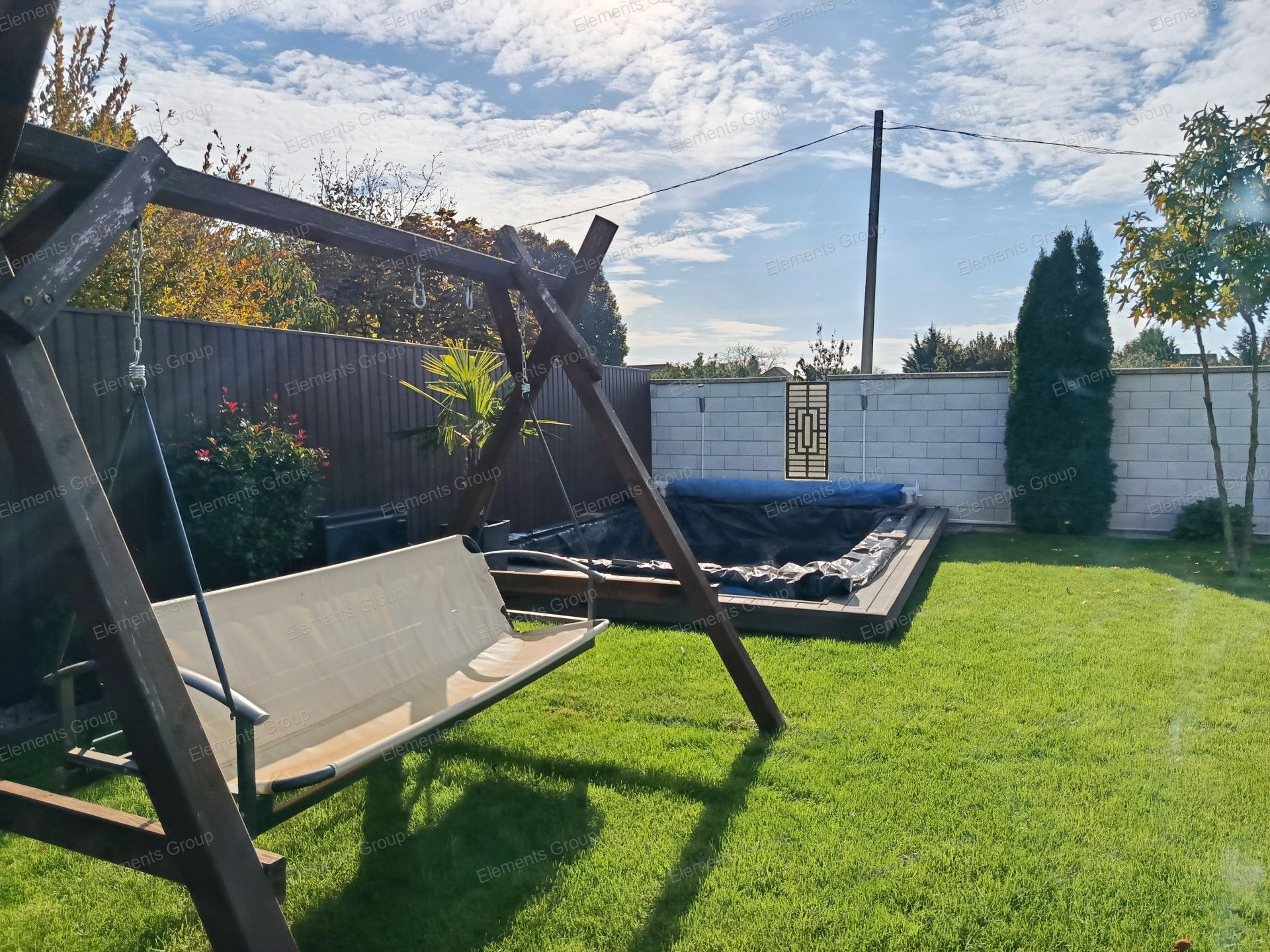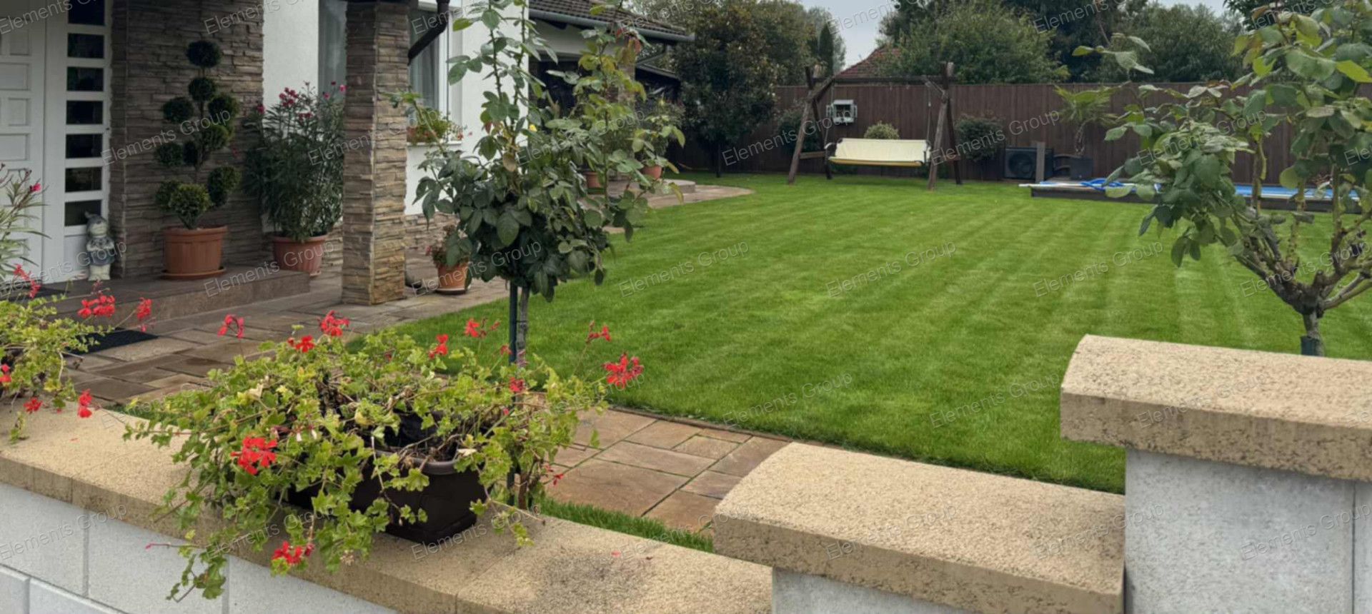 - parkosított udvar, fúrott kút, öntözőrendszer