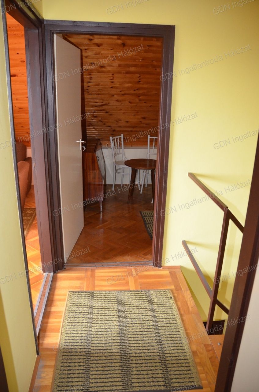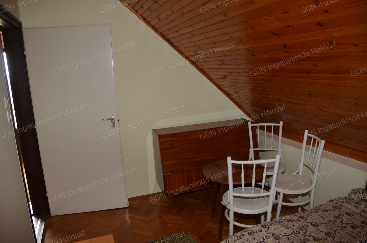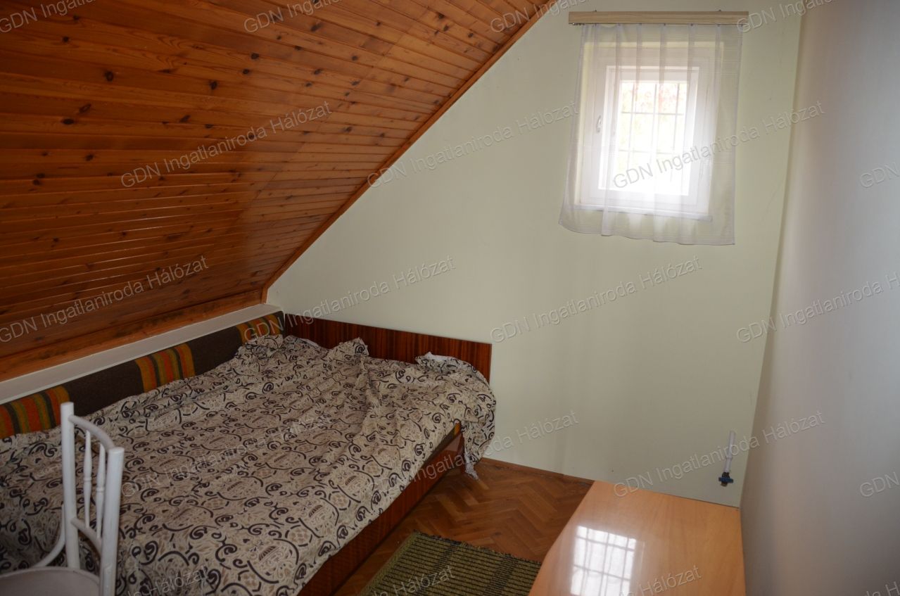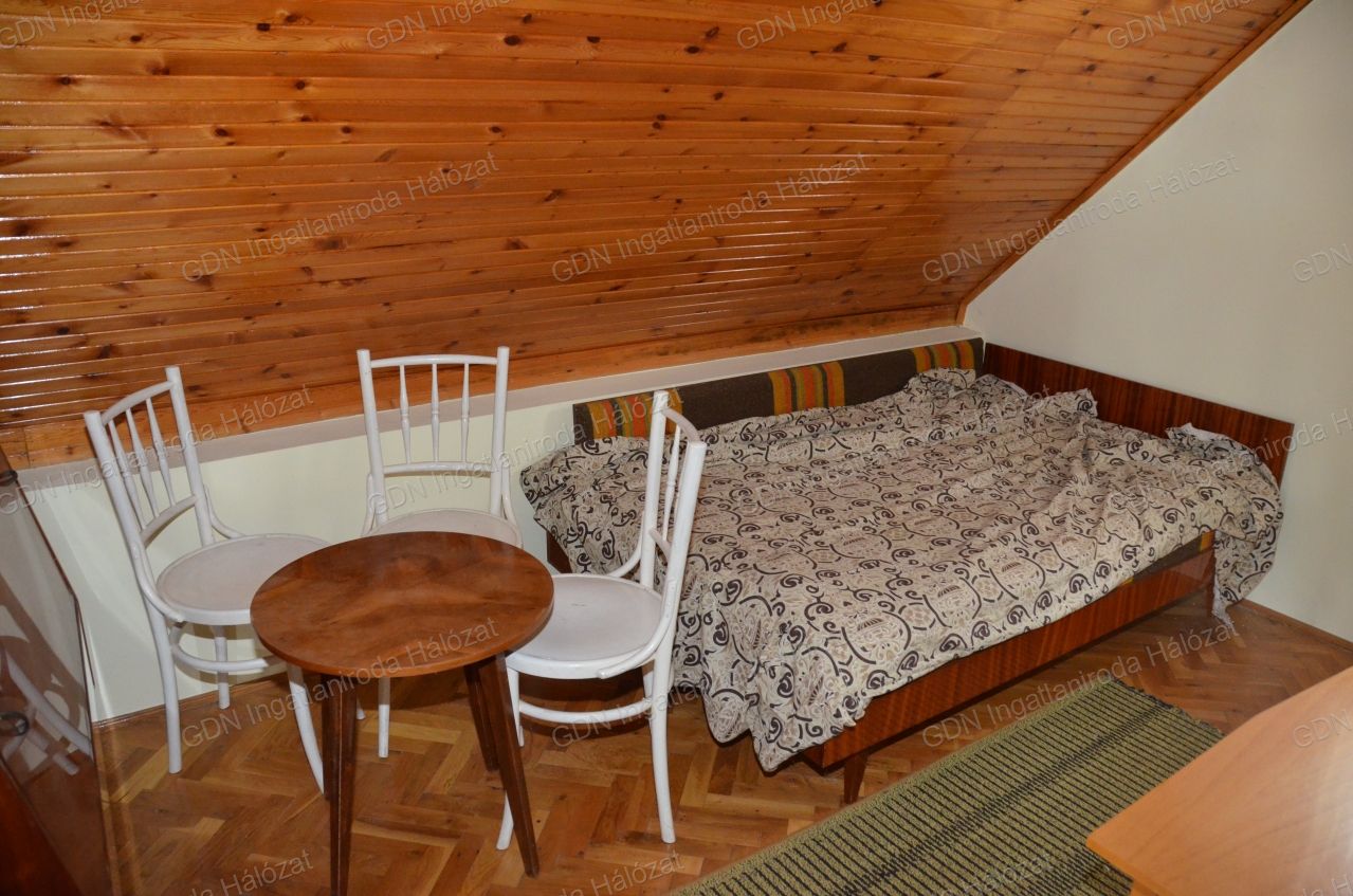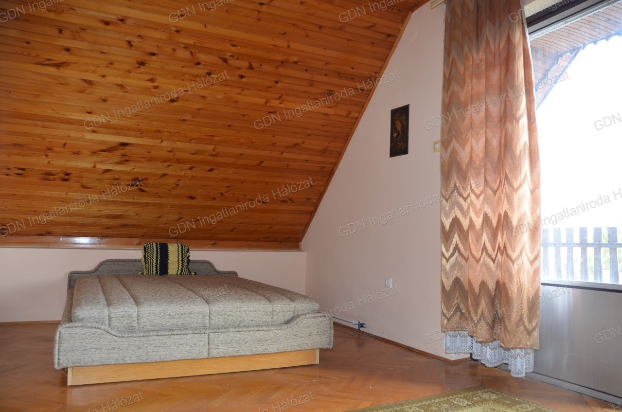 Emelet: 1 nagy és 2 kisebb szoba lambériázott mennyezettel, az egyik szobából fürdő kialakítható.