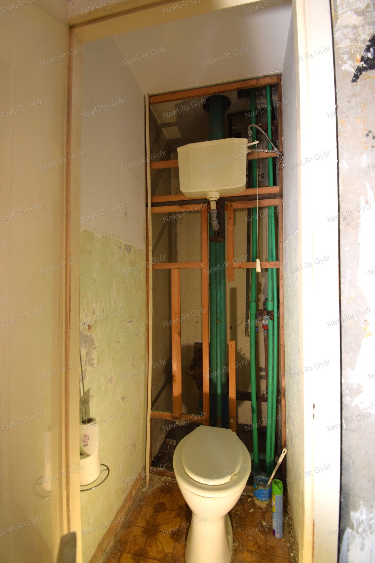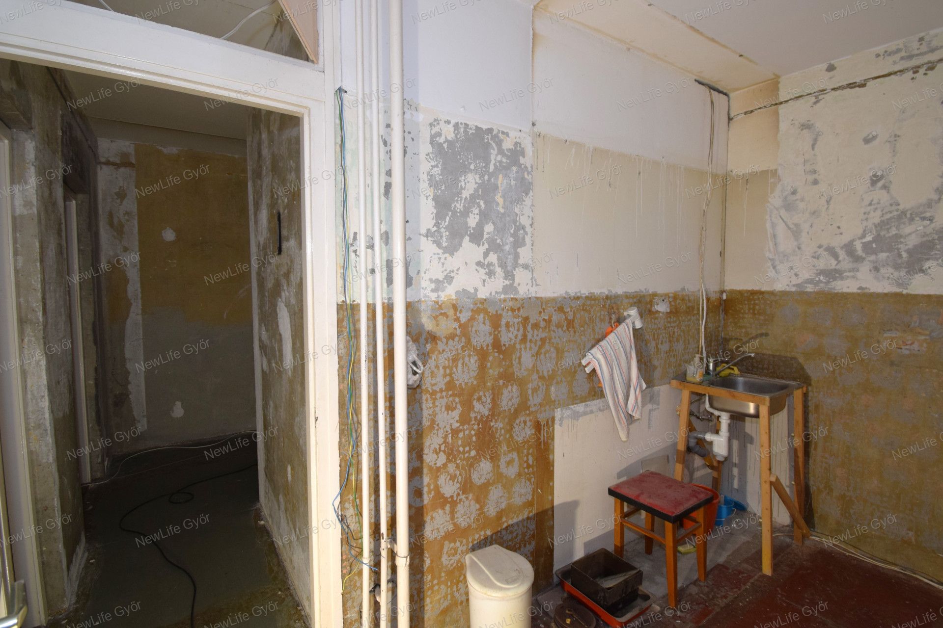 A belső felújítási munkálatok elkezdődtek, a régi tapétát eltávolították, a burkolatok a függőleges felületekről illetve a konyhabútor is elszállításra került. A fürdőszobai kádat is kimozdították, a mosdókagyló már nincs bent.