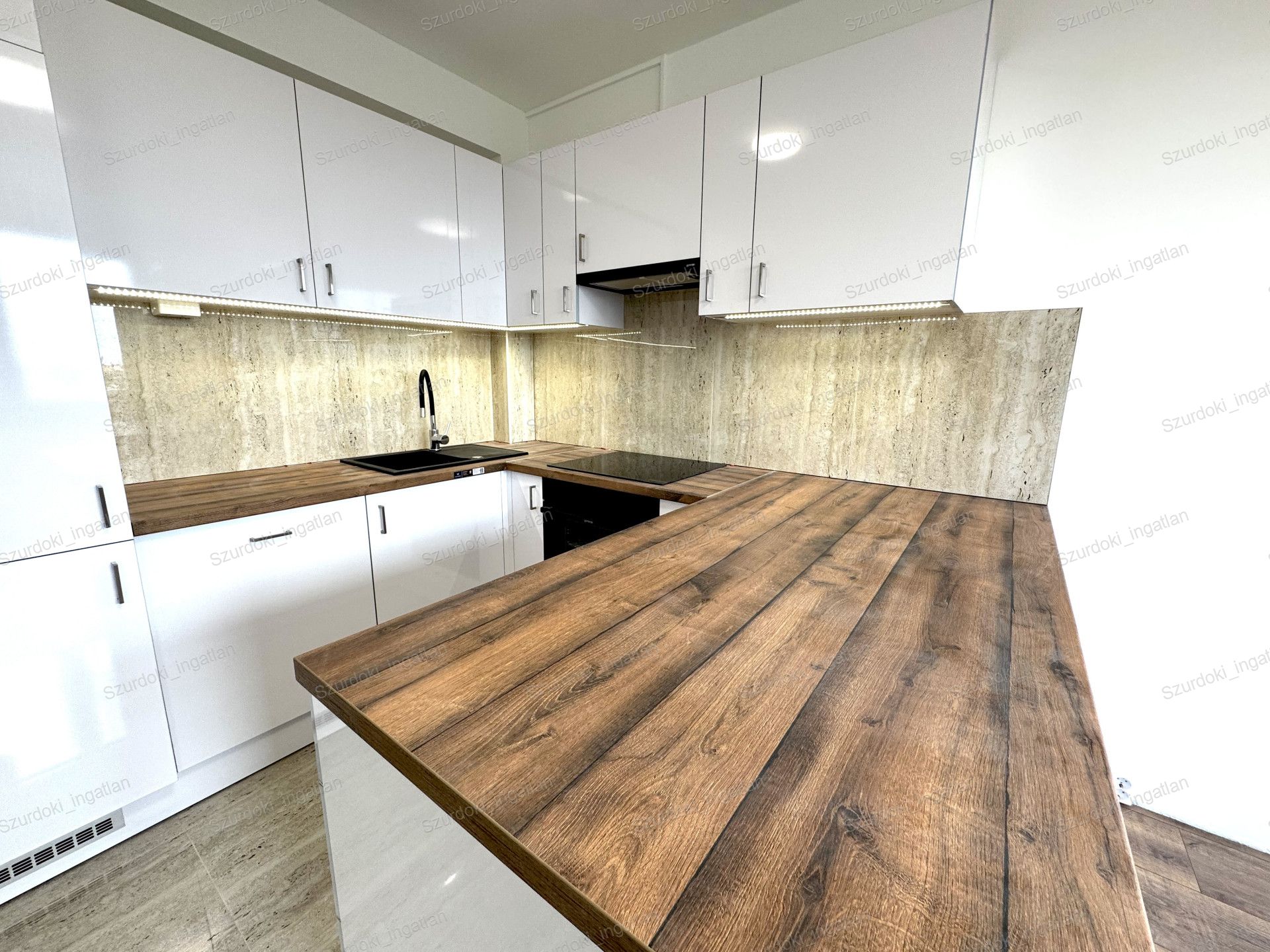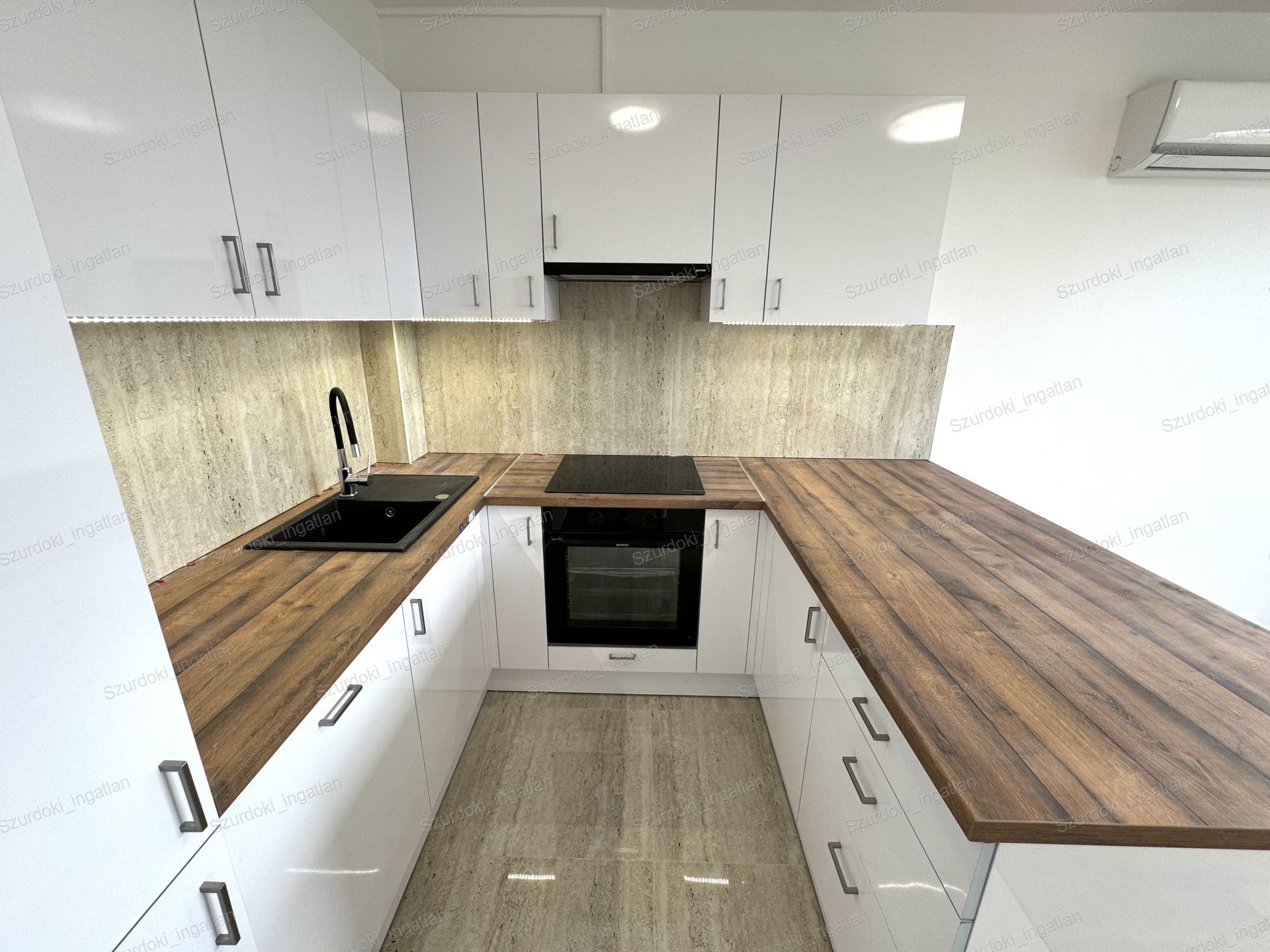 -Egyedi tervezésű, magasfényű, gépesített konyhabútort (elektromos főzőlap, beépített sütő, mosogatógép, beépített hűtő, elszívó),