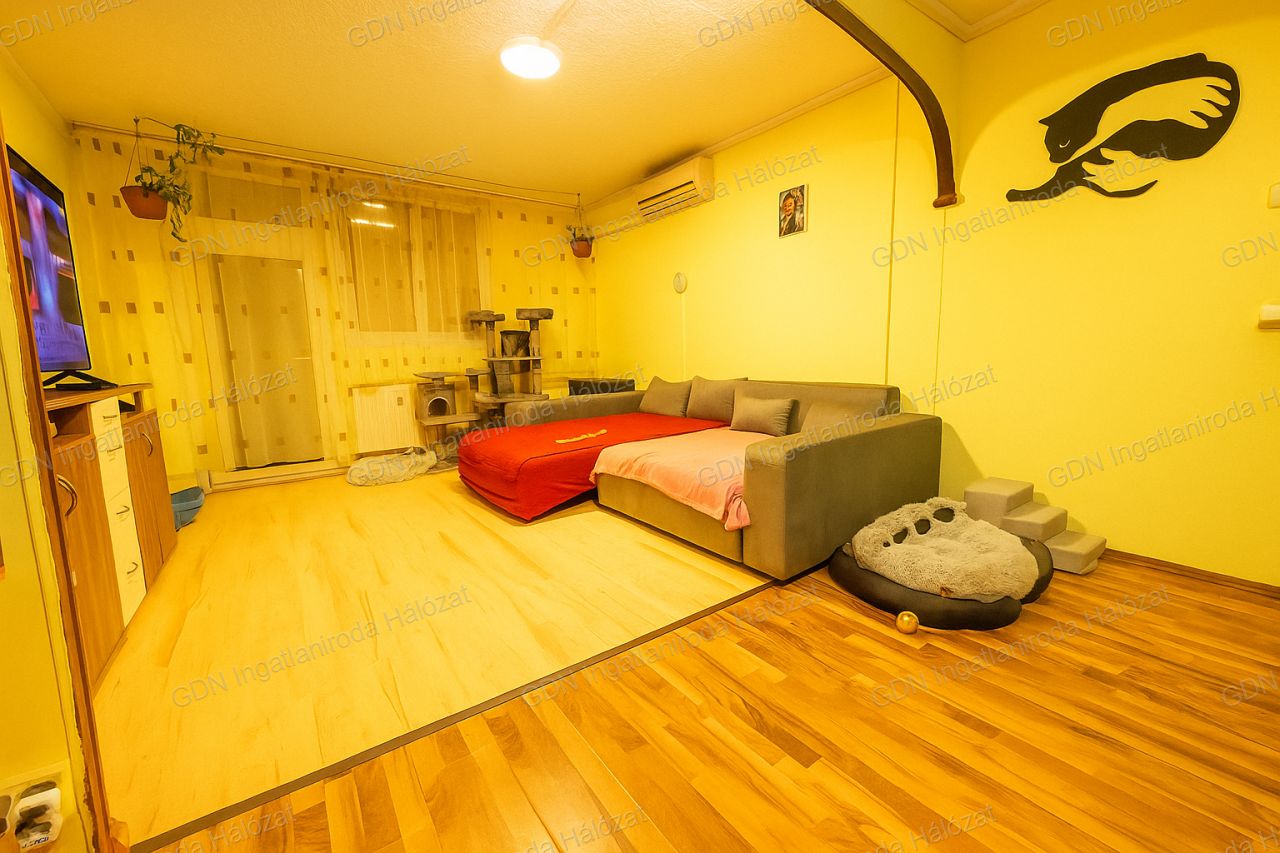 SZIGETSZENTMIKLÓSON A SZENT MIKLÓS ÚTI LAKÓTELEPEN VILÁGOS, 62 M2 ALAPTERÜLETŰ, ERKÉLYES KLIMATIZÁLT MÁSODIK EMELETI LAKÁS ELADÓ! Szigetszentmiklóson a Szent Miklós utcában, egy négyszintes panel házban, eladóvá vált, egy második emeleti, napfényes kelet-nyugat tájolású, 62 m2 lakóterületű, jó beosztású, 1+ 2 fél szobás kényelmes lakás! A társas-ház melyben a lakás elhelyezkedik rendezett, jó lakó közösségnek örvend! A lakás nyílászárói műanyag szerkezetű thermo üvegezésűek, redőnnyel és szúnyoghálóval ellátottak.. Fűtése, távfűtés radiátor hőleadókkal, a nyári melegben a kellemes hőmérsékletről két inverteres hűtő/fűtő klíma gondoskodik. Burkolatai a szobákban laminált parketta, konyhában és a fürdőszobában, közlekedőben kerámia lap burkolat. Elosztása: közlekedő/előtér 5,61 m2, nappali szoba 26 m2, félszoba 8,51 m2, félszoba 8,51 m2 konyha/étkező 8,65 m2, fürdőszoba 3,51 m2, toalett 1 m2, erkély 3 m2 A beépített konyhabútor gépesítve, és a beépített bútorok a vételár részét képezik. A lakáshoz közös használatú tároló tartozik. A közös költség 12,260 ft mely tartalmazza a felújítási alapot, a lépcsőház takarítást, szemétszállítást, biztosítást. A nappali parkettázása folyamatban van. Az ingatlan közelében, bevásárlási lehetőségek és intézmények közül szinte minden 2-3 perc távolságban megtalálható, a közért, pékség, hentes, zöldséges, étterem, iskola, óvoda, posta, bank, orvosi rendelő, HÉV megálló, stb. Az agglomerációból könnyedén a fővárosba juthatunk, akár autóval (M0), akár tömegközlekedéssel (HÉV) FINANSZÍROZÁS: Nálunk mindent egy helyen intézhet: - hivatalos ingatlanközvetítés; - szakszerű jogi képviselet; - profi CSOK-PLUSZ, és hitelügyintézés: 16 Bank, több mint 100 konstrukció; VÁROM MEGTISZTELŐ HÍVÁSÁT! A részletes adatvédelmi tájékoztató folyamatosan elérhető a GDN weboldalán.