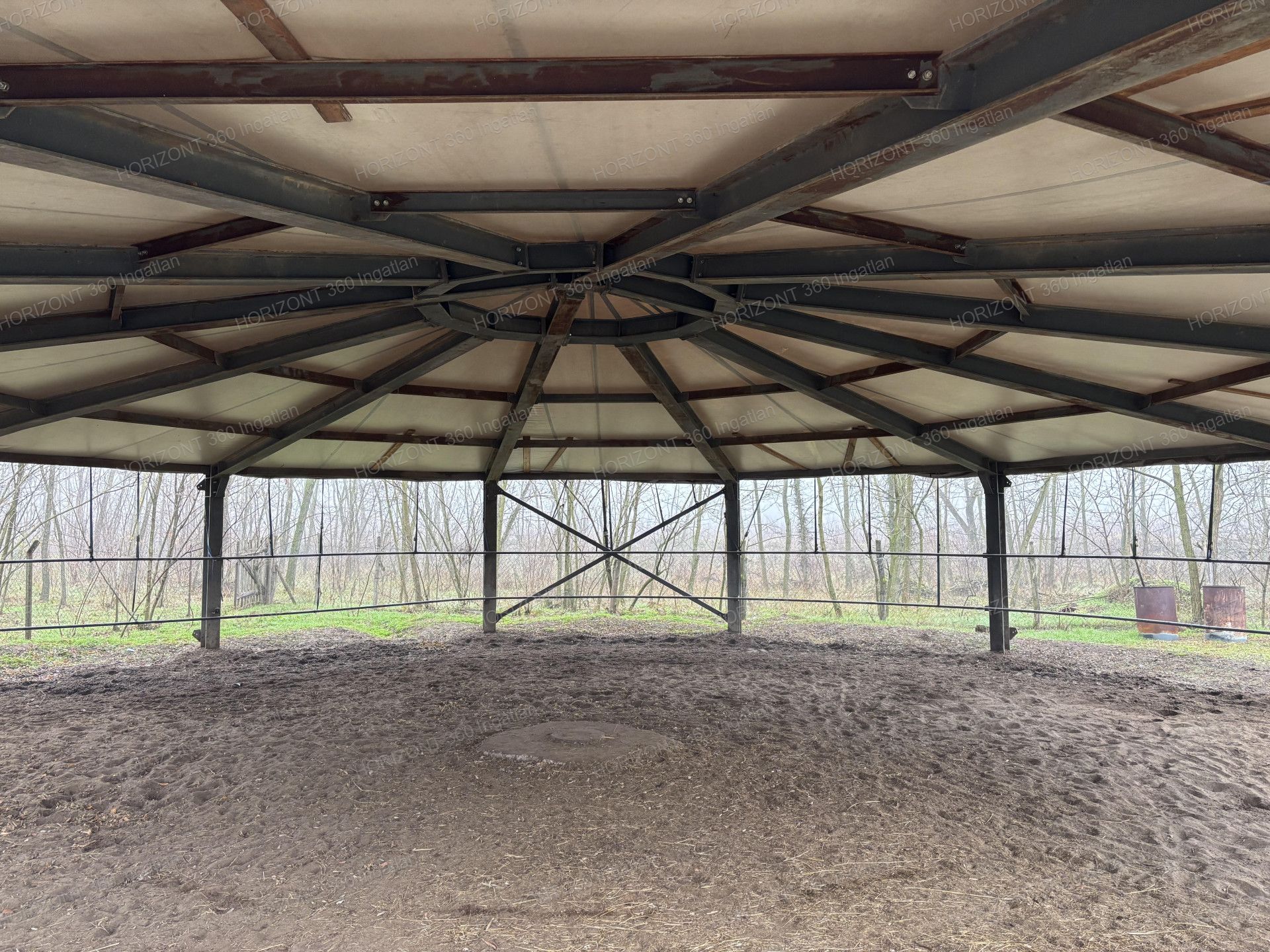 - 20 méter átmérőjű kör fedeles, amely fém szerkezetű, ponyvával fedett, oldala nyitott