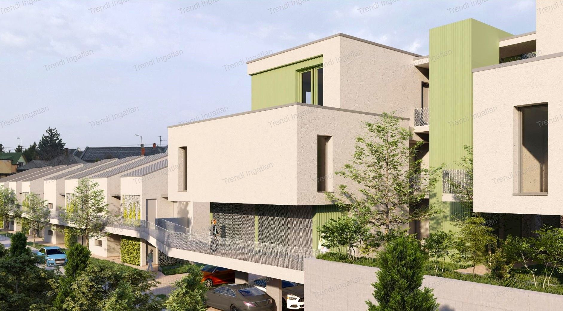 A modern társasházban nappali + 1 szobás, nappali + 2 szobás és nappali + 3 szobás lakások kerülnek kialakításra. A földszinti lakások kertkapcsolattal és terasszal, az emeleti lakások erkéllyel, galériával és tetőterasszal, a penthouse lakások tetőterasszal rendelkeznek.