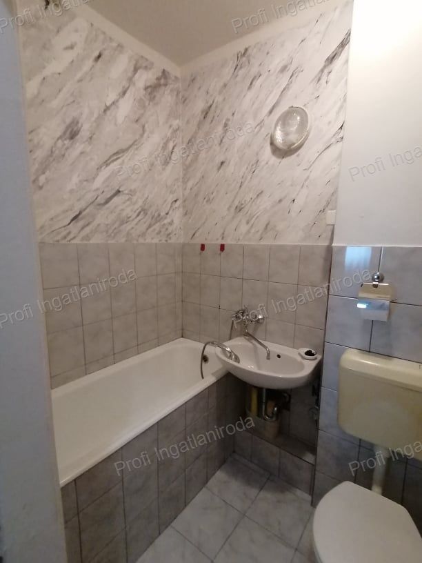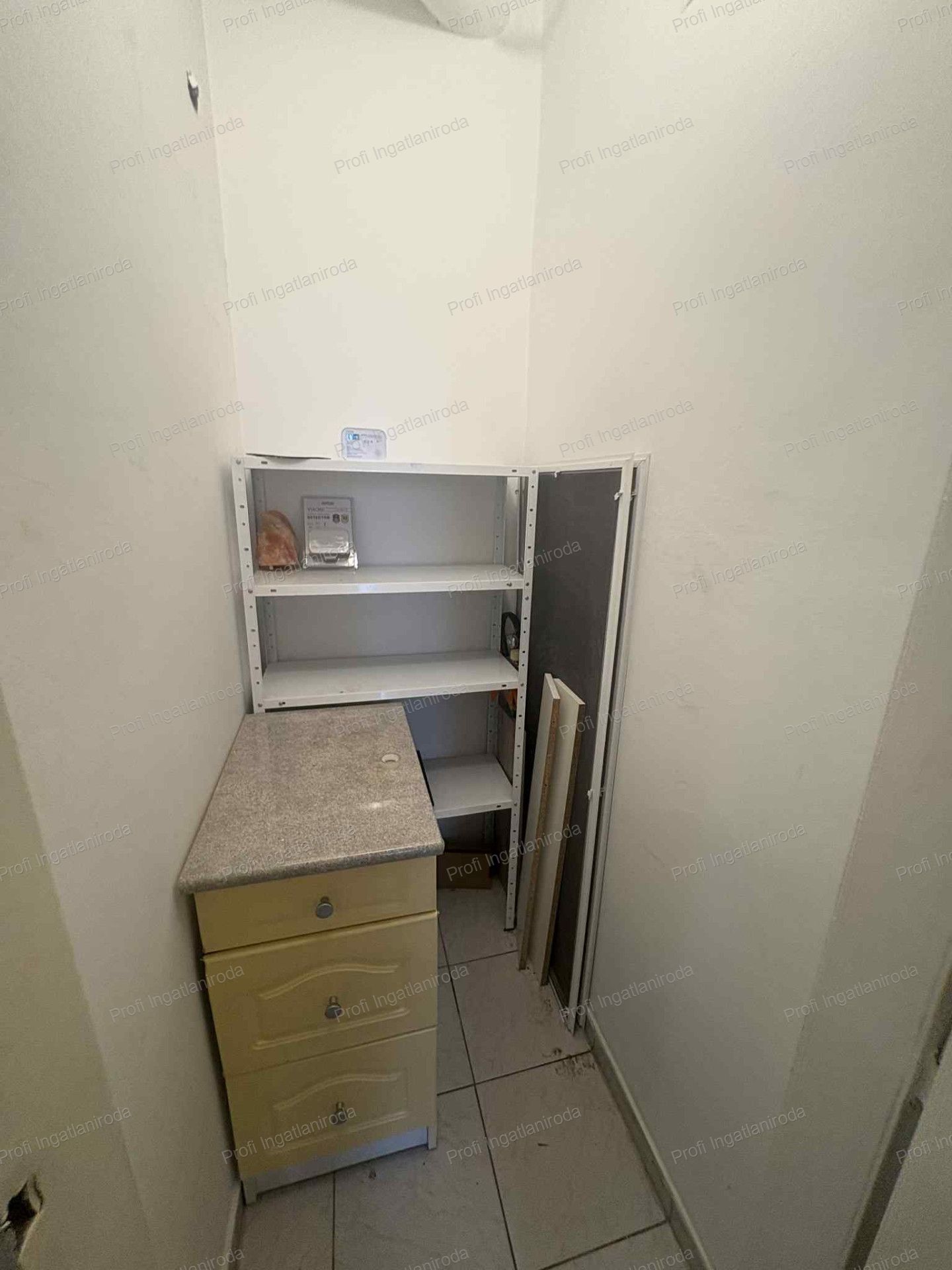 A lakás elosztása: nappali, háló, konyha, fürdő-WC egyben, spájz, előszoba.