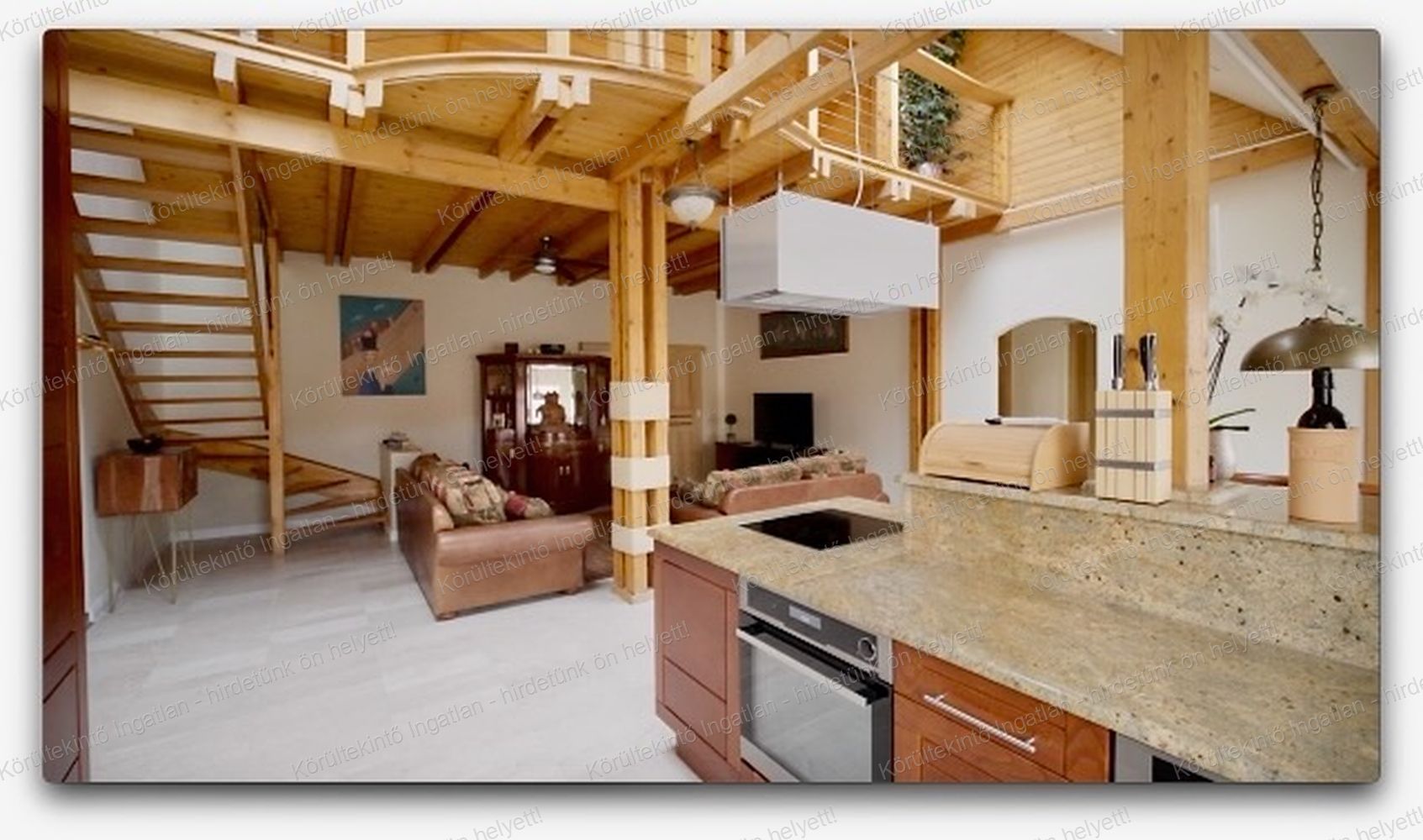 - Tágas, amerikai konyhás nappali (gránit munkalapok, cseresznyefa szekrények, professzionális elrendezés),