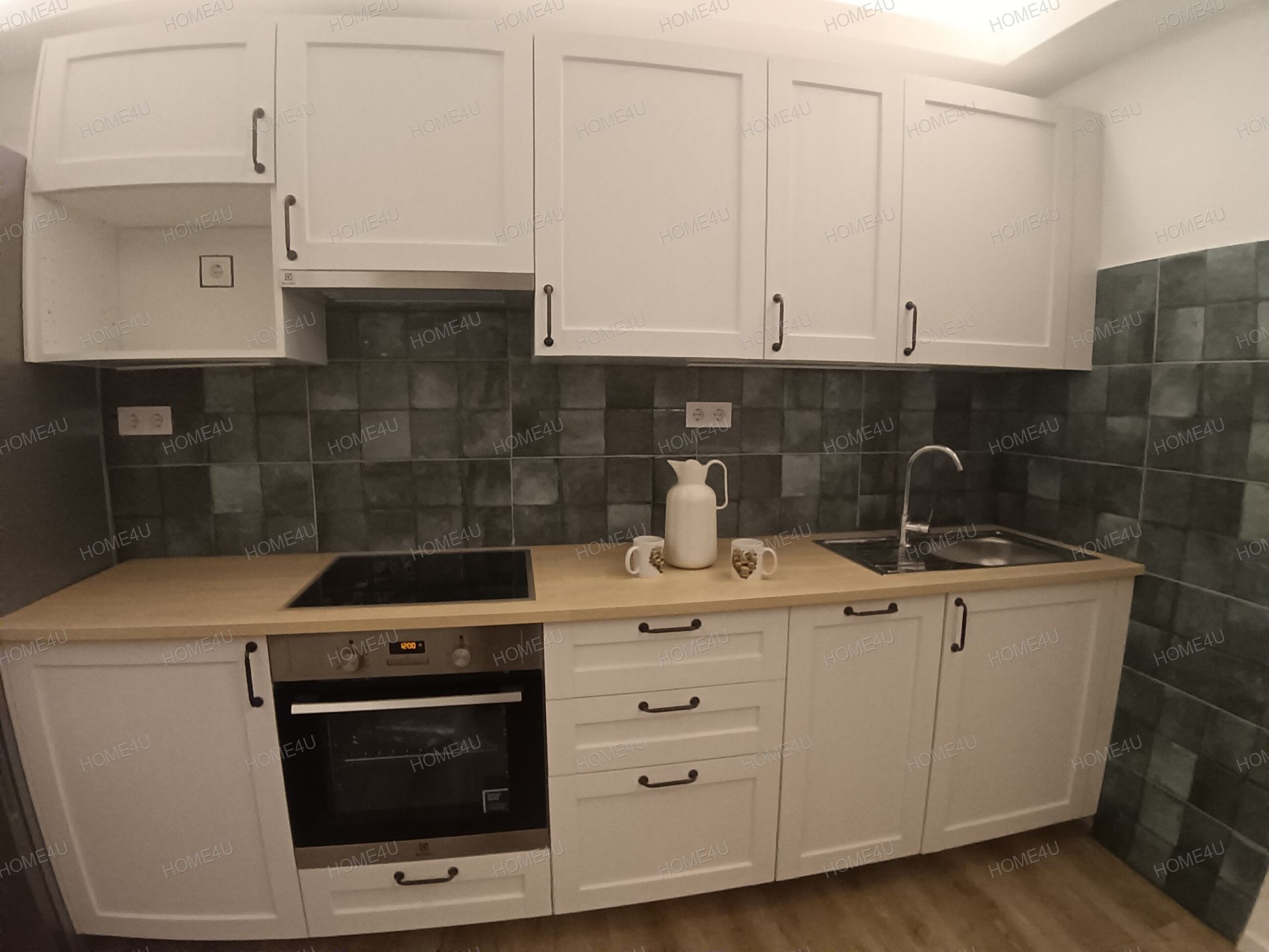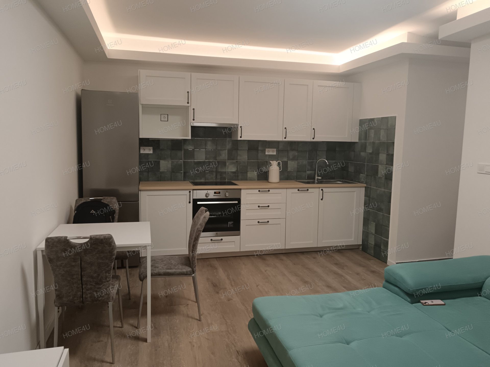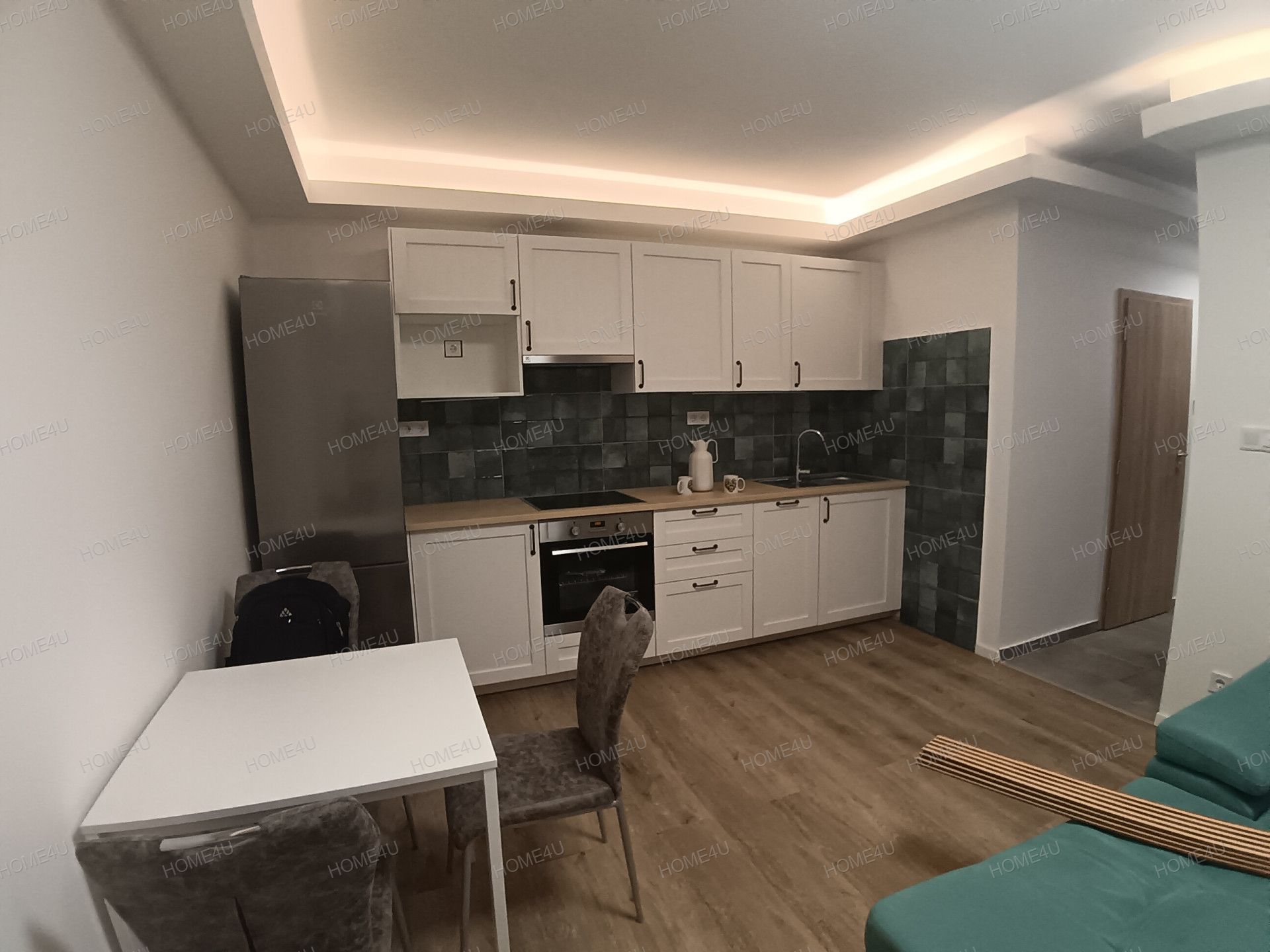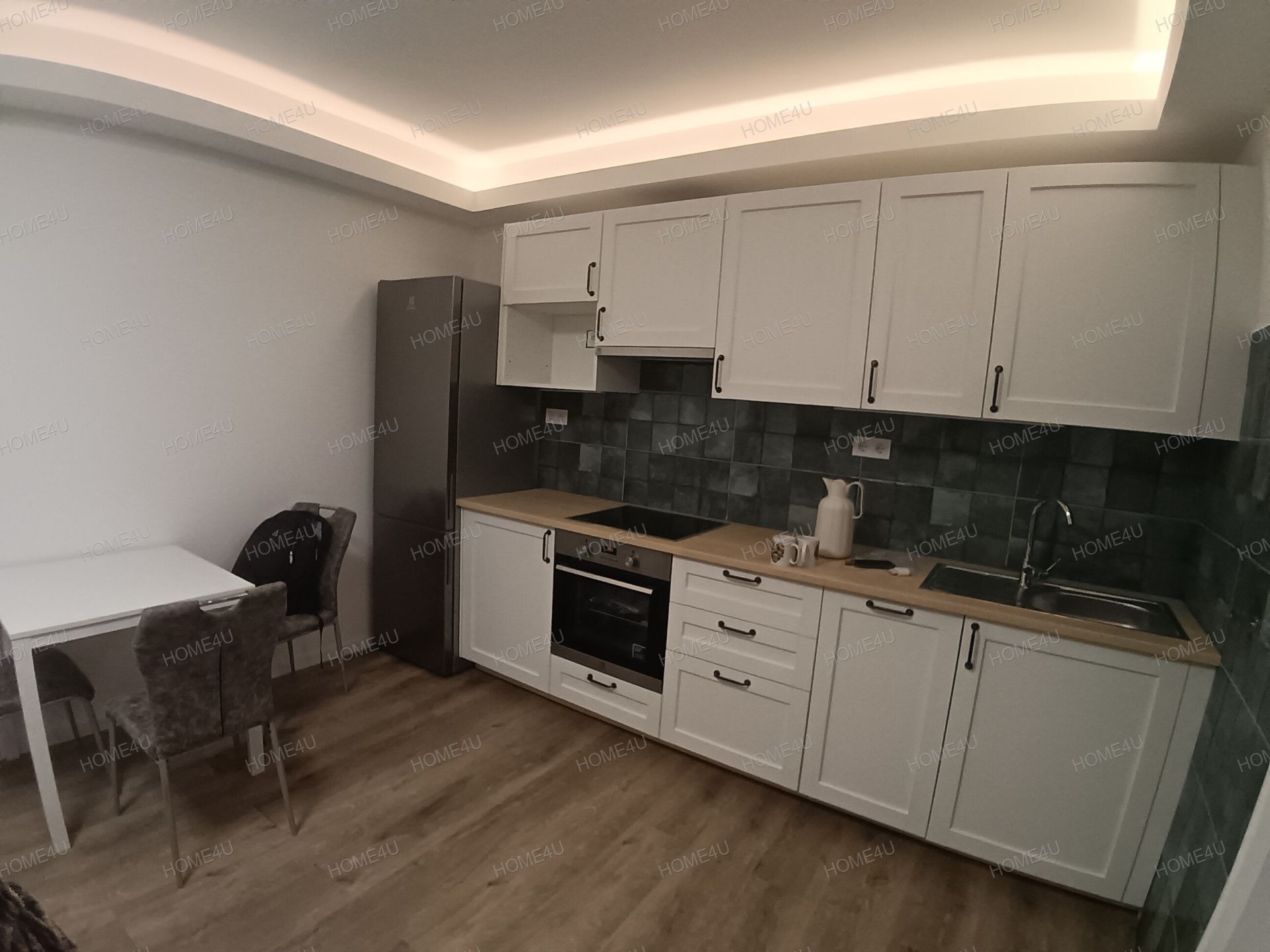 -igényes, gépesített amerikai konyha, kerámia főzőlap elektromos sütővel, mosogatógép, hűtőszekrény
