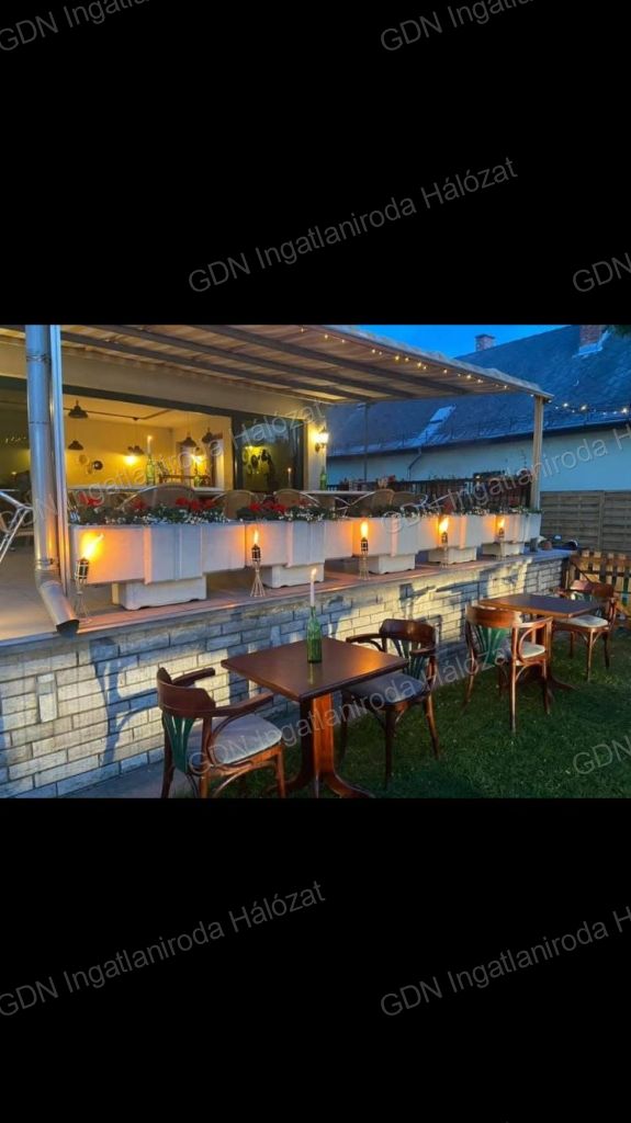 A földszinten melynek hasznos alapterülete: 106,6 nm + 40 nm terasz, és a pinceszinten 103,2 nm működik az ételbár, a tetőtérben egy nettó 66 nm alapterületű lakás van kialakítva.