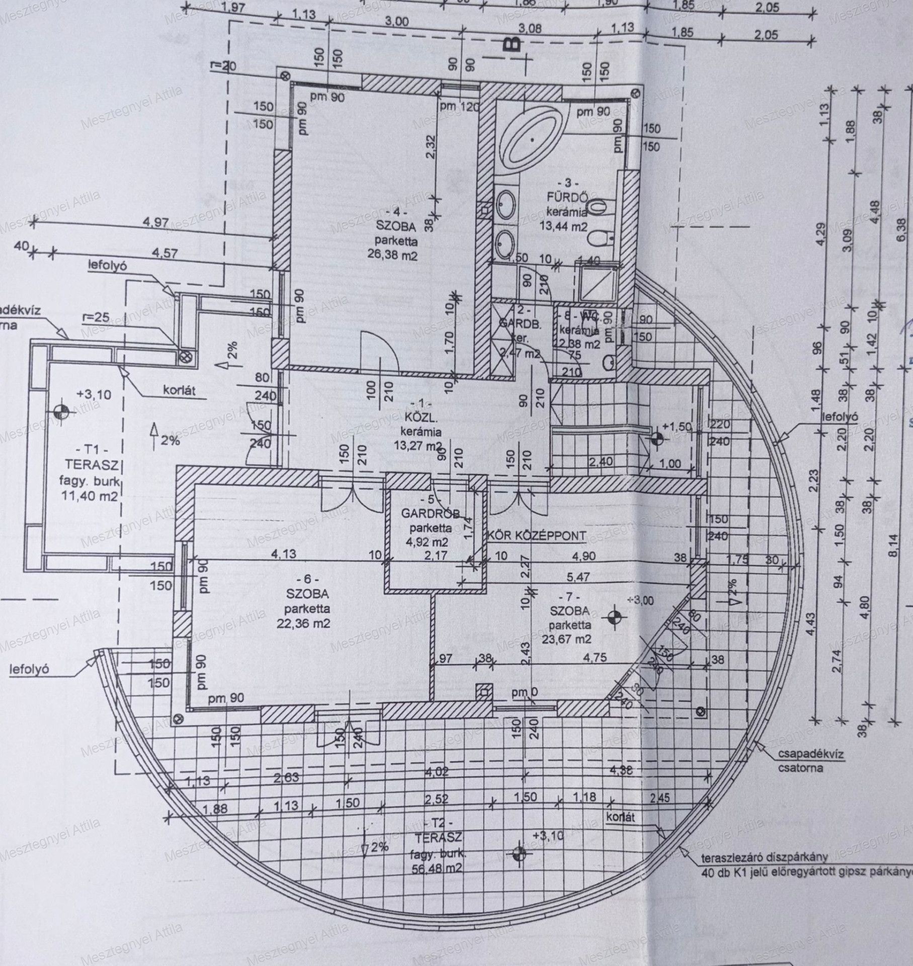 3 terasz (földszinten 39 m², emeleten 68 m²-es erkély)