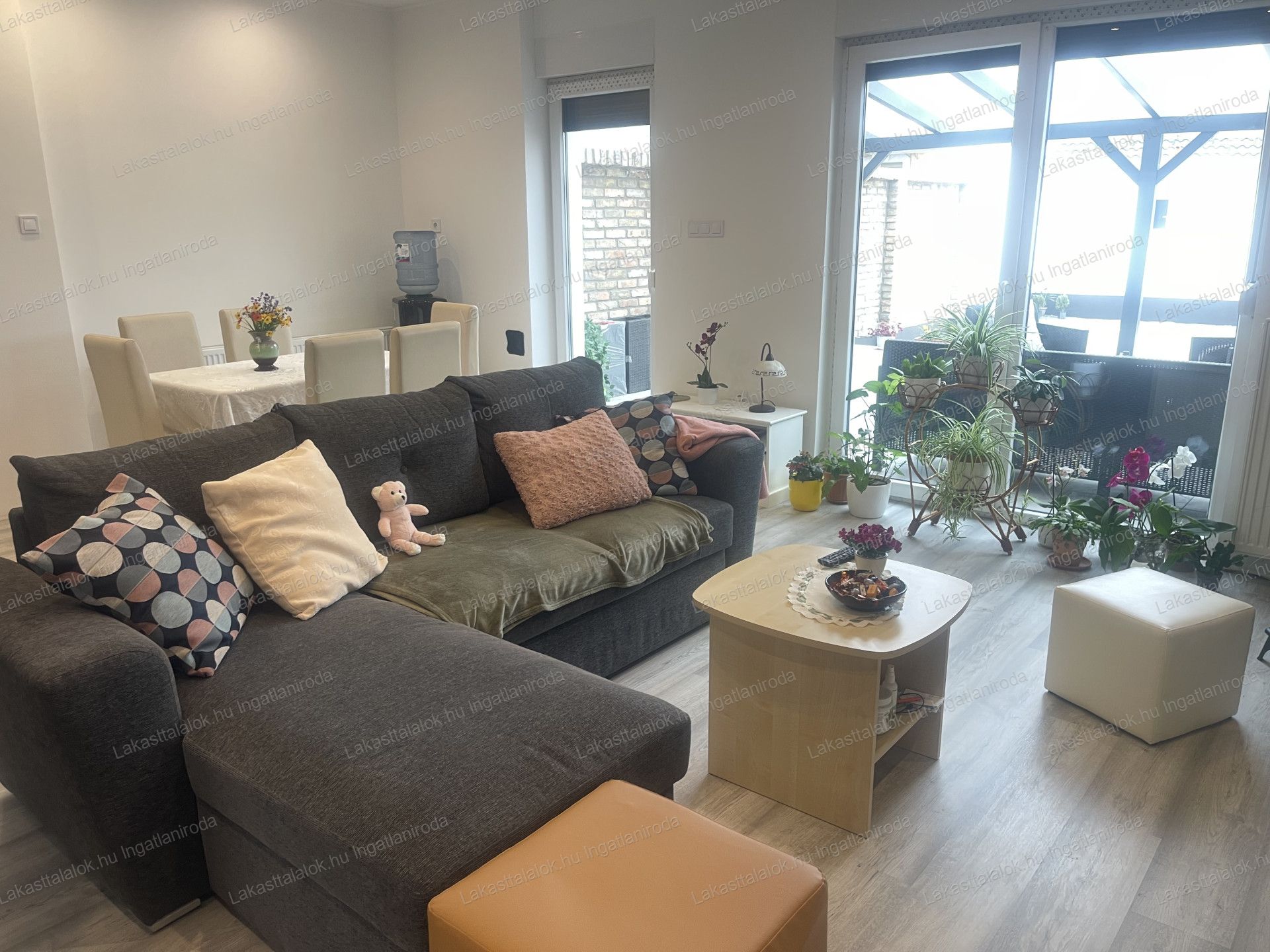Az udvaron fedett saját privát terasz(30m2-es), plusz egy 40m2-es melléképület az udvar végében.