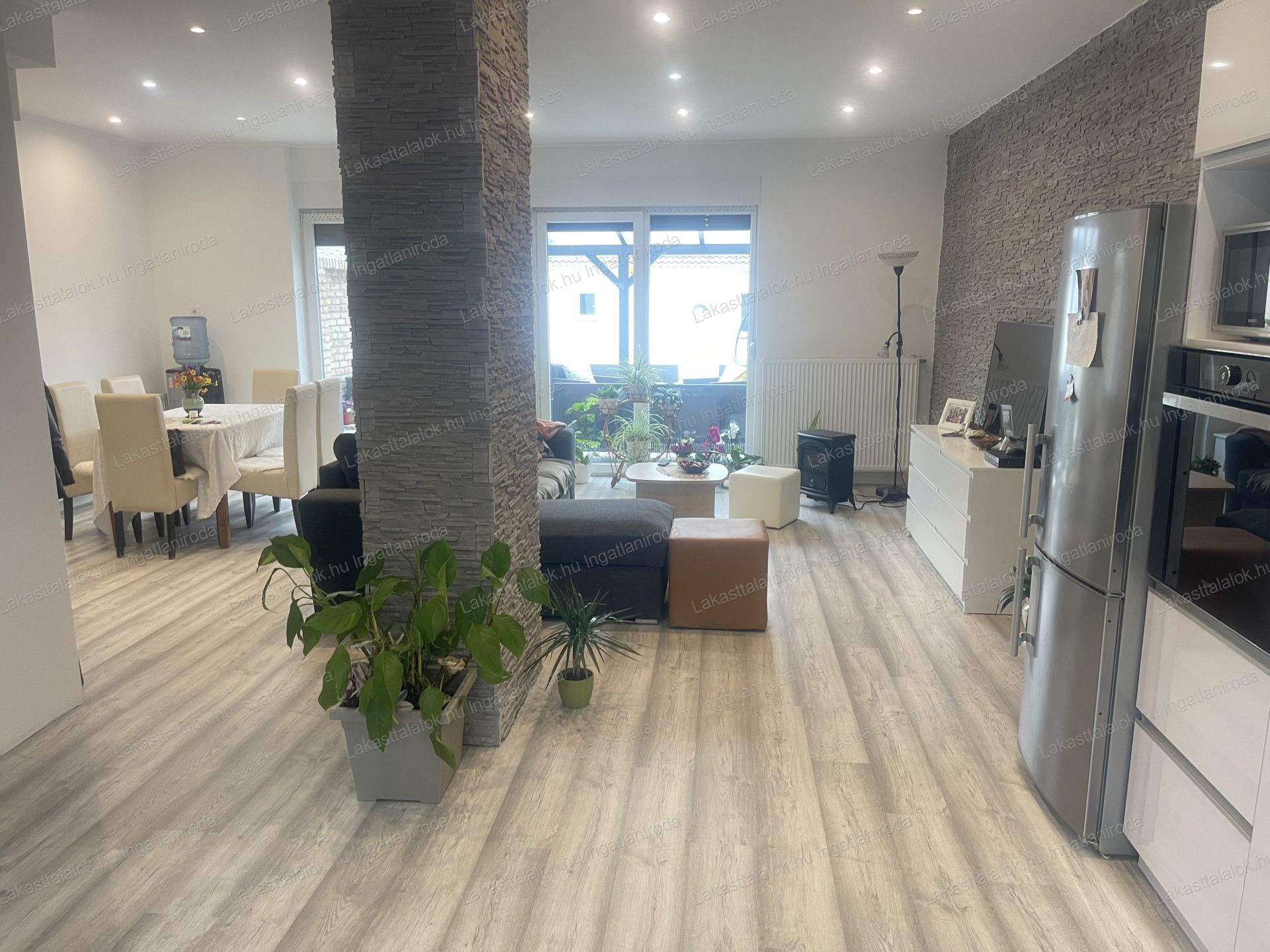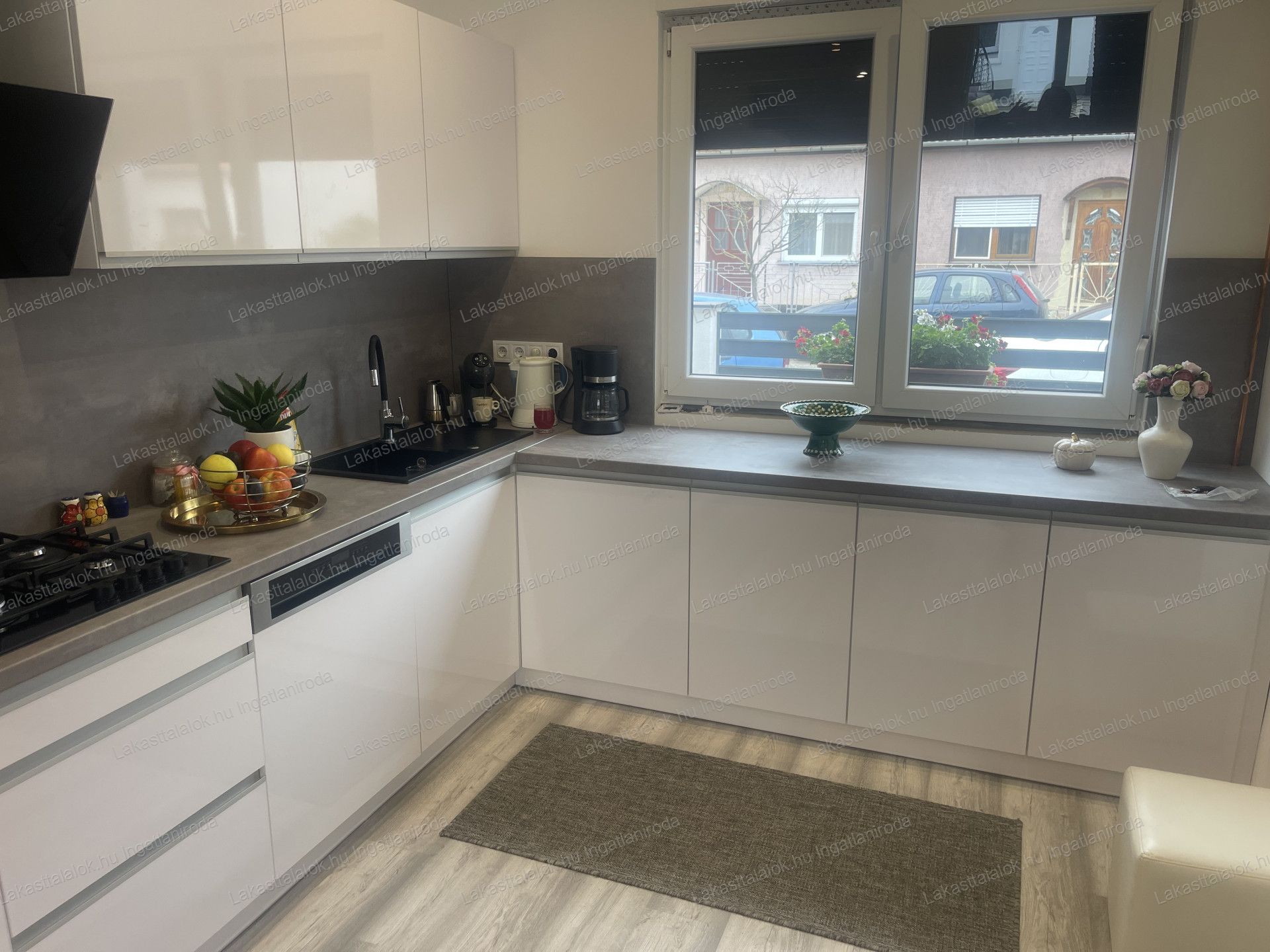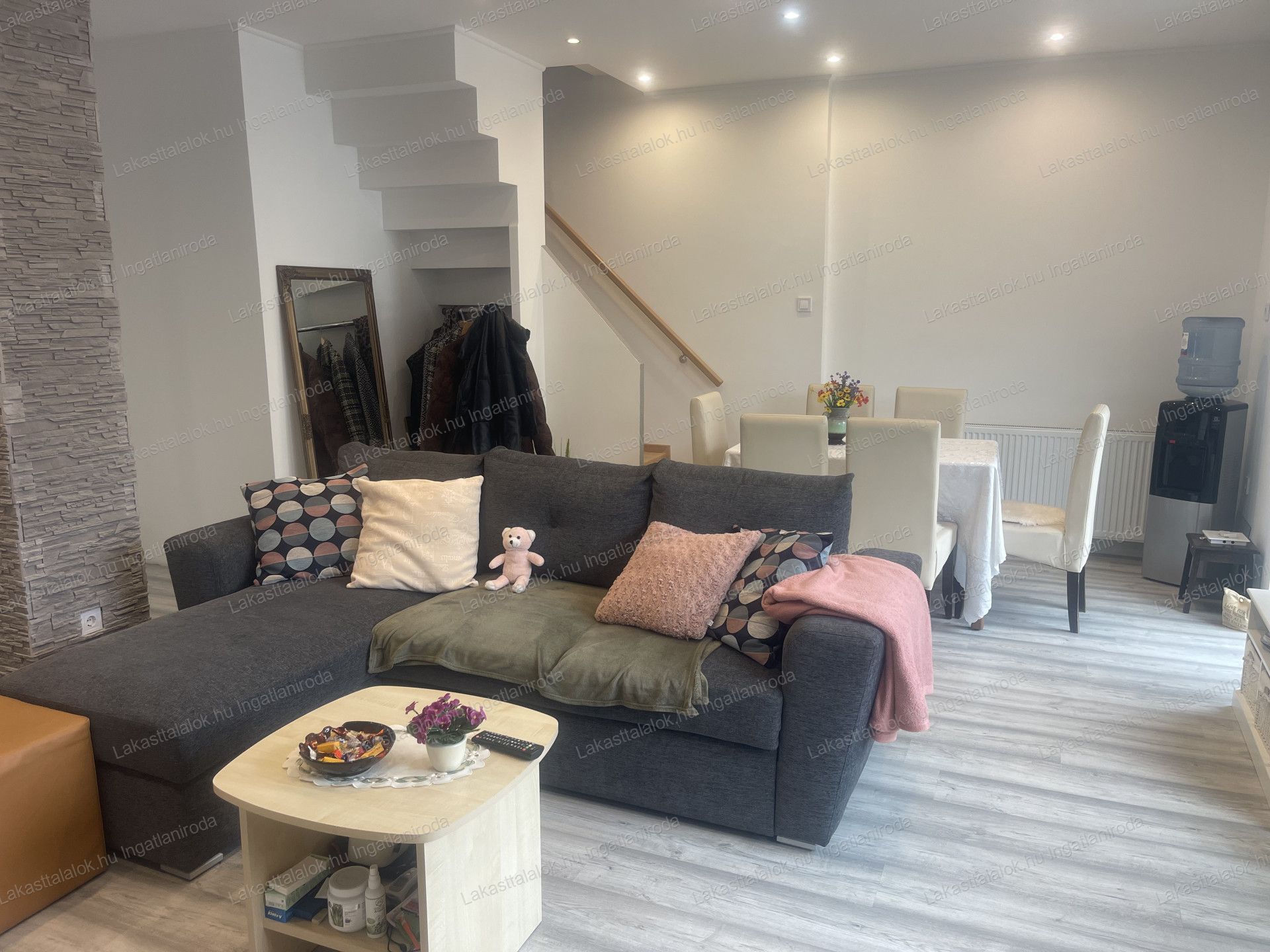 Eladó Baján, a Szállásvárosban, 110m2-es, kétszintes, 3 háló+nappalis, 2 fürdőszobás, szigetelt, felújított sorház.