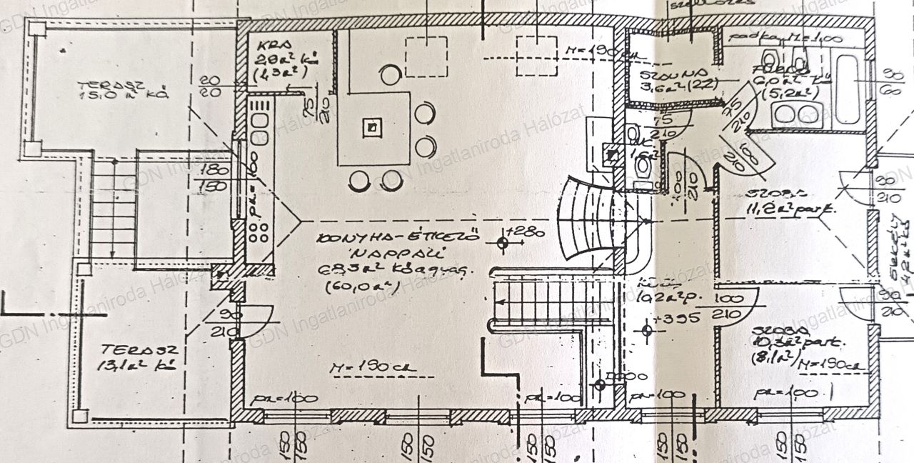 - félszuterén rész, külön bejárattal: előtér, szoba, konyha nappalival, fürdőszoba.
