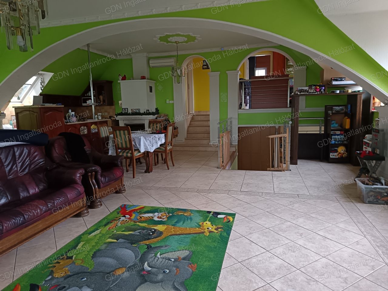 Fűtés: gázcirkó padlófűtéssel és radiátorokkal, hűtő-fűtő klíma, kandalló.
