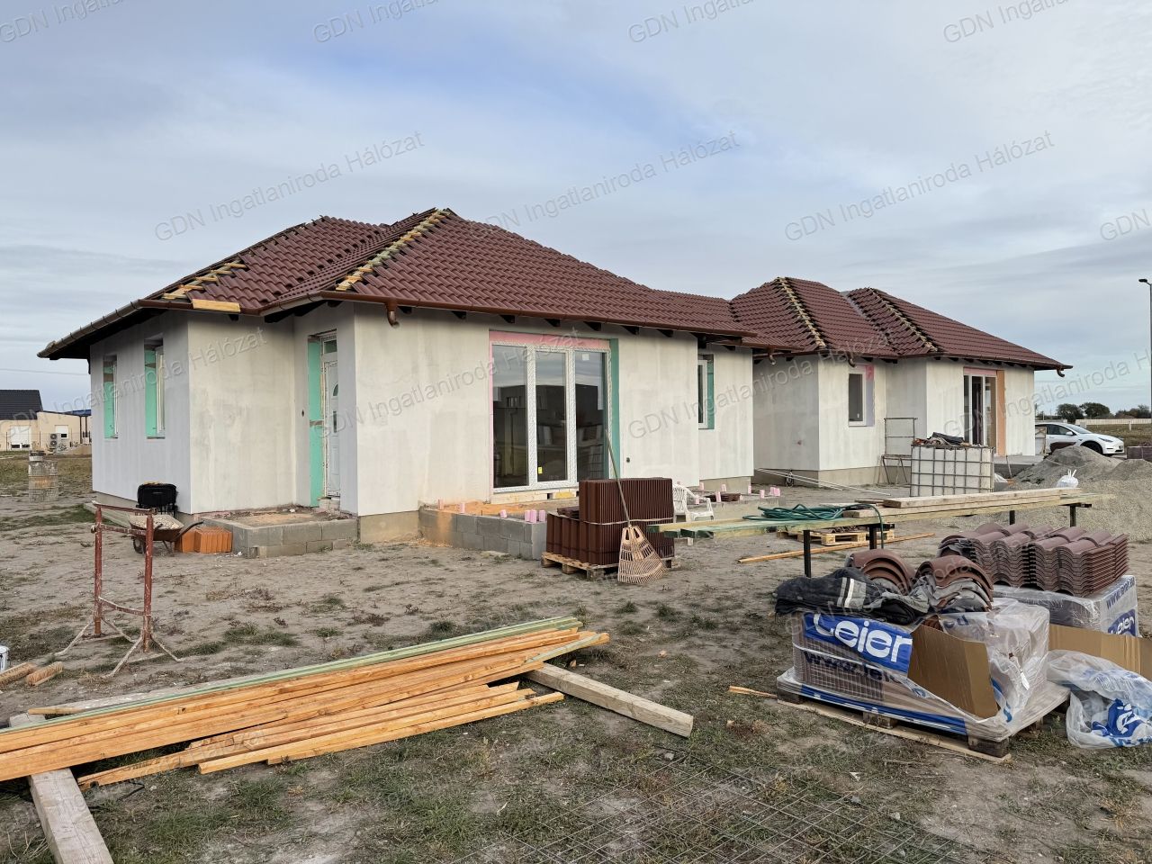 Jászberényben a Szatmári lakóparkban a Bársony utában, 700 m2-es telken, eladó 2db nettó 83,2m2-es + 13,5m2 terasszal rendelkező, fafödémes, 3 szoba plusz amerikaikonyha- nappalis kertkapcsolatos Ikerházfél.