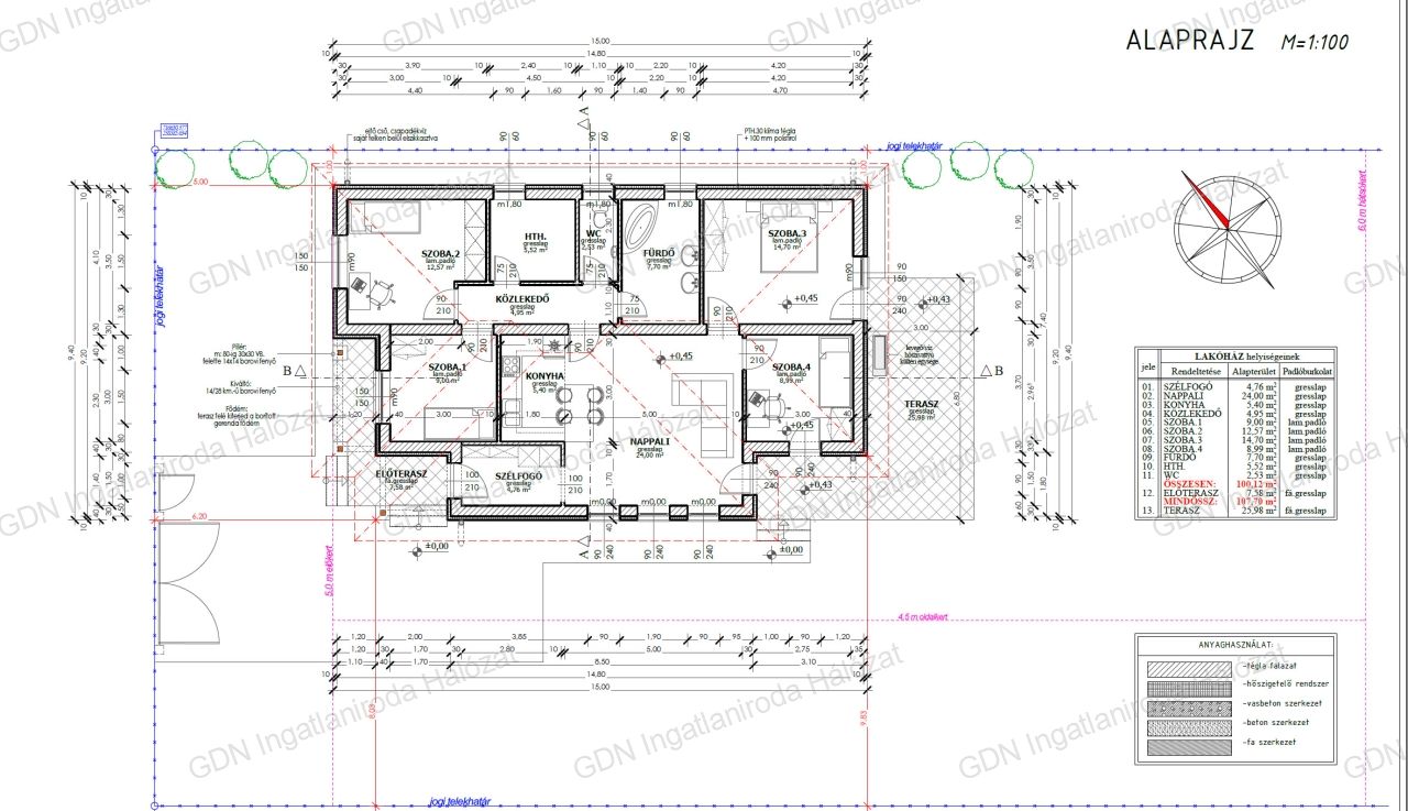 A tető héjazata antracit betoncserép lesz, a homlokzatok 15cm EPS, a padló 10cm Austrotherm AT-N100-as, a vízszintes födém 25cm Ásványgyapot szigeteléssel lesz ellátva.