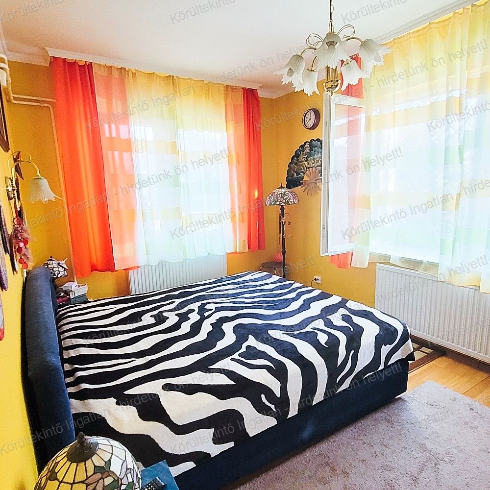 A belső tér minden részlete igényességet tükröz, a beépített szekrények, a méretre szabott gépesített konyhabútor jó helykihasználásra utal. Keleti fekvésű, világos ablakokkal rendelkező hatalmas nappali, 3 háló, 2 fél szoba, konyha, kamra, két fürdő és két WC. Az épülethez csatlakozik egy 15 m2-es garázs is, amely egy autó parkolását biztosítja, illetve tárolhellyes is szolgál.