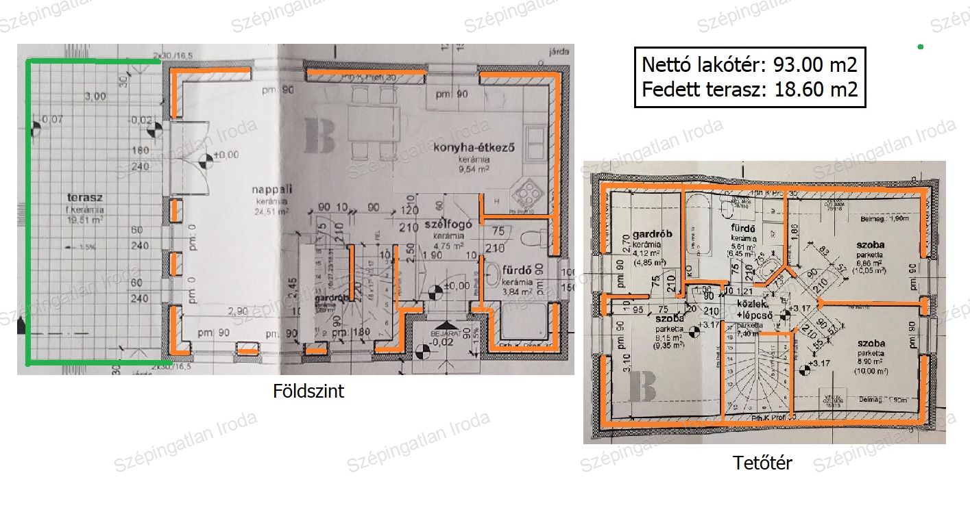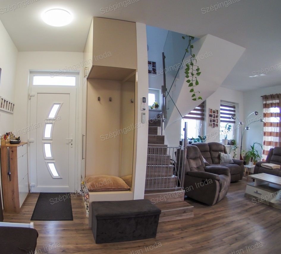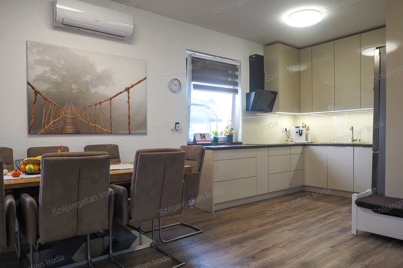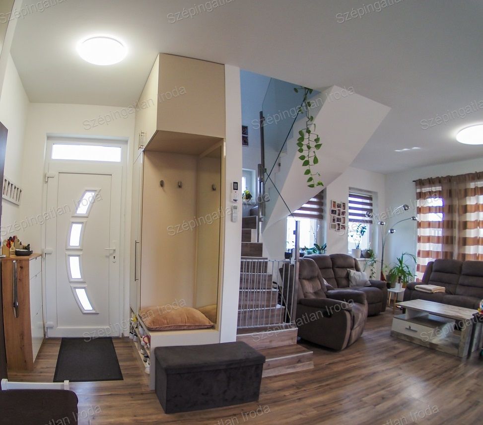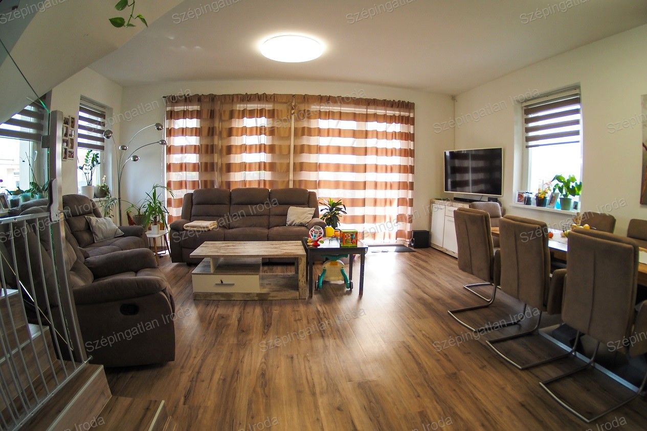 A Szépingatlan Iroda eladásra kínál Nagycenken, a Széchenyi lakóparkban, kulturált családi házas környezetben, egy 2021-ben kiváló minőségben megépített, praktikus elosztású, 2 szintes önálló családi házat. A telek 270m2, a ház hasznos alapterülete 93m2. A lakótérben amerikai konyha nappali, három hálószoba, 2 fürdőszoba és gardrób helyiség és udvari tároló található. Az épület tégla szerkezetű a fő falak 30 cm-es, a válaszfalak 10 cm-es válaszfal téglából készültek, az energetikai szabványnak megfelelően 18 cm-es homlokzati szigeteléssel. A külső nyílászárók műanyag szerkezetű, fokozott hőszigetelésű 3 rétegű üvegezésűek, belül fehér, kívül antracit színben, vakolható tokos redőnyökkel és szúnyoghálóval felszereltek. Az ingatlanba belépve az előszobából a nappali étkezőkonyha tágas terébe érkezünk Az egyedileg megtervezett, gépekkel jól felszerelt konyhabútor, valamint a számtalan okosan kitalált beépített bútorzat a lakás részévé vált, a vételűr részét képezi. A nappalihoz szervesen kapcsolódó 19 m2-es, déli tájolású fedett terasz és az udvar adja a lehetőséget, hogy tavasztól őszig a külső tér is egyenrangú része lehet az otthonnak. Az éjszakai élettér az emeleten ideálisan helyezkedik el, jól elkülönülve a közösségi tértől, mind közlekedőből nyílik. A fűtés és a meleg víz szolgáltatás energia takarékos gáz-cirkó kazánnal megoldott, padlófűtés rendszerrel. A nyári melegben hűtő-fűtő klíma biztosítja a ház kellemes hőmérsékletét. A háztartási gépek védelmére vízlágyító berendezés is beszerelésre került. A korszerű nyílászáróknak és a jó szigetelésnek köszönhetően az ingatlan rezsiköltsége rendkívül alacsonyan tartható. Az épületben alkalmazott műszaki megoldások, meleg és hideg burkolatok mind jó minőségűek, hibátlanok, egymással színben harmonizálnak. Műszakilag kifogástalan állapotban van az ingatlan. A kertben a kerti szerszámok tárolására egy 6 m2-es tároló található. A gépkocsik számára egy dupla férőhelyes térkövezett autóbeálló áll rendelkezésre közvetlen bejárattal a házhoz. A környezet rendezett, a szomszédok barátságosak, 2 gyermekes családoknak ideális otthon. Ha vásárláshoz hitelre van szüksége, hitelügyintéző Kollégánk segít Önnek megtalálni a piacon fellelhető legkedvezőbb hitelkonstrukciót. Ára: 110 mFt. Érd.: 003630 520 6055, [email protected]