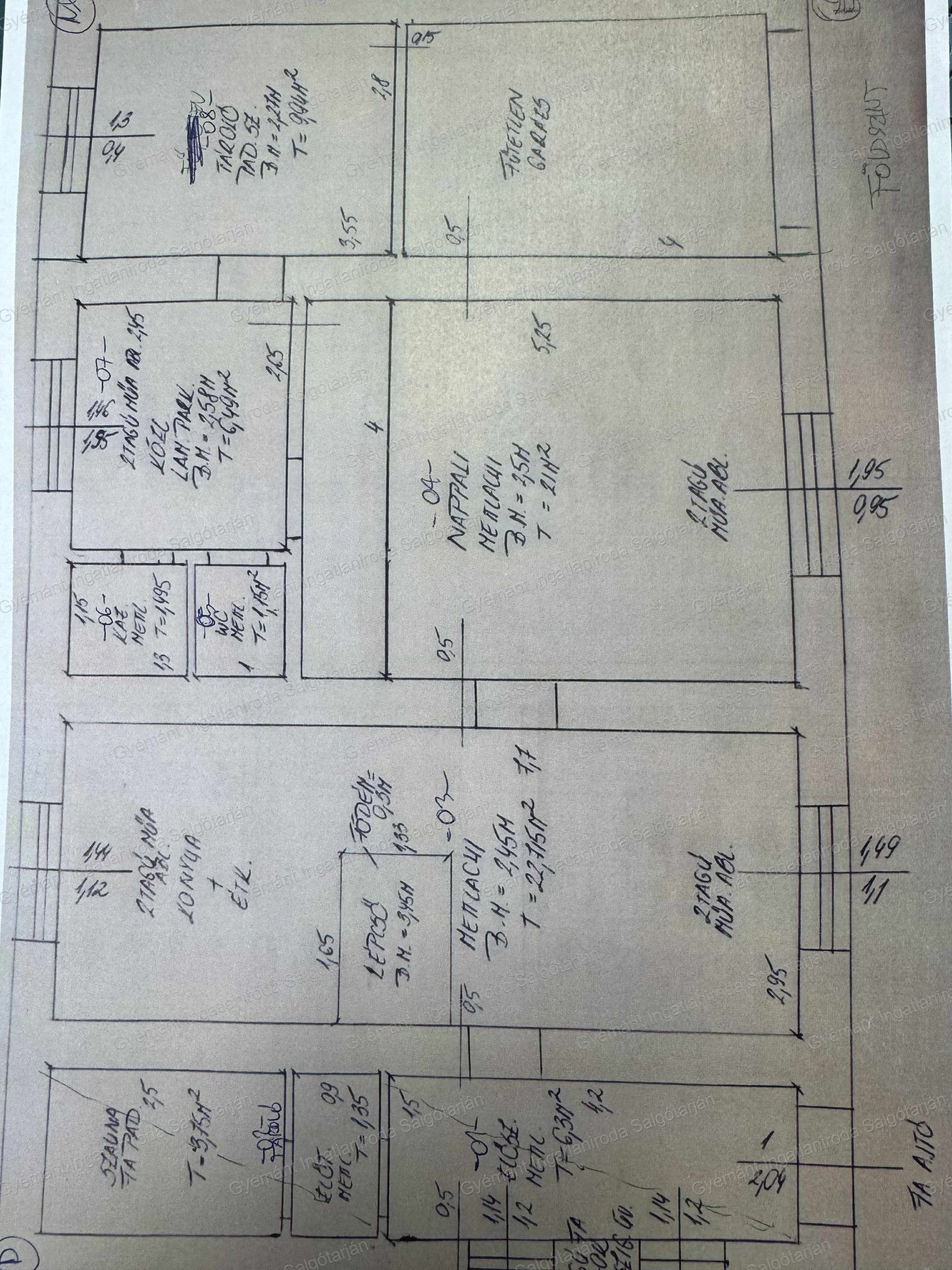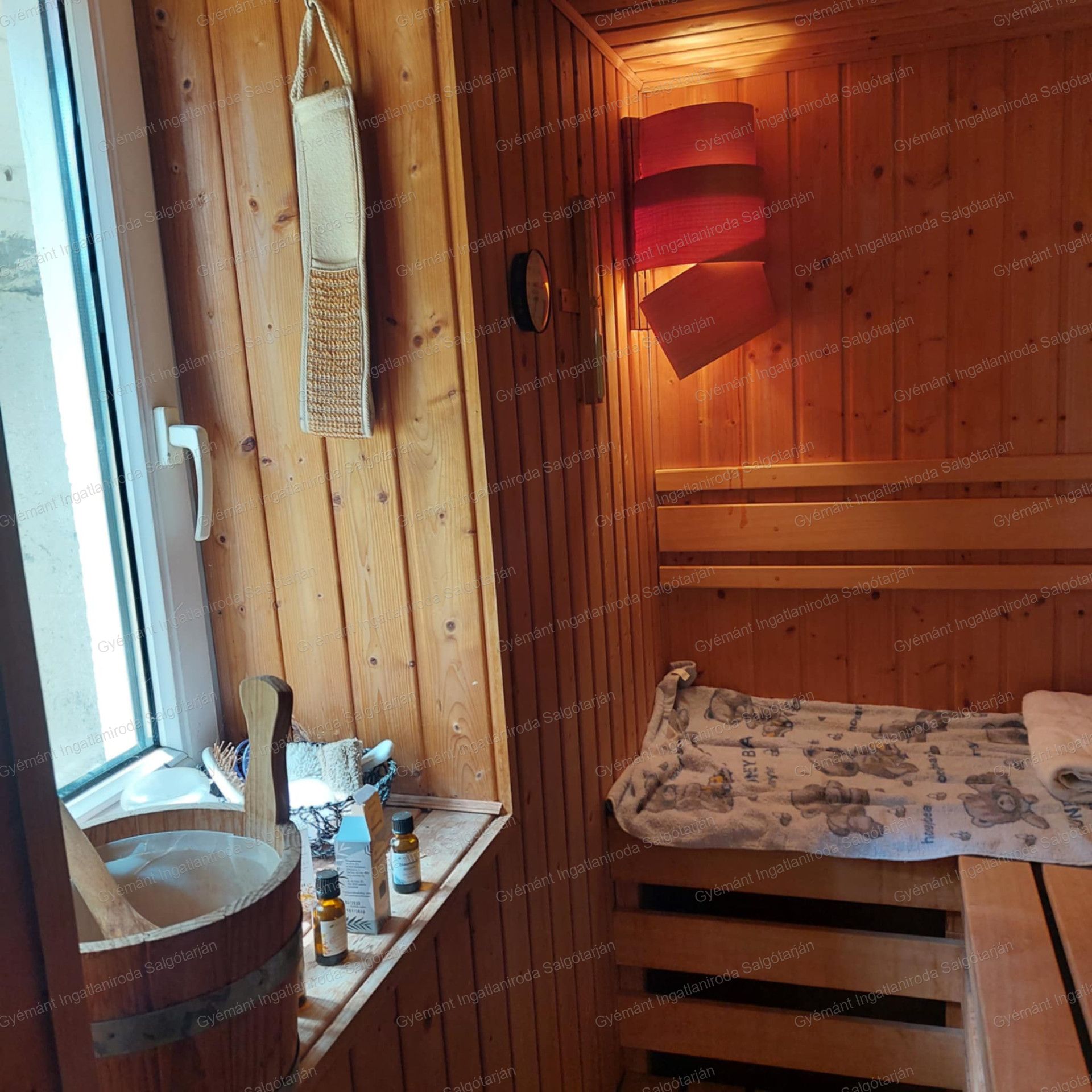 Az ingatlan 2szinttel rendelkezik, azon belül 6 szoba, konyha-ebédlő, spájz, szauna, gardrób található.