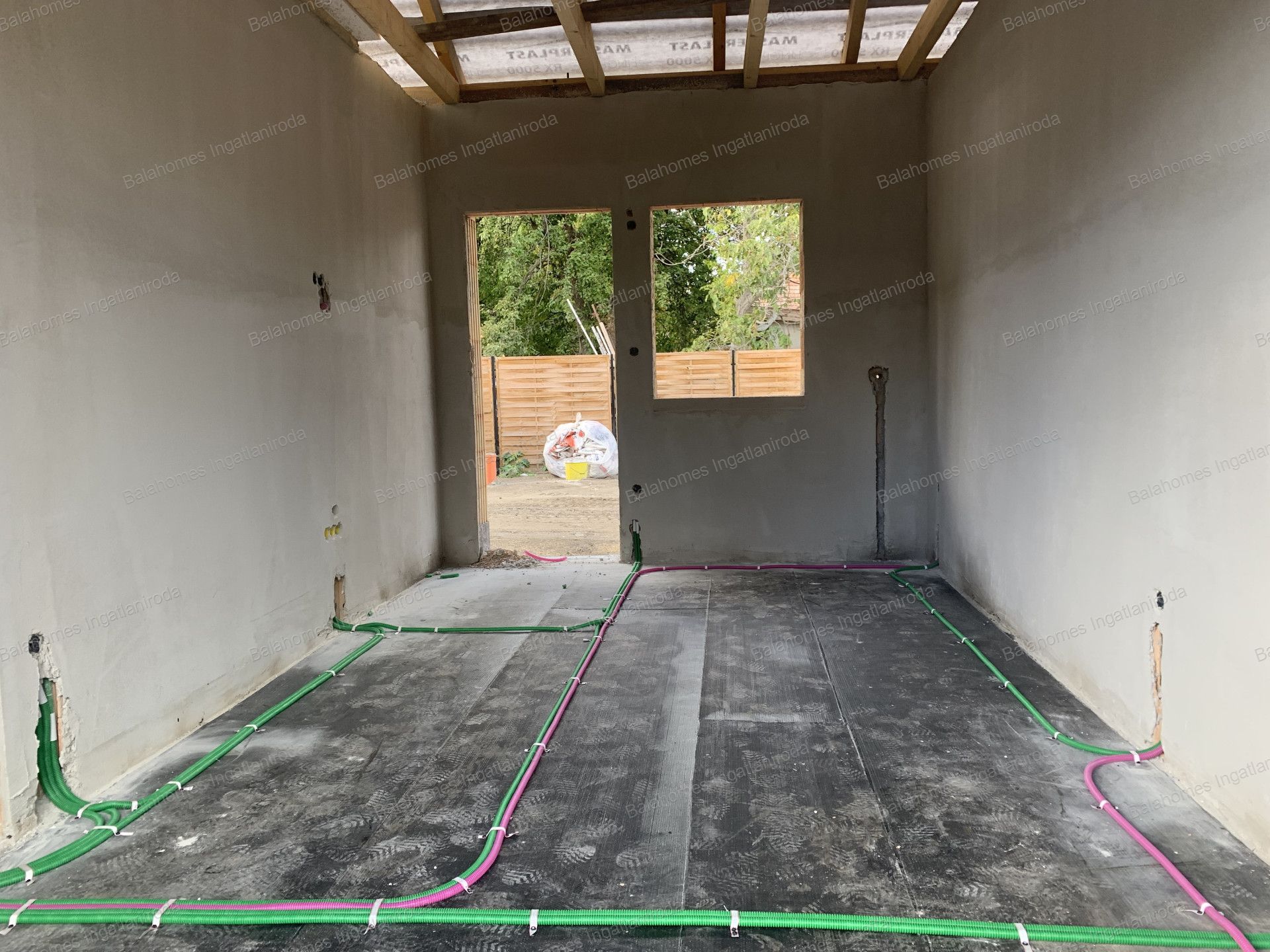 - fűtés: gázkazán, padlófűtés a földszinten, emeleti közlekedőben és a fürdőben, szobákban radiátor