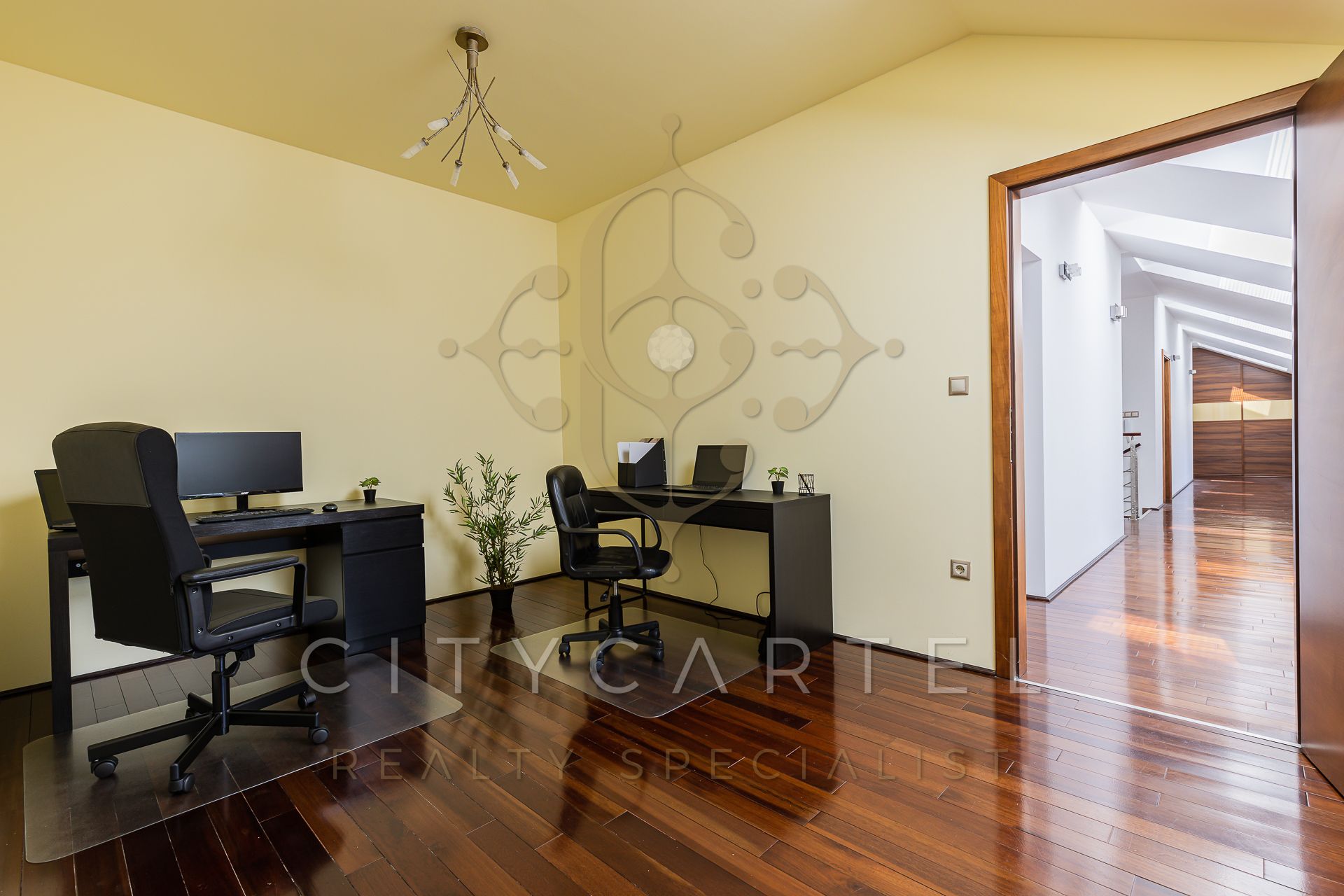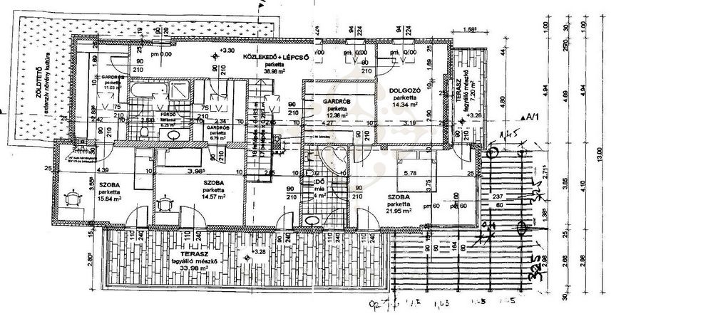 Em.: 4 szoba, 2 fürdő, 3 gardrób, teraszok, zöldtető.