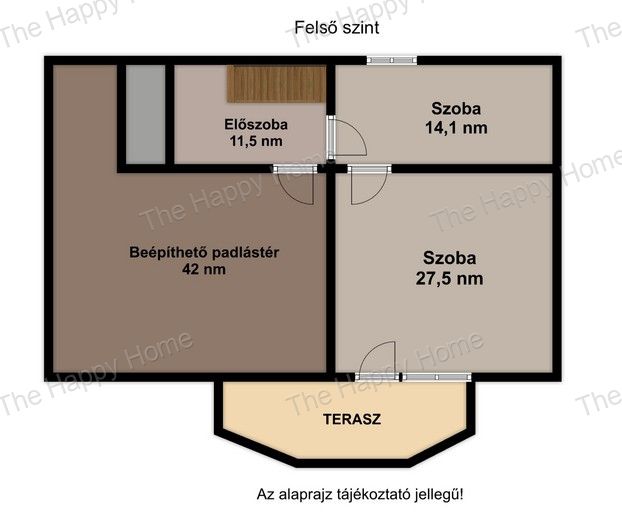 Tetőtér: jelenleg 54 m² (2 szoba + közlekedő), de további 42 m²-rel bővíthető