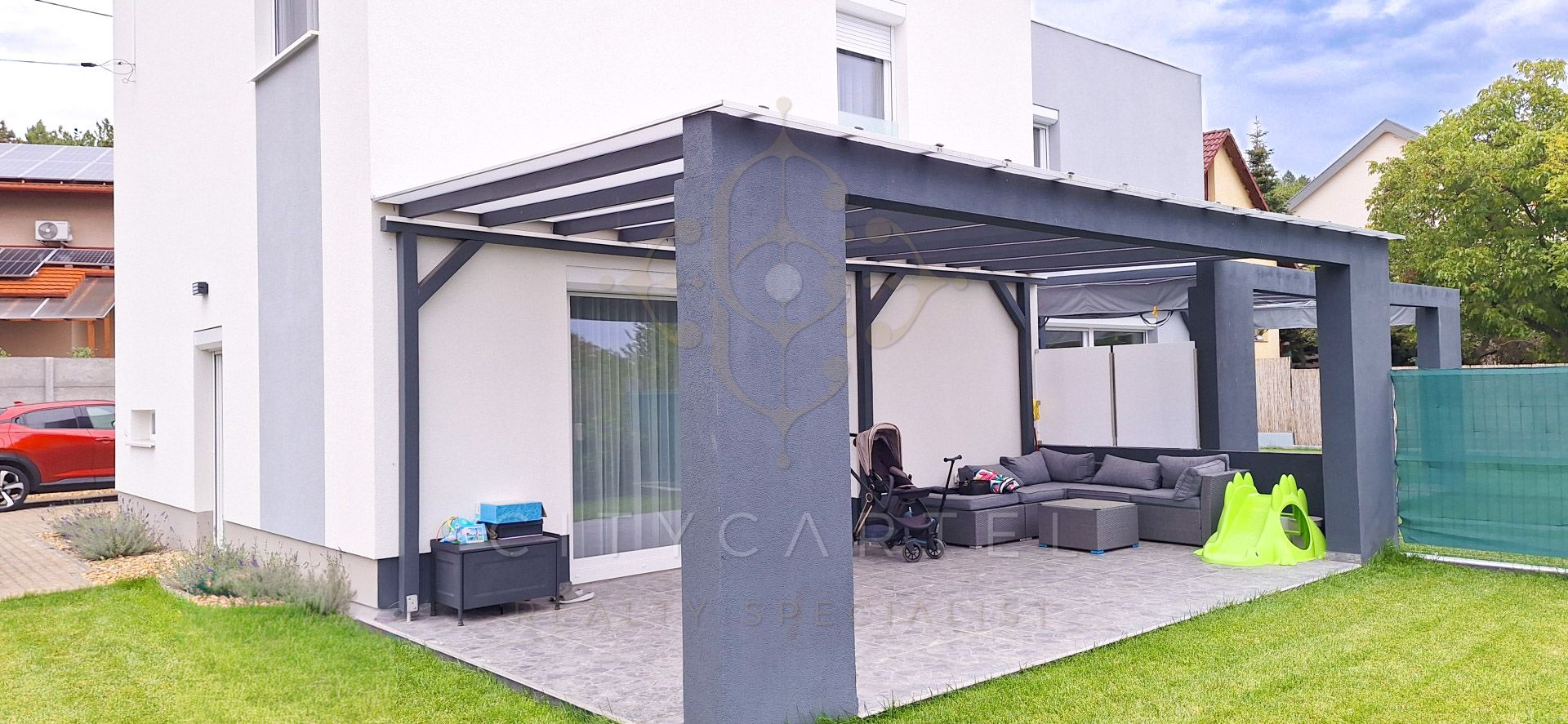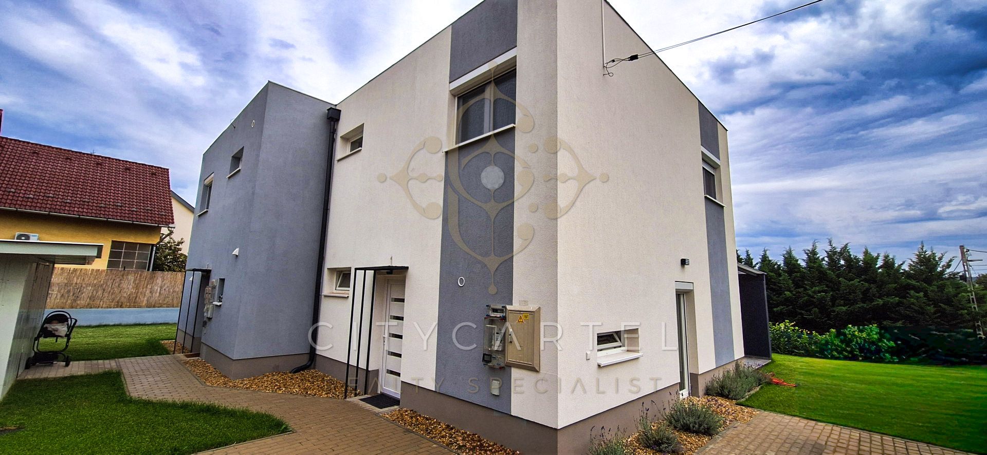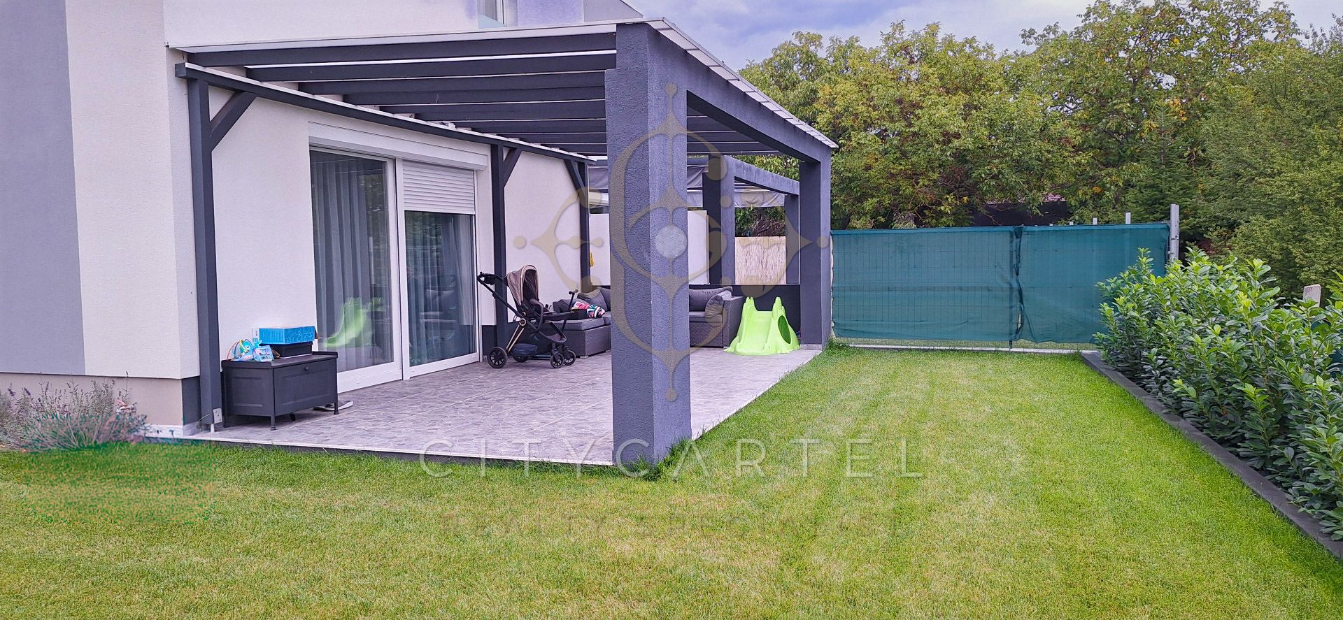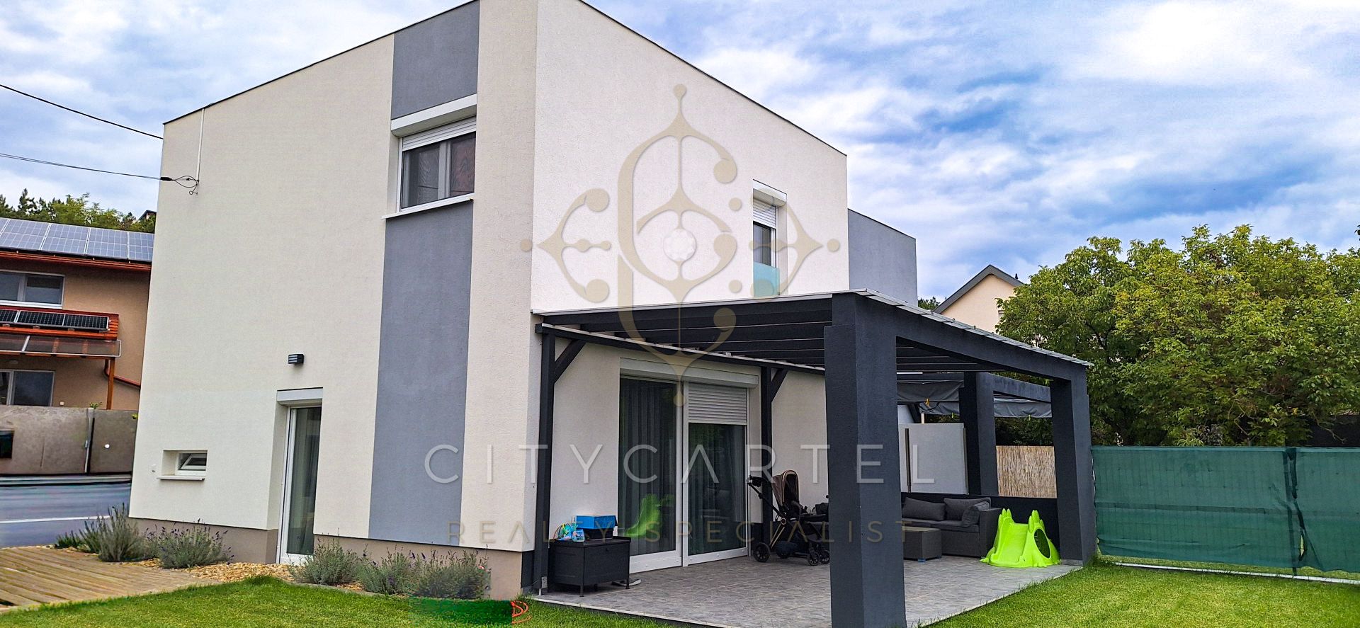 Budaörs egyik közkedvelt, mégis nyugodt mellékutcájában – a Bazsarózsa utca környékén – 2024-ben épült modern ikerház várja új tulajdonosát!