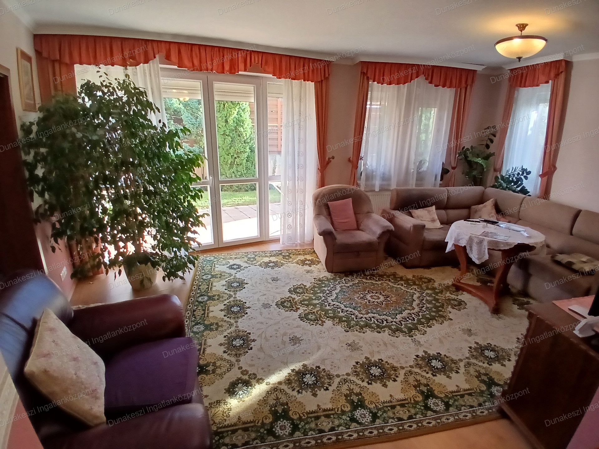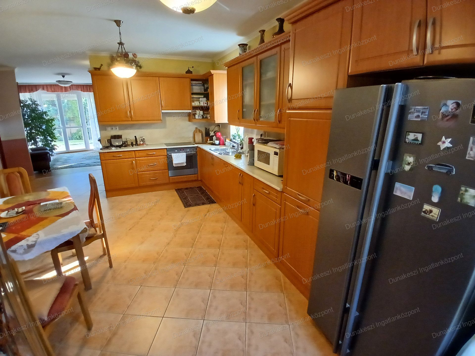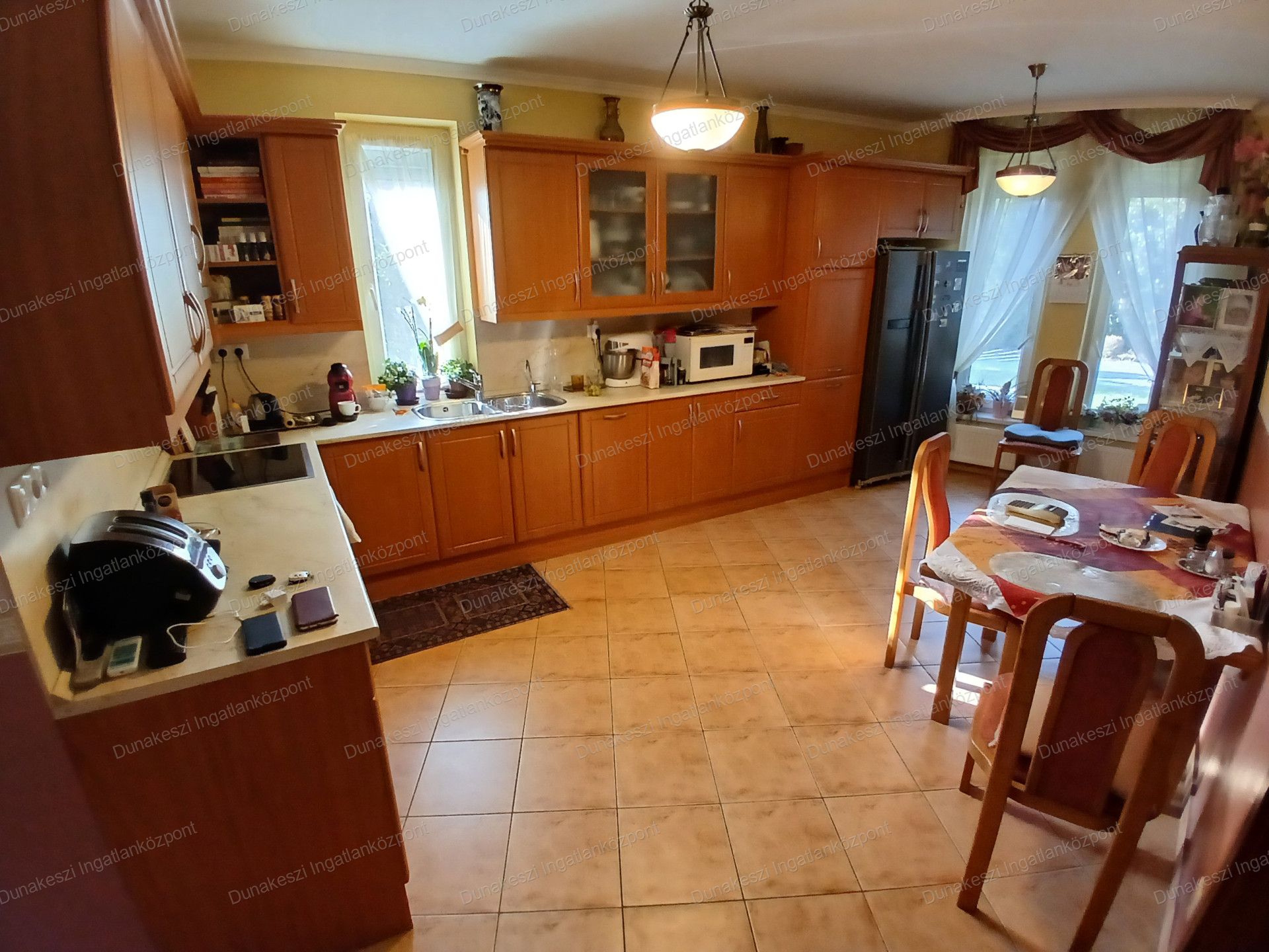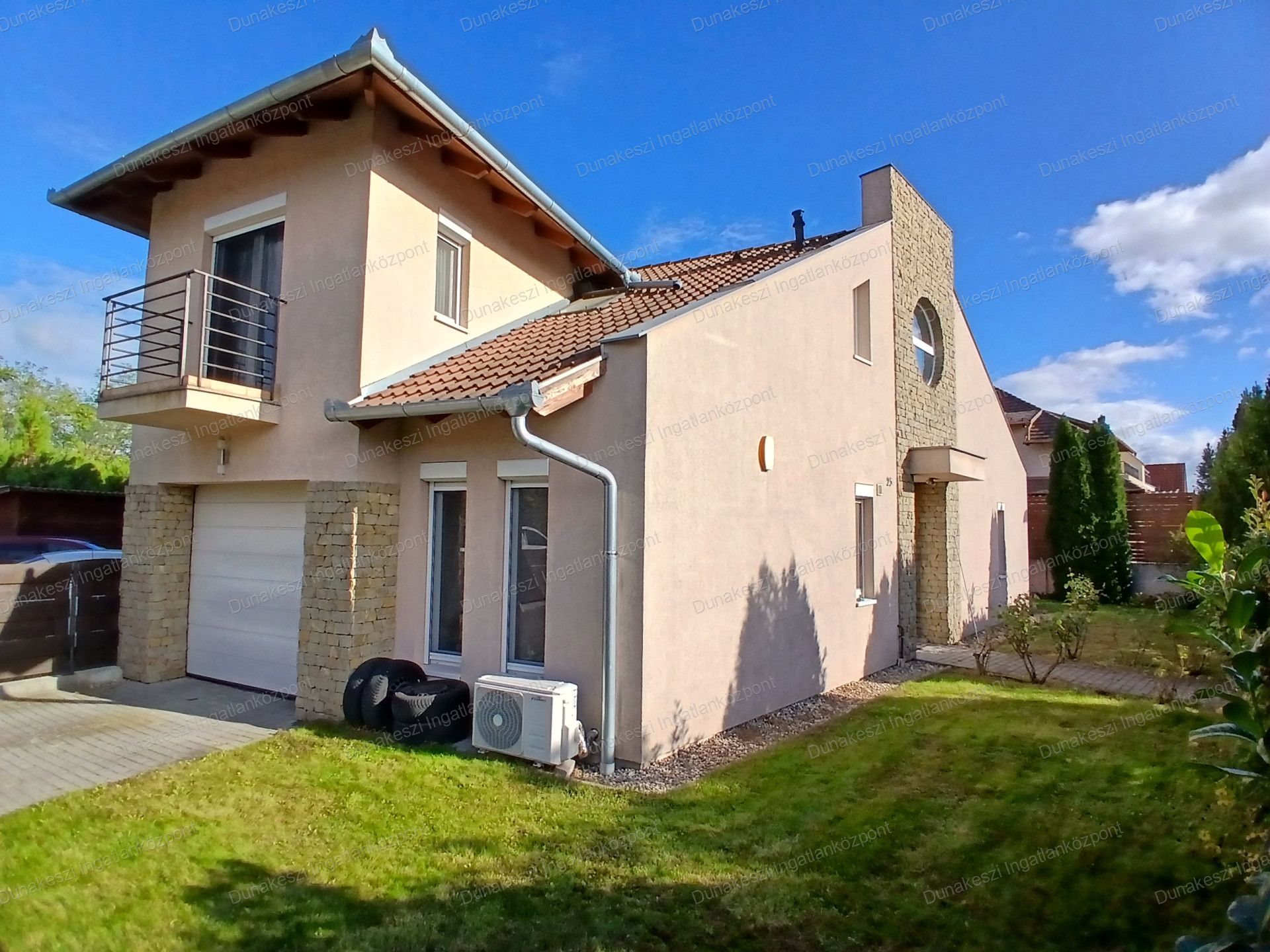 Dunakeszi egyik legjobb lakóparjában, kifogástalan állapotú, gyönyörű, gondozott, növényekkel beültetett, teljesen szeparált - külön utcából nyíló - saroktelken épült ikerház eladó. Kertben öntözőrendszer locsolómérővel, parkosított örökzöld növények, nagyméretű kerti tároló faház, garázs mellett több autó beállásra alkalmas térkövezett udvarrész. Nappaliból nagyméretű teraszon keresztül közvetlen kijárat az udvarra. Nagyon jó fekvésű, egész nap világos ingatlan. Hőszigetelt műanyag nyílászárók, minden ablakon MOTOROS REDŐNYÖK, SZÚNYOGHÁLÓ házban több helyen beépített gardrób szekrények, nagyméretű előszoba szekrény, fürdőszoba szekrény. Konyhabútor beépített SAMSUNG gépekkel (tűzhely, páraelszívó, mosogatógép) nagy méretű hűtőszekrény. Mindkét szinten hűtő/fűtő klíma.