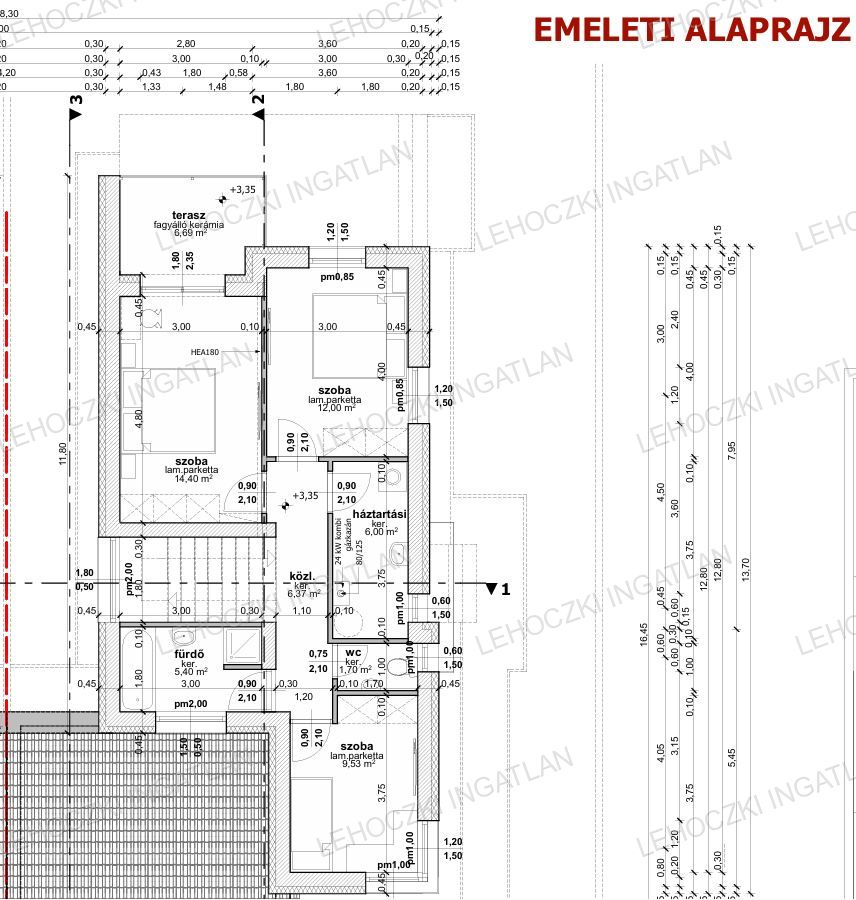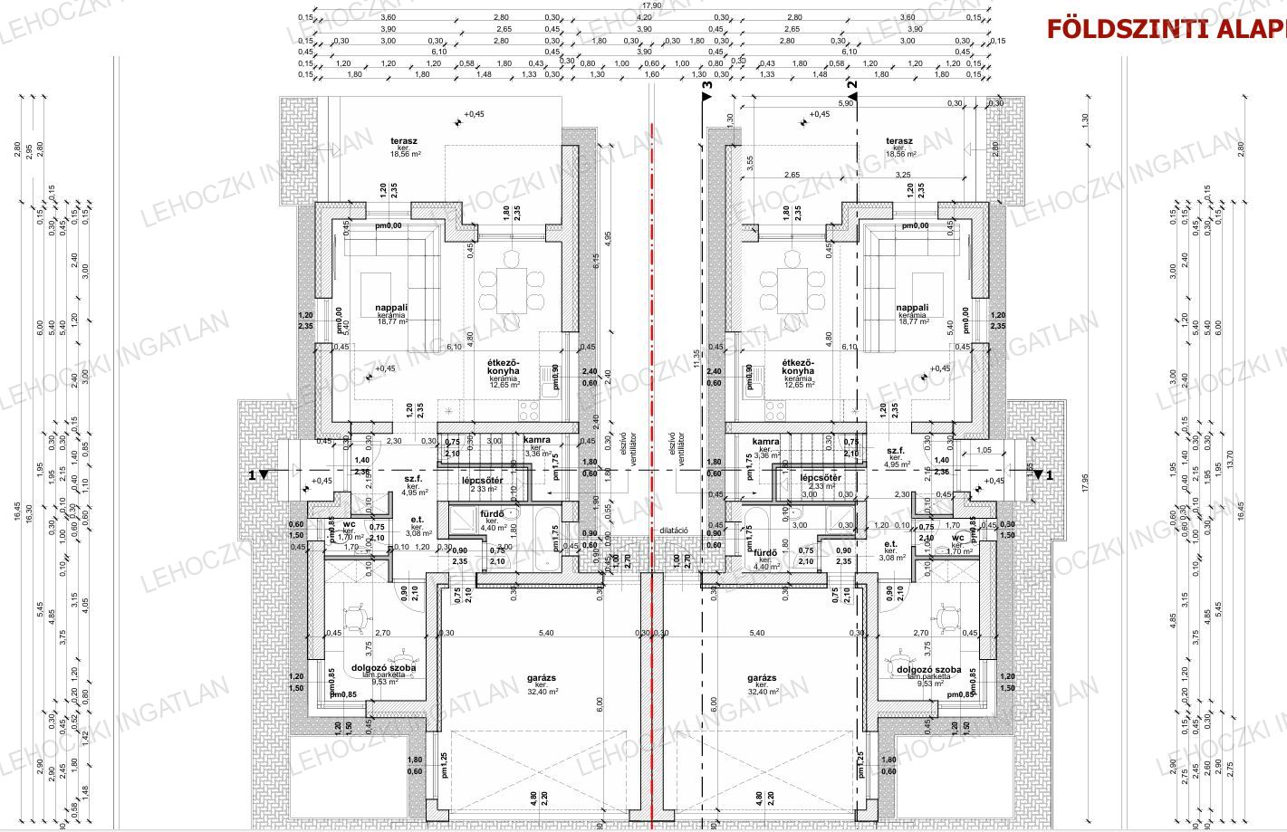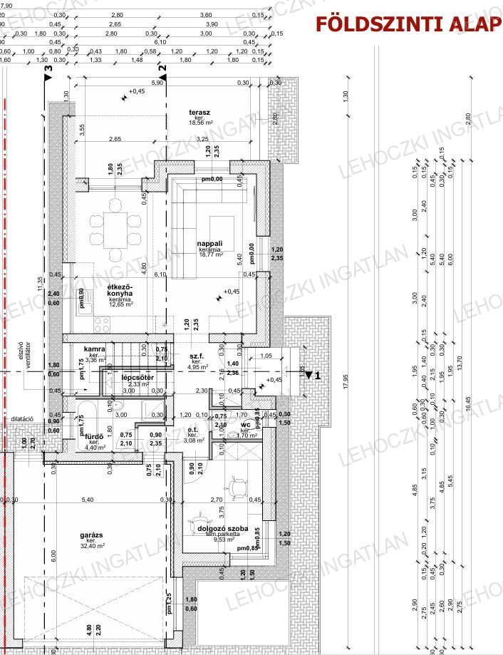 Lakótér 116,17 nm + 32,40 nm dupla garázs + 18,56 nm terasz + 6.69 nm terasz