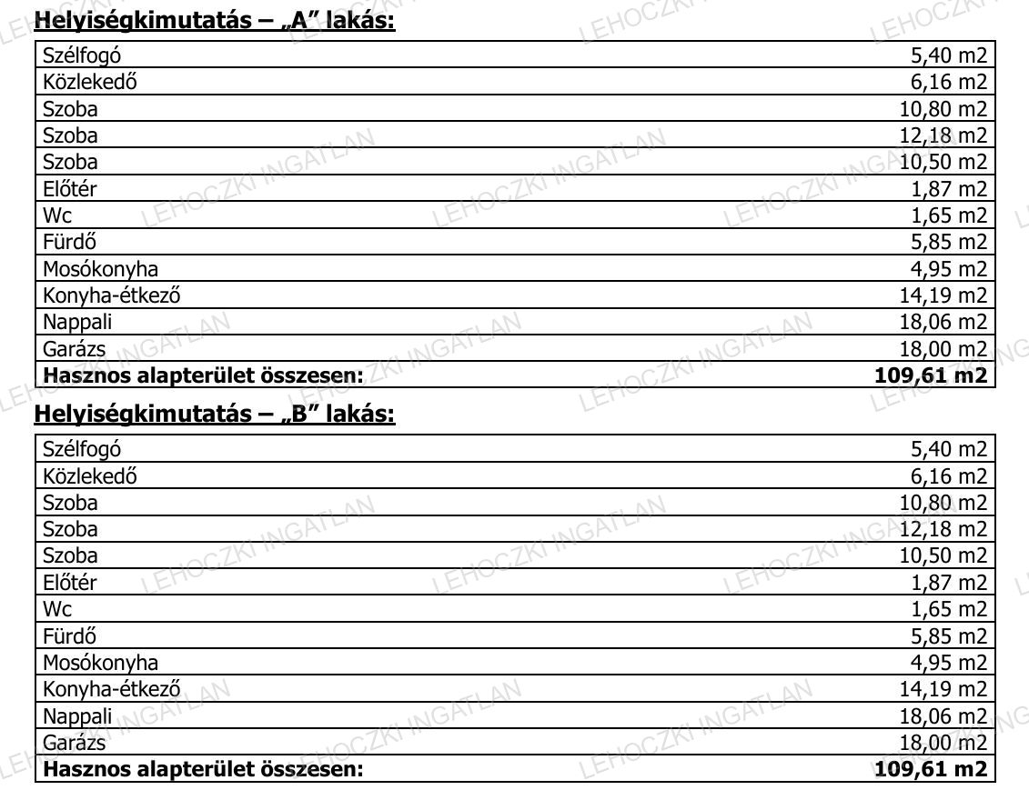 Jelen ajánlat az "A" és "B" jelű ikerházi lakásokra vonatkozik!